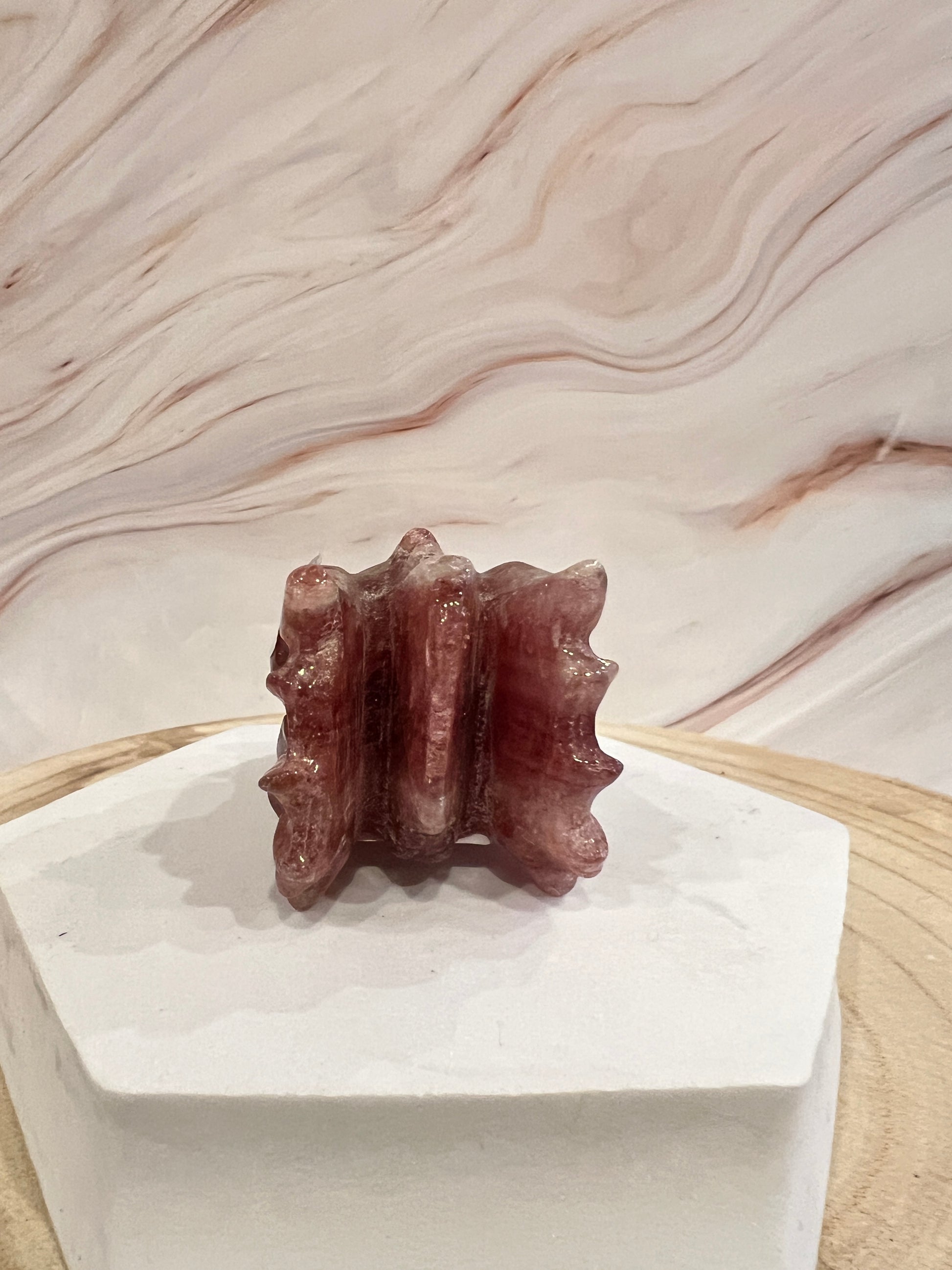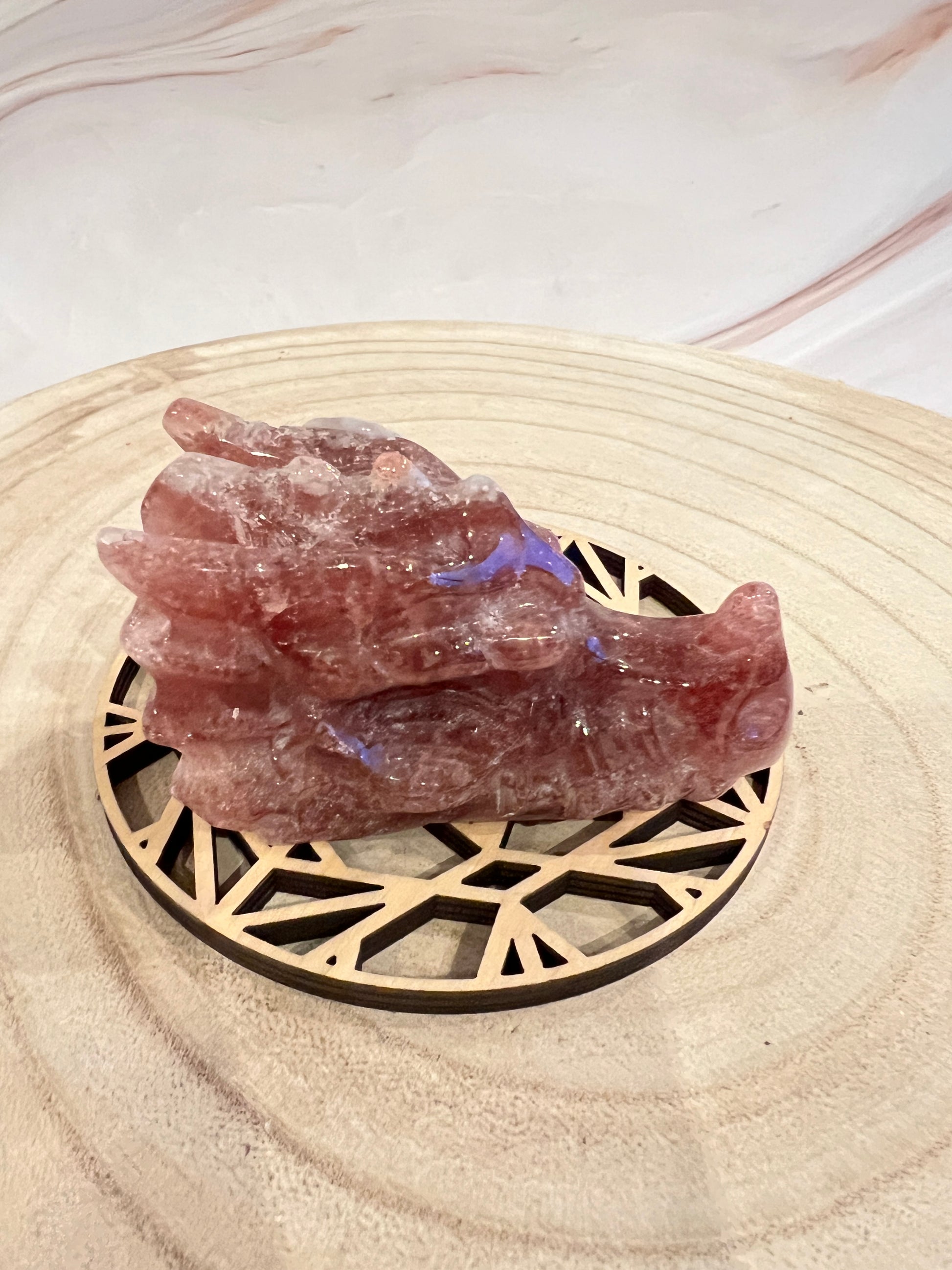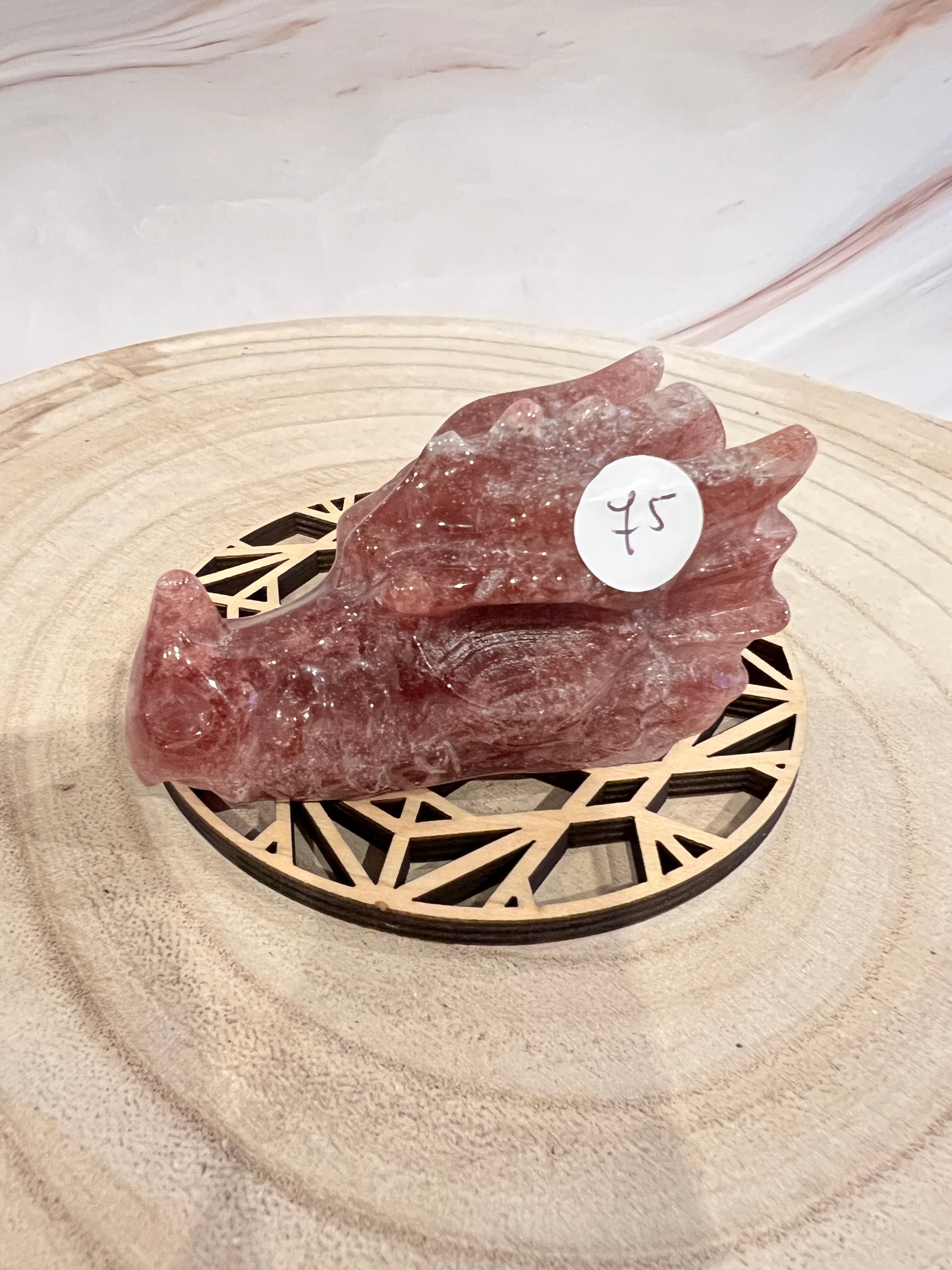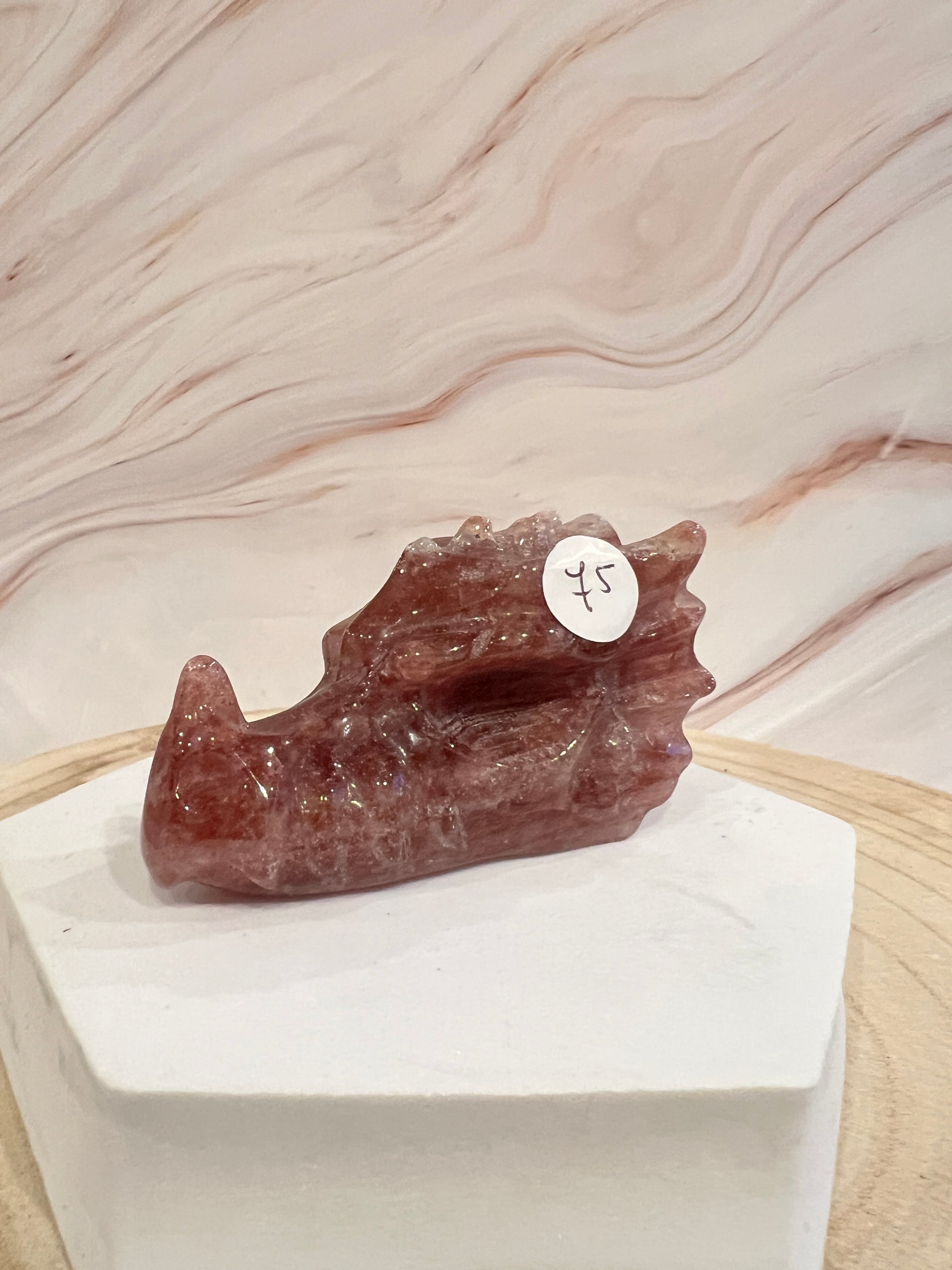 🔮 Laat de krachtige energie van deze Aardbeienkwarts Drakenkop (8 cm) jouw pad verlichten! Aardbeienkwarts staat bekend als de steen van liefde, harmonie en spirituele kracht. De drakenkop symboliseert bescherming, wijsheid en innerlijke transformatie. Een unieke combinatie voor diepe spirituele groei en intuïtieve kracht.