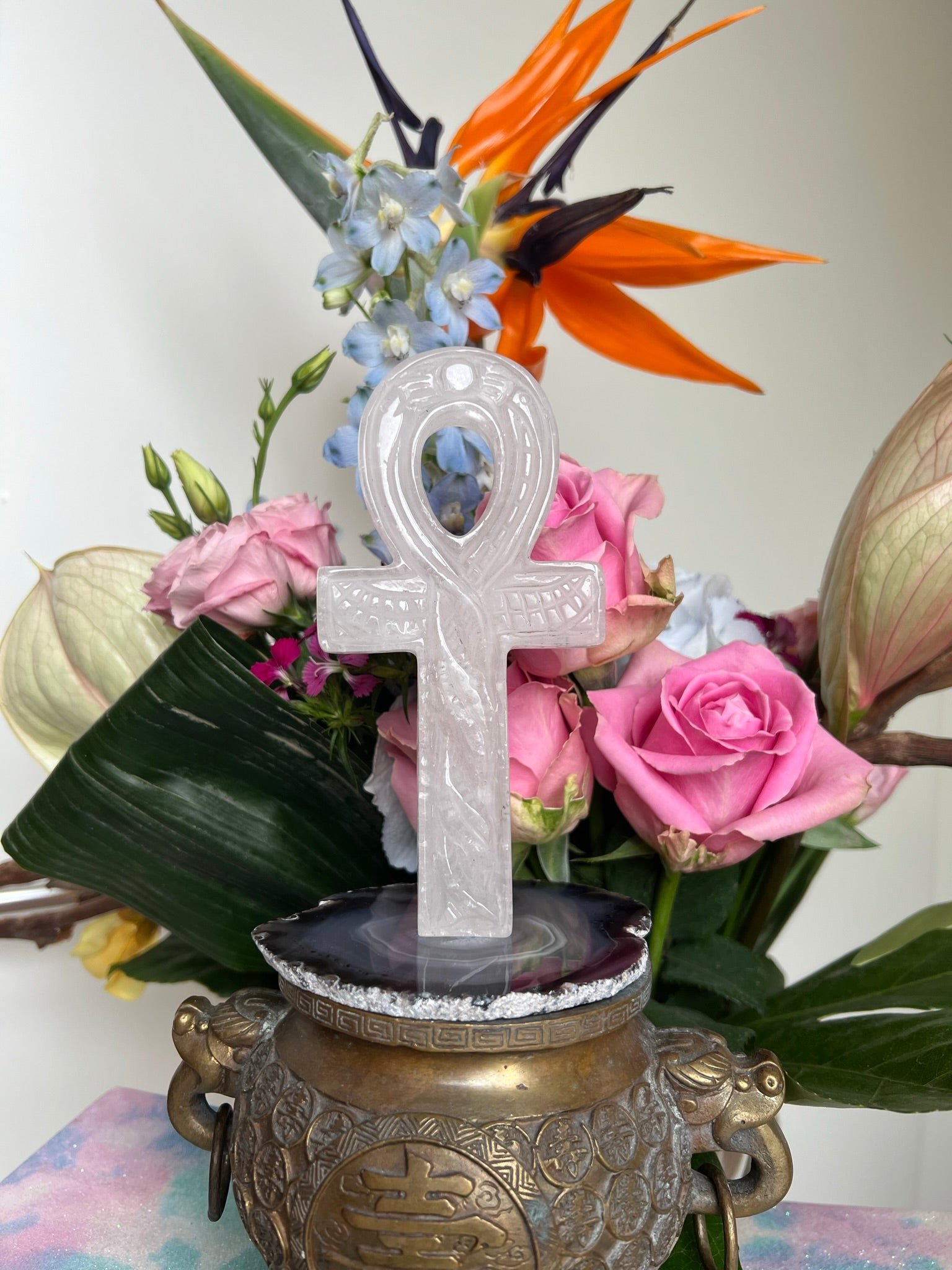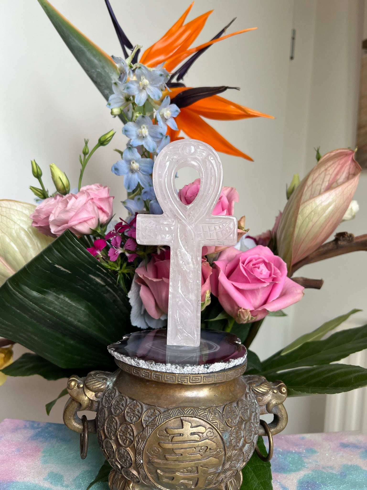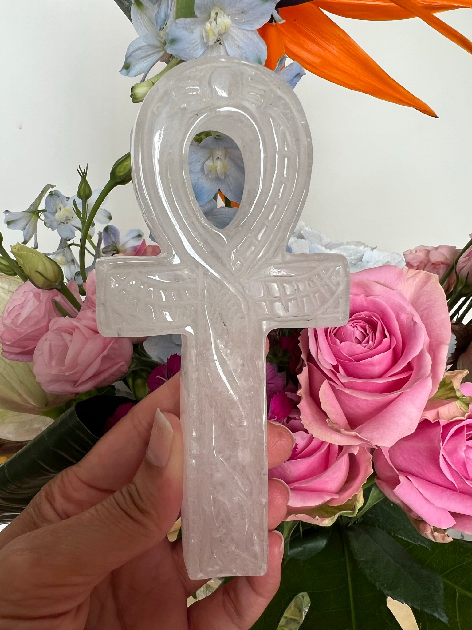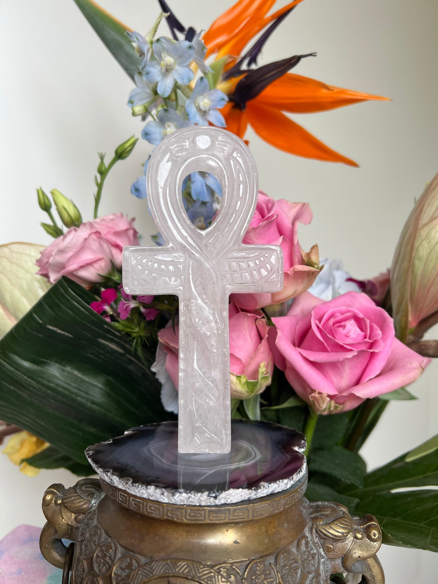 Ervaar pure helderheid en positieve energie met de Bergkristal Ankh, waarbij de zuiverheid van de steen wordt gecombineerd met het Ankh-symbool. Deze combinatie versterkt de helende en reinigende eigenschappen van Bergkristal, terwijl het symbool van levenskracht harmonie en balans bevordert.