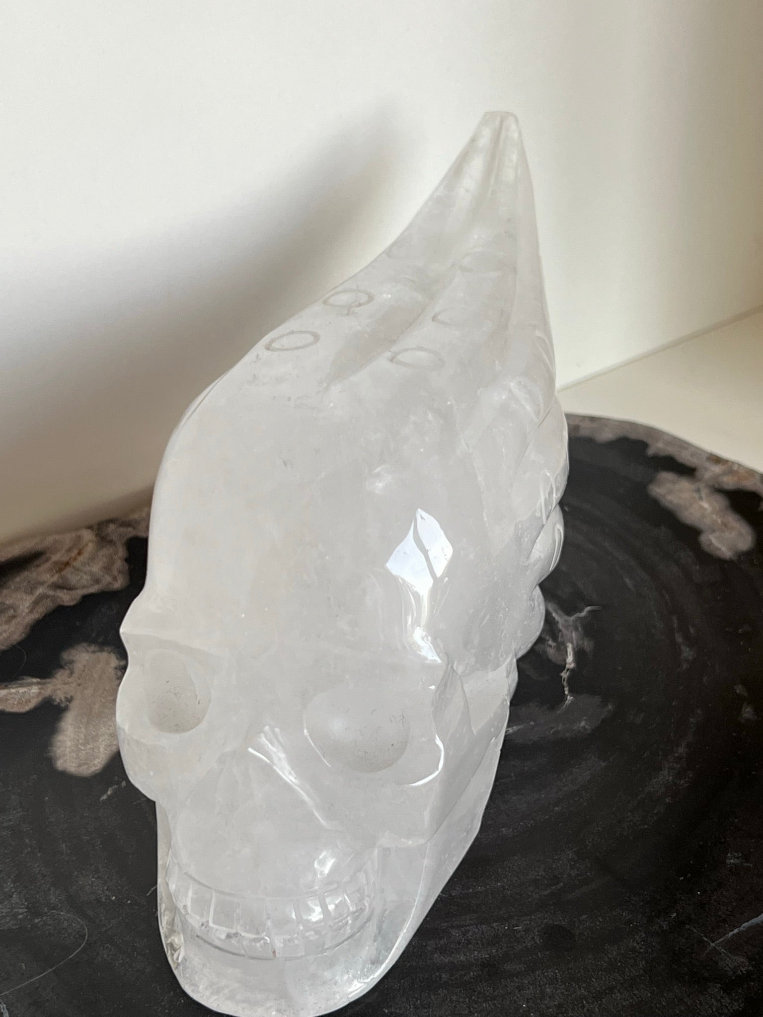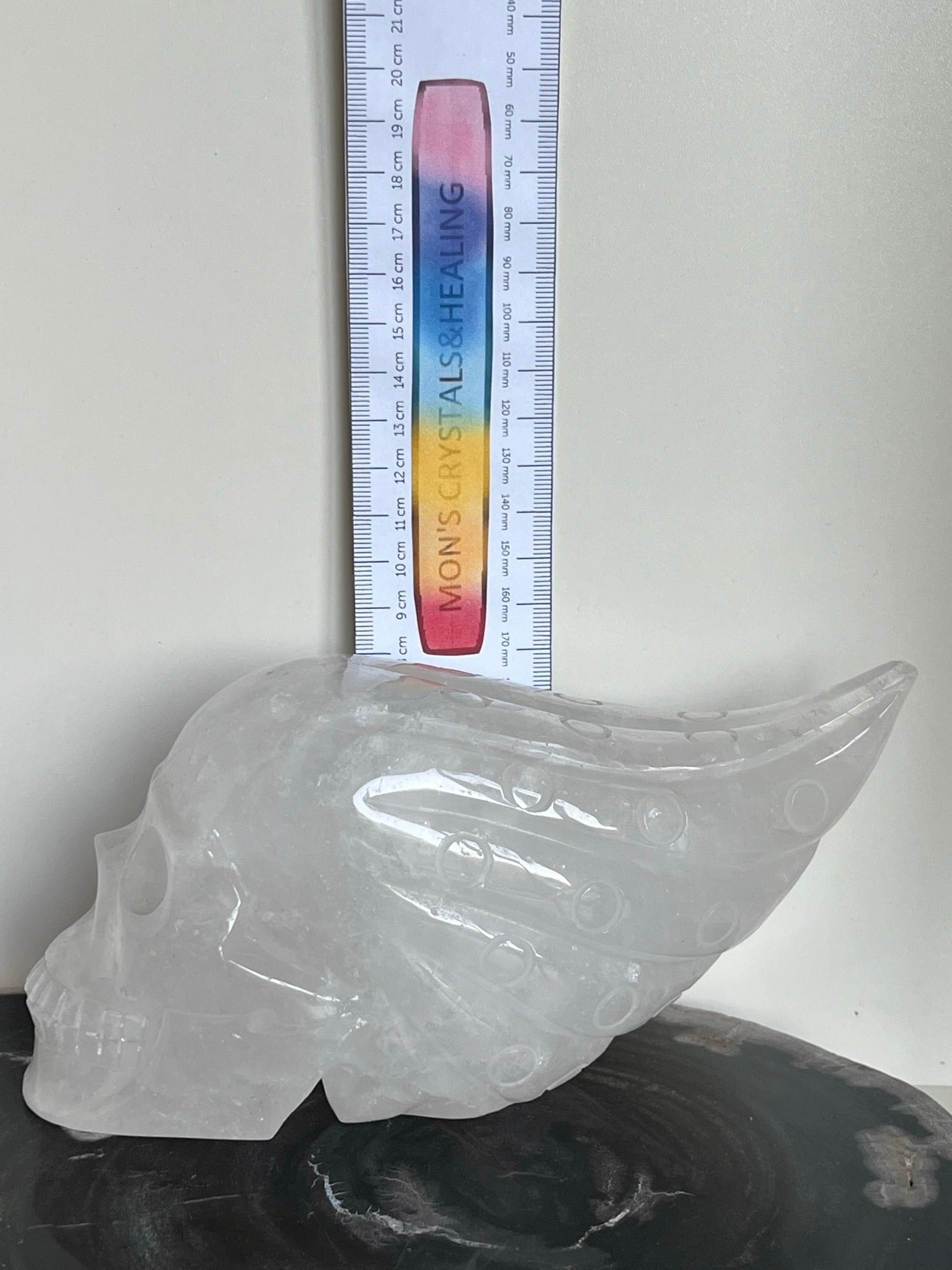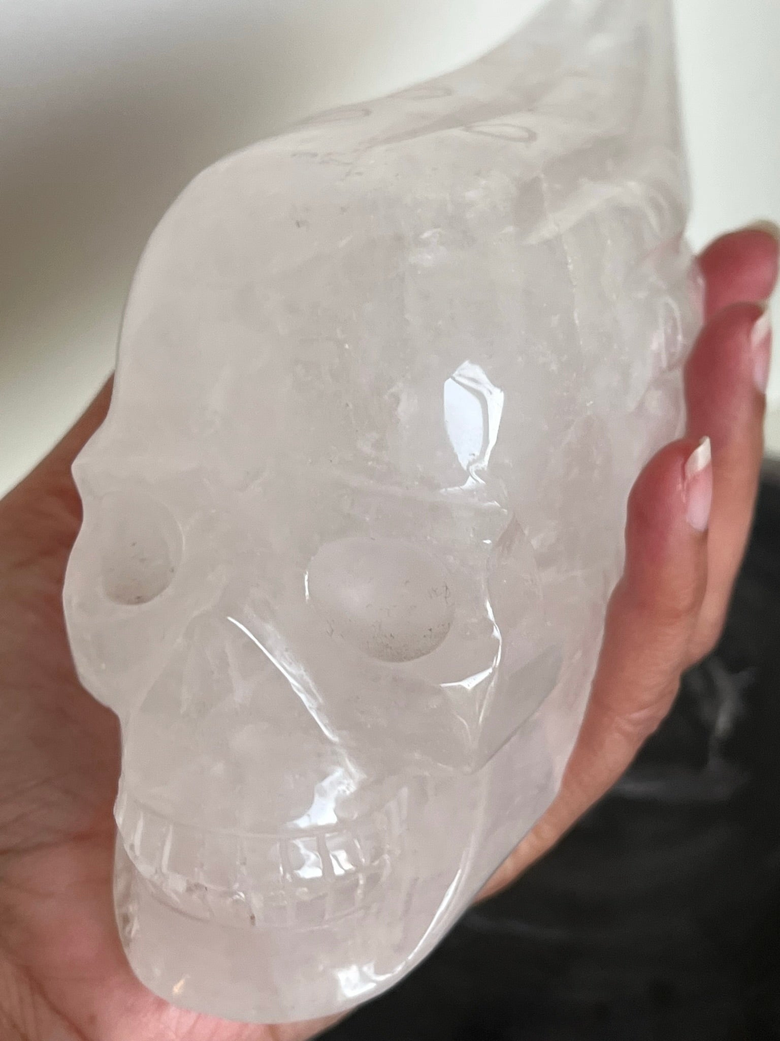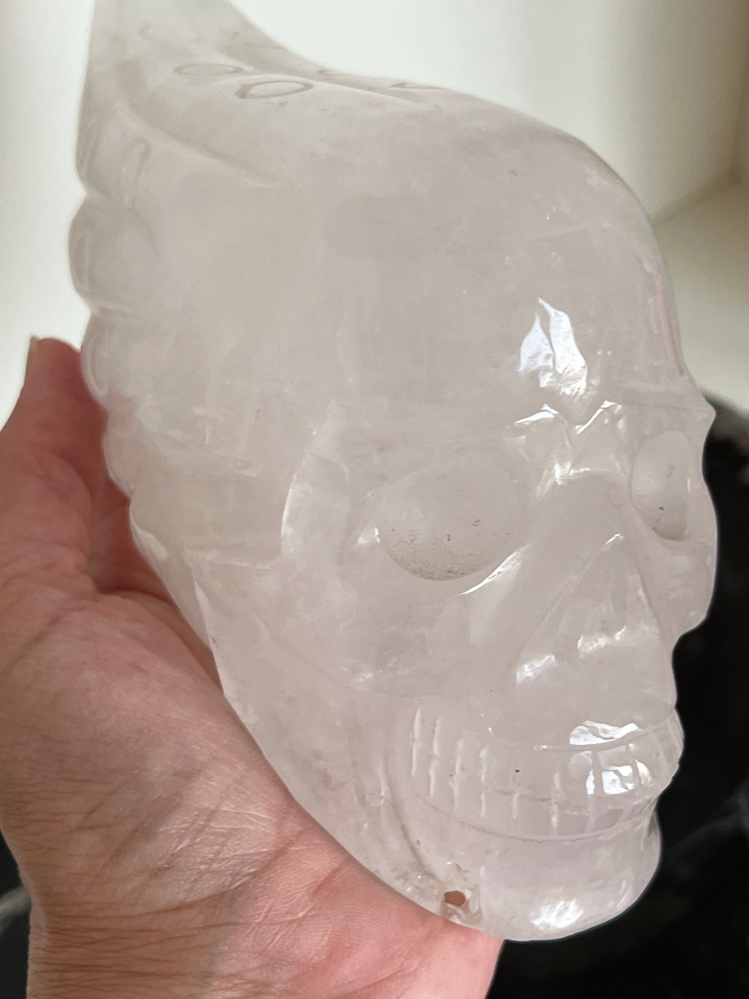Als een meester healer werkt de Bergkristal Skull op alle chakra's en versterkt intenties. Om met deze skull te connecten/verbinden, houd je hem in het licht en zie je zijn heldere energie je aura reinigen en versterken