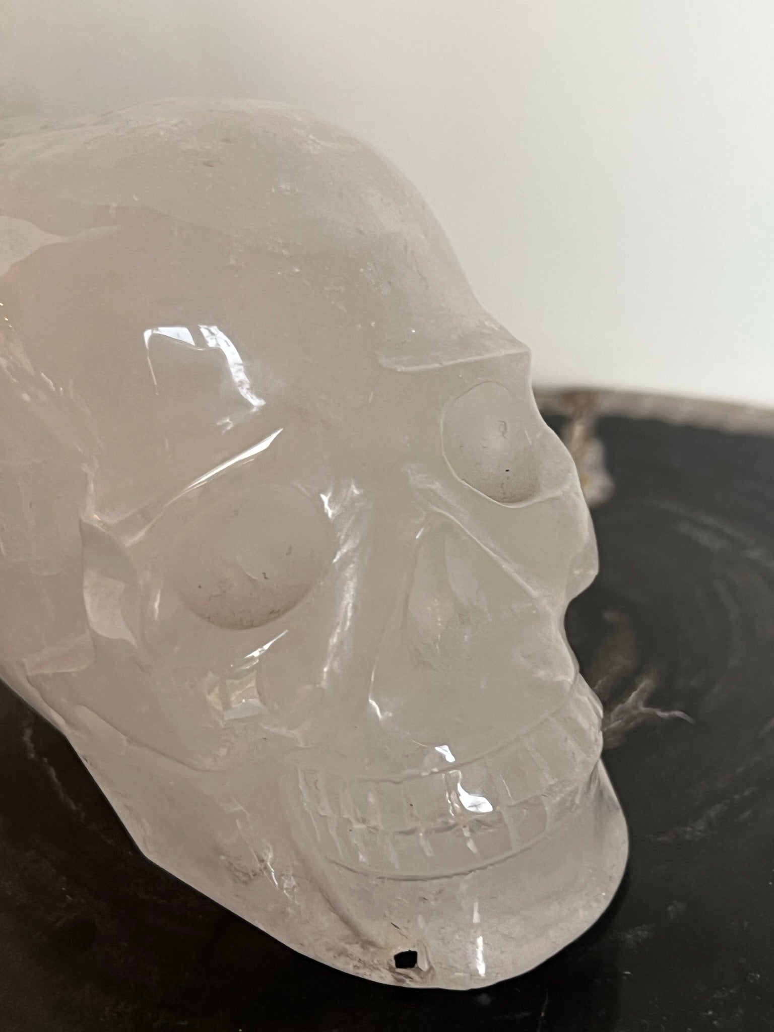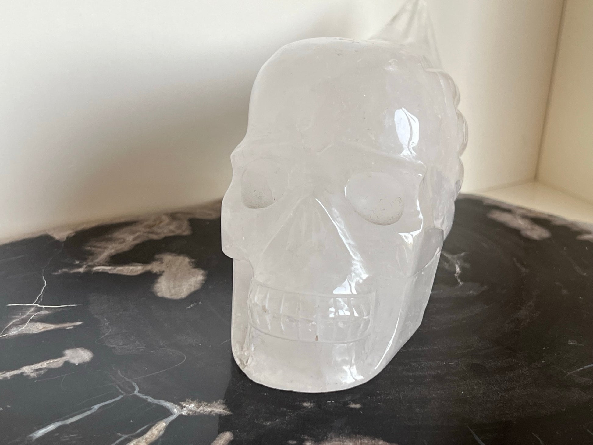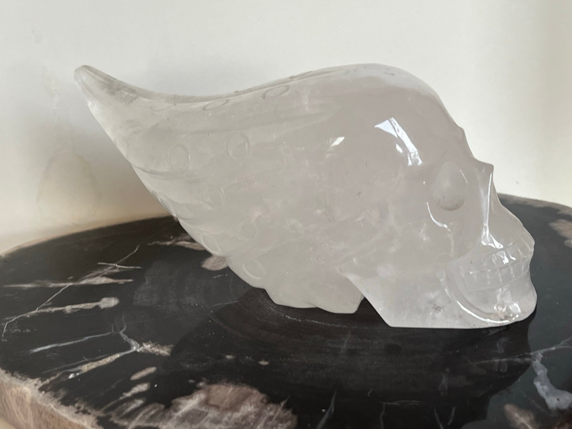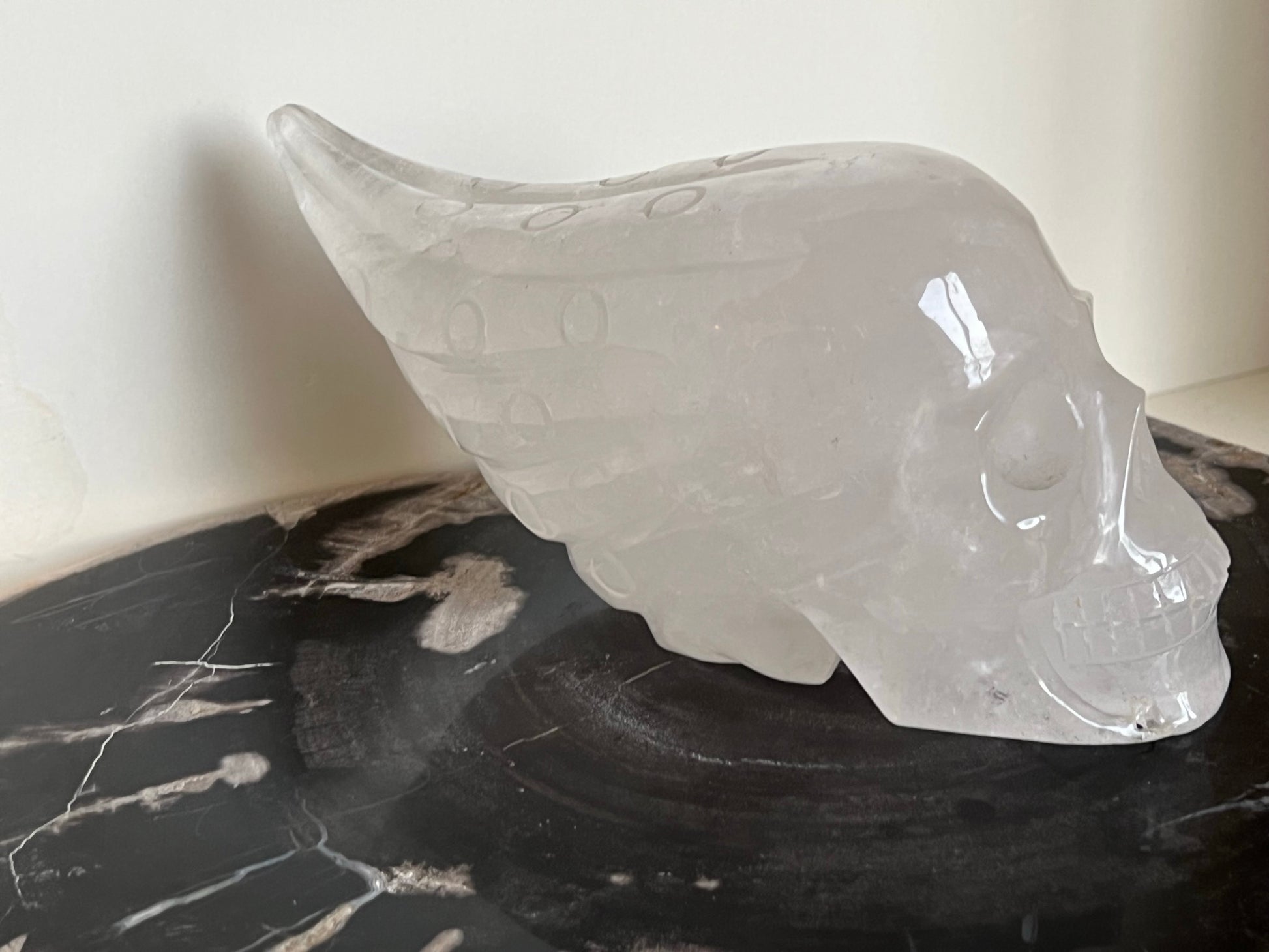 Als een meester healer werkt de Bergkristal Skull op alle chakra's en versterkt intenties. Om met deze skull te connecten/verbinden, houd je hem in het licht en zie je zijn heldere energie je aura reinigen en versterken