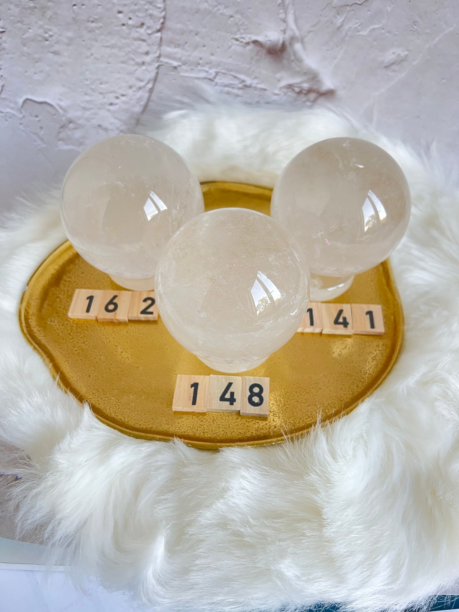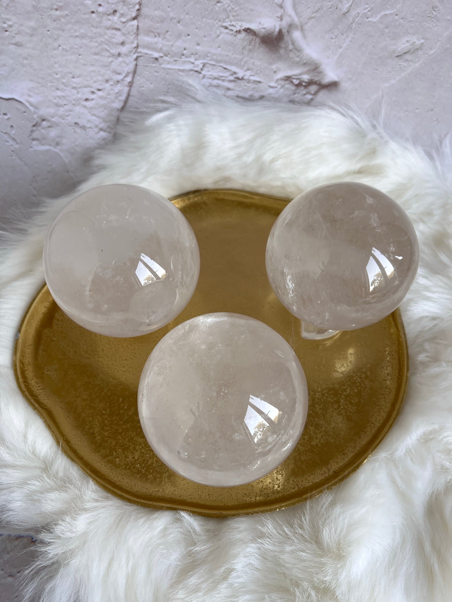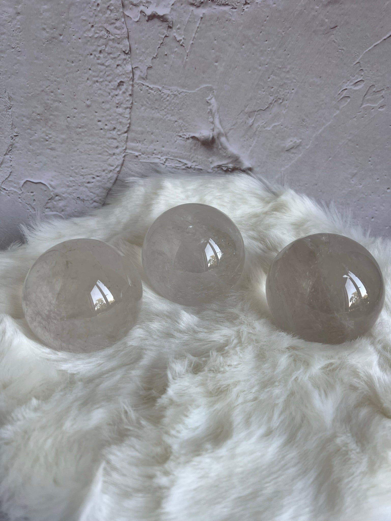 Bergkristal is een tijdloze favoriet van kristalliefhebbers vanwege zijn transparantie en helderheid. Deze kristallen zijn als vensters naar een wereld van pure energie. De 3 grote Bergkristal bollen in deze set zijn groots in zowel formaat als schoonheid, en ze stralen een zuivere en krachtige energie uit.