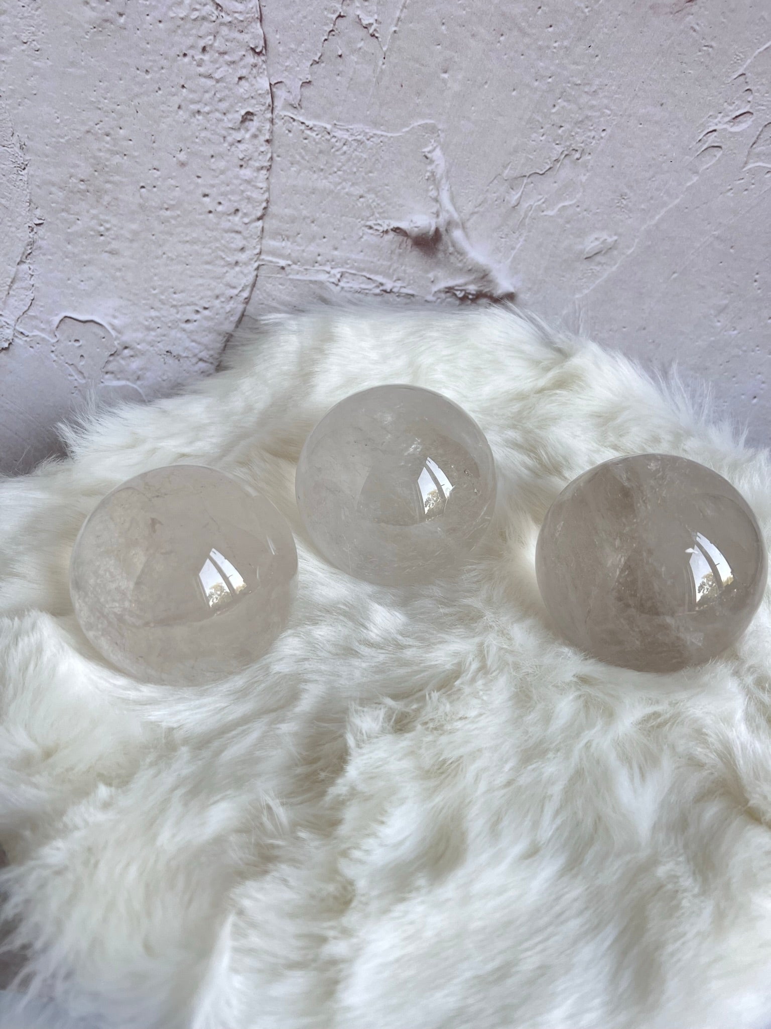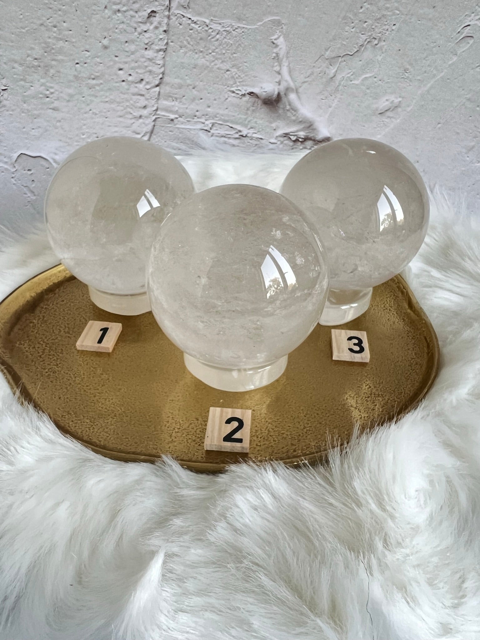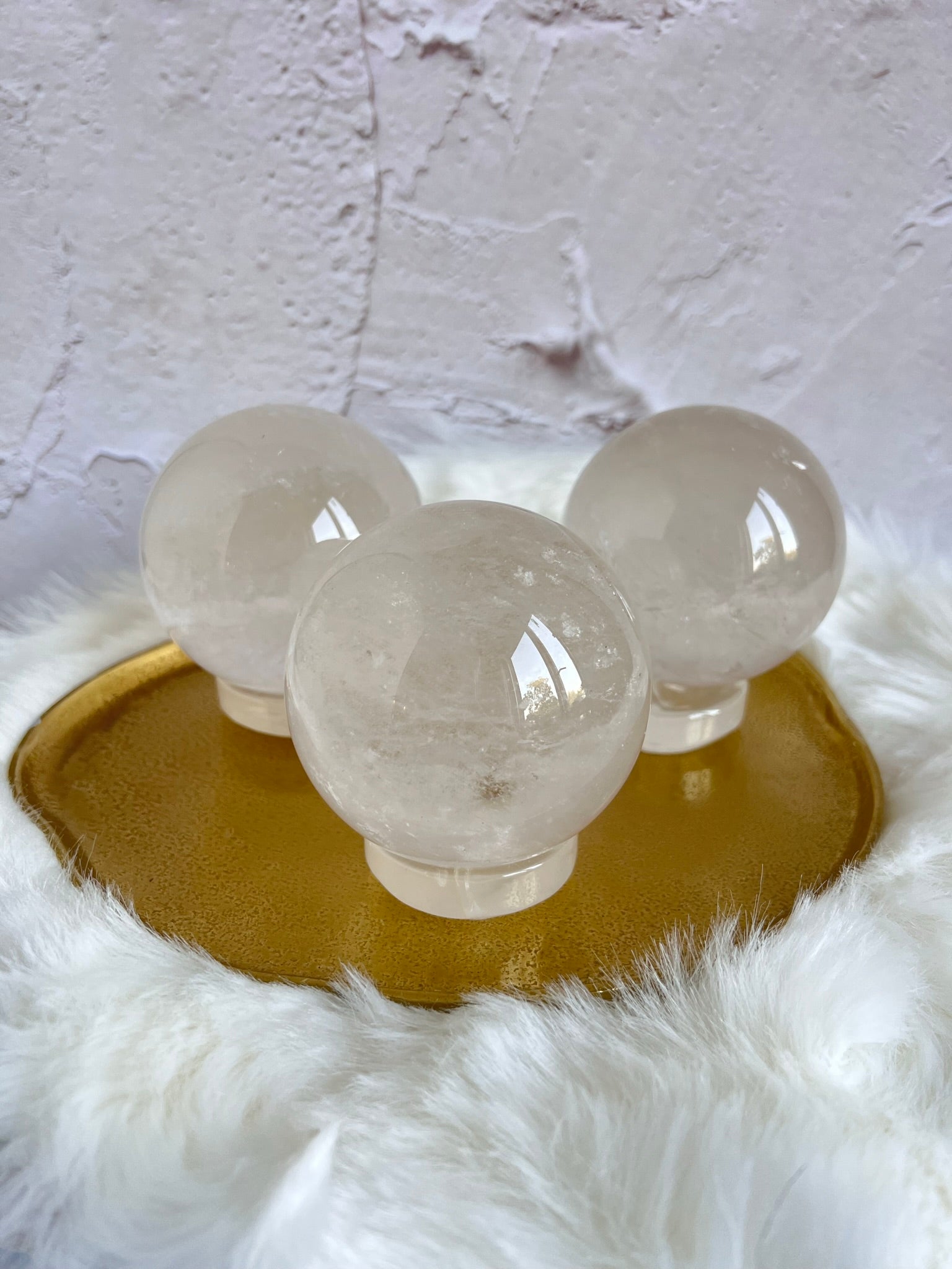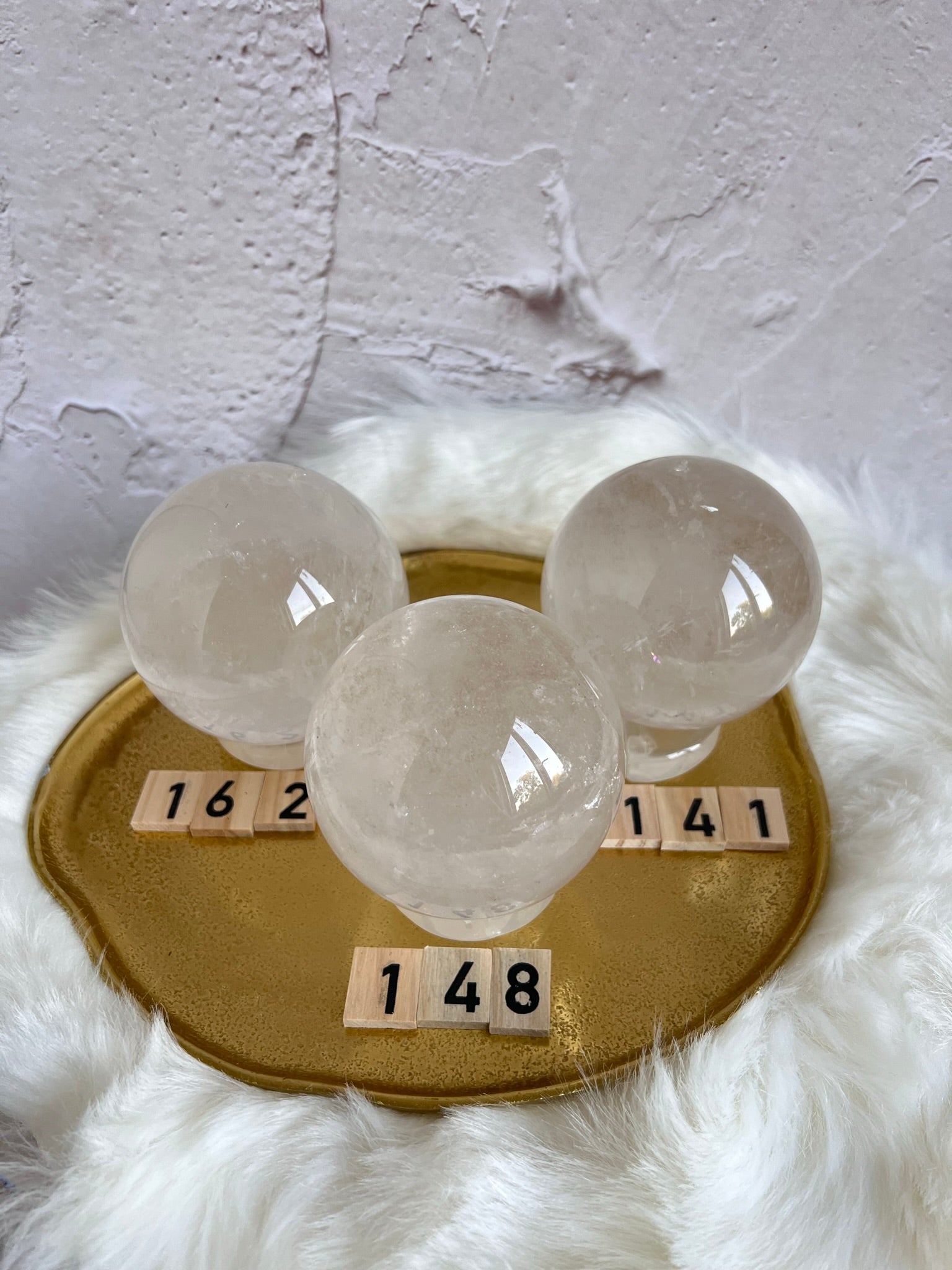 Bergkristal is een tijdloze favoriet van kristalliefhebbers vanwege zijn transparantie en helderheid. Deze kristallen zijn als vensters naar een wereld van pure energie. De 3 grote Bergkristal bollen in deze set zijn groots in zowel formaat als schoonheid, en ze stralen een zuivere en krachtige energie uit.