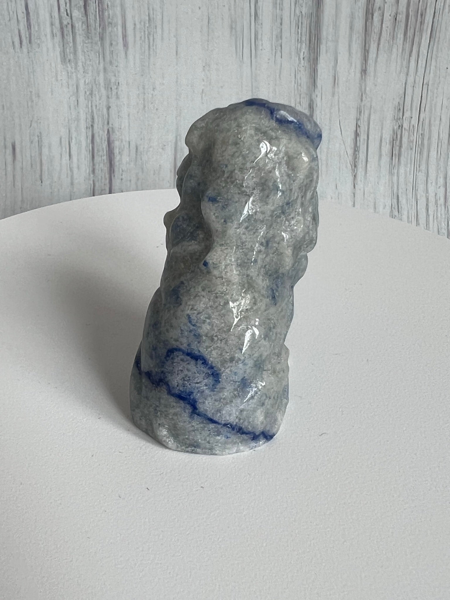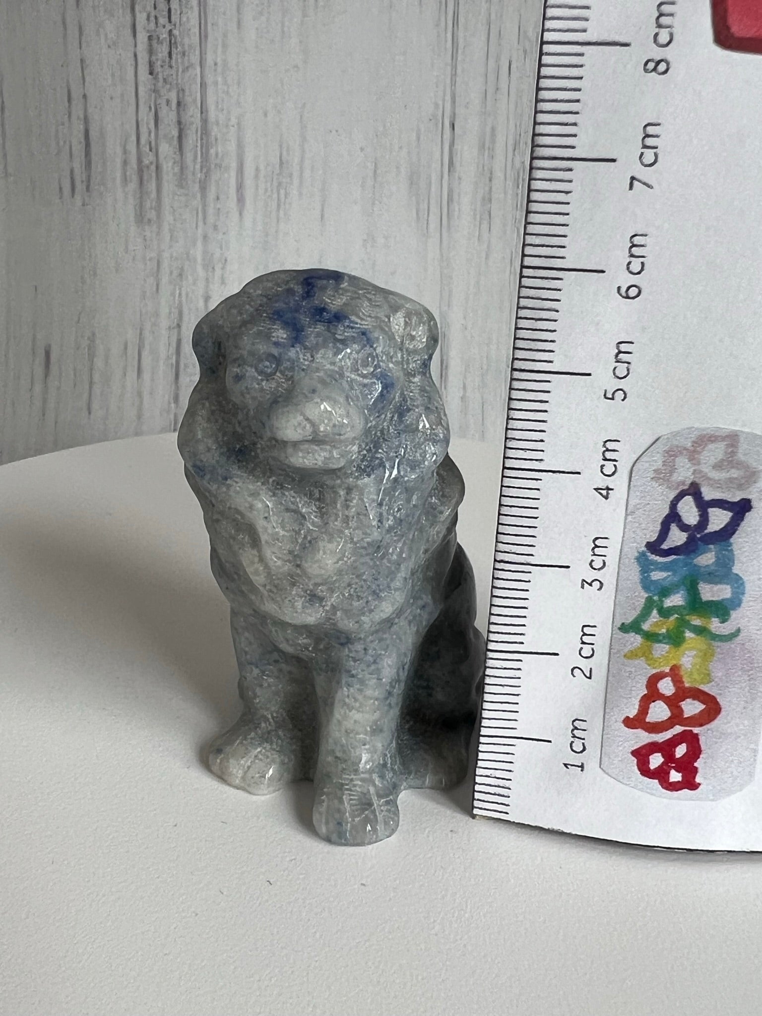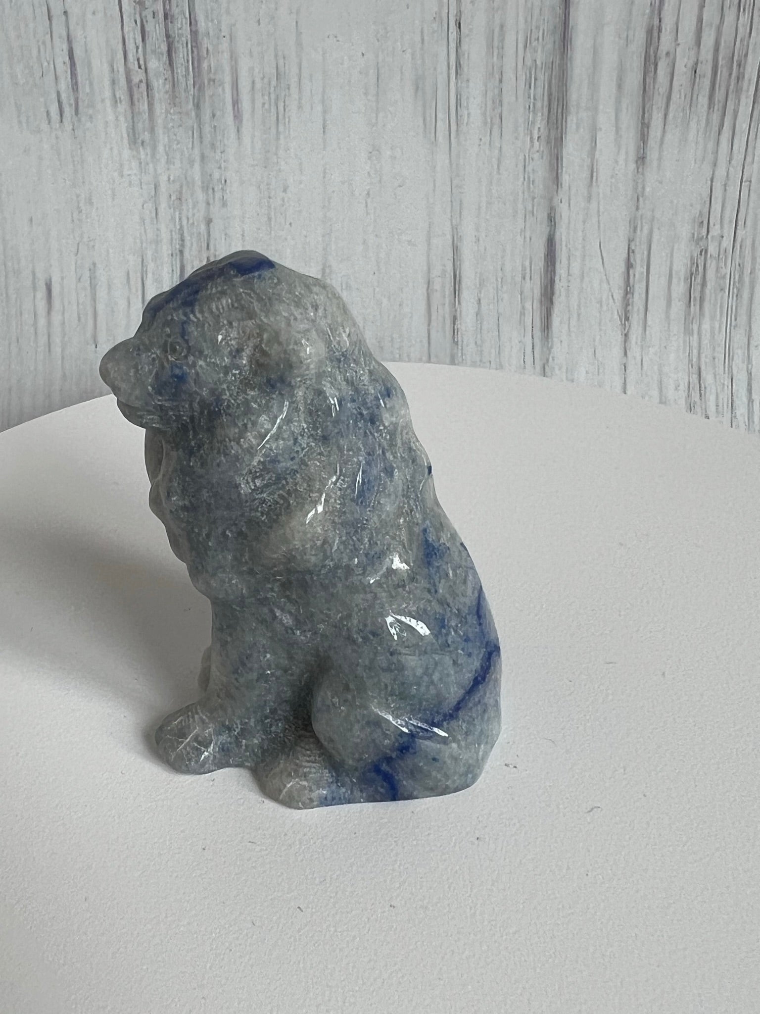 * Chakra: Deze Blauwe Aventurijn Leeuw steen werkt voornamelijk op het keelchakra, dat staat voor communicatie en zelfexpressie.
