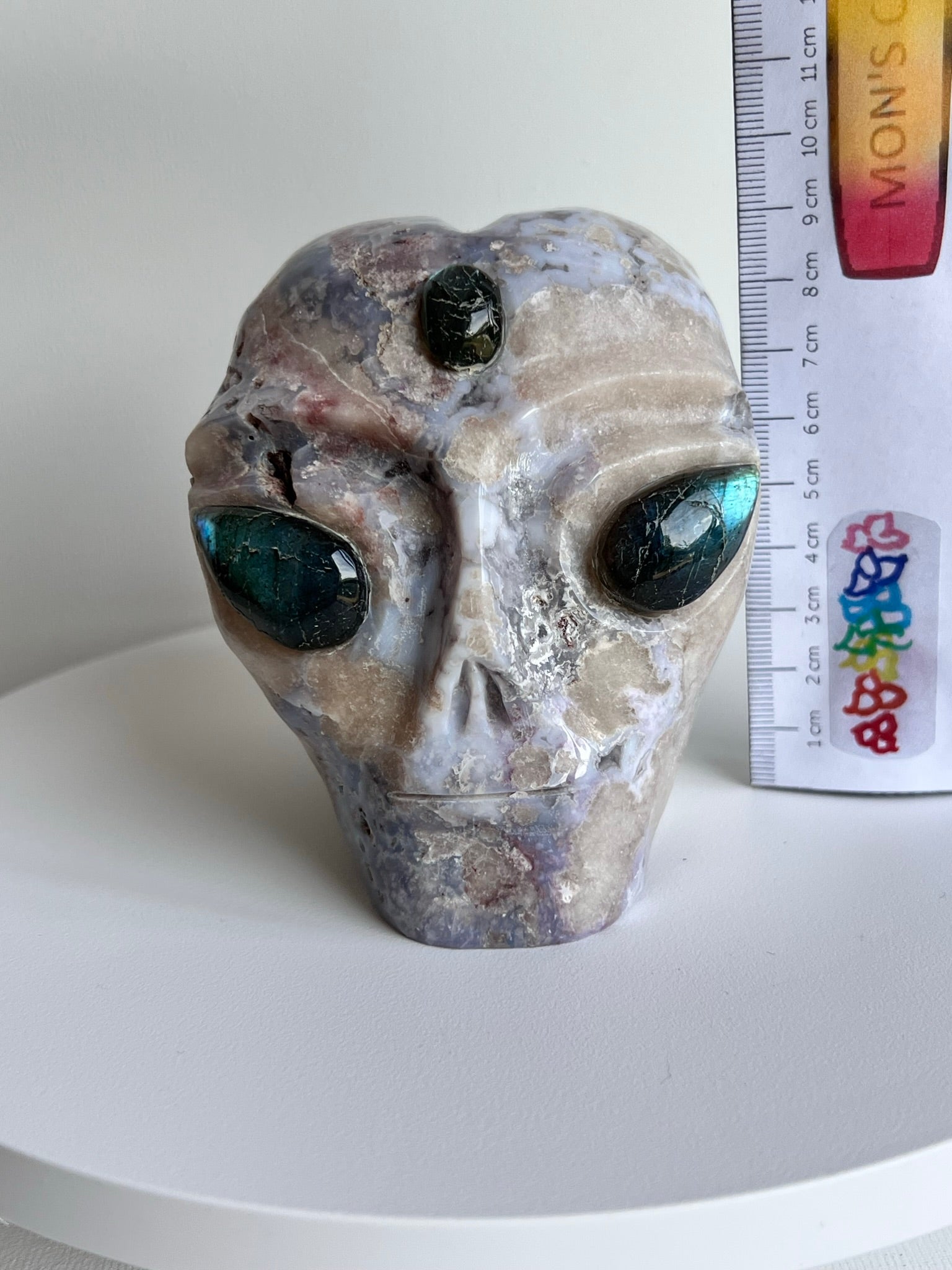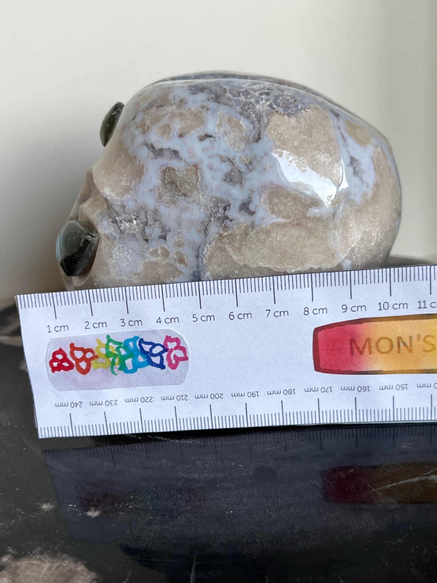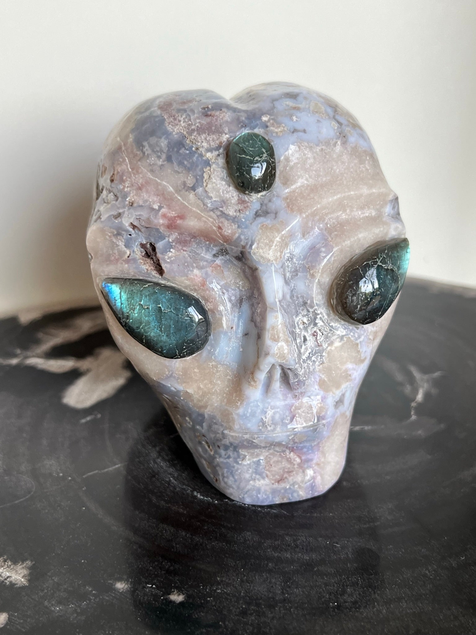 Bloemagaat Skull: De Bloemagaat Skull werkt op het basischakra en brengt aarding en stabiliteit. Om met deze skull te connecten, plaats je hem op de grond en laat je zijn aardende energie door je voeten stromen.