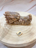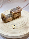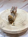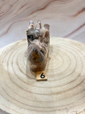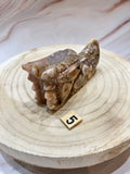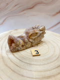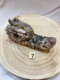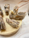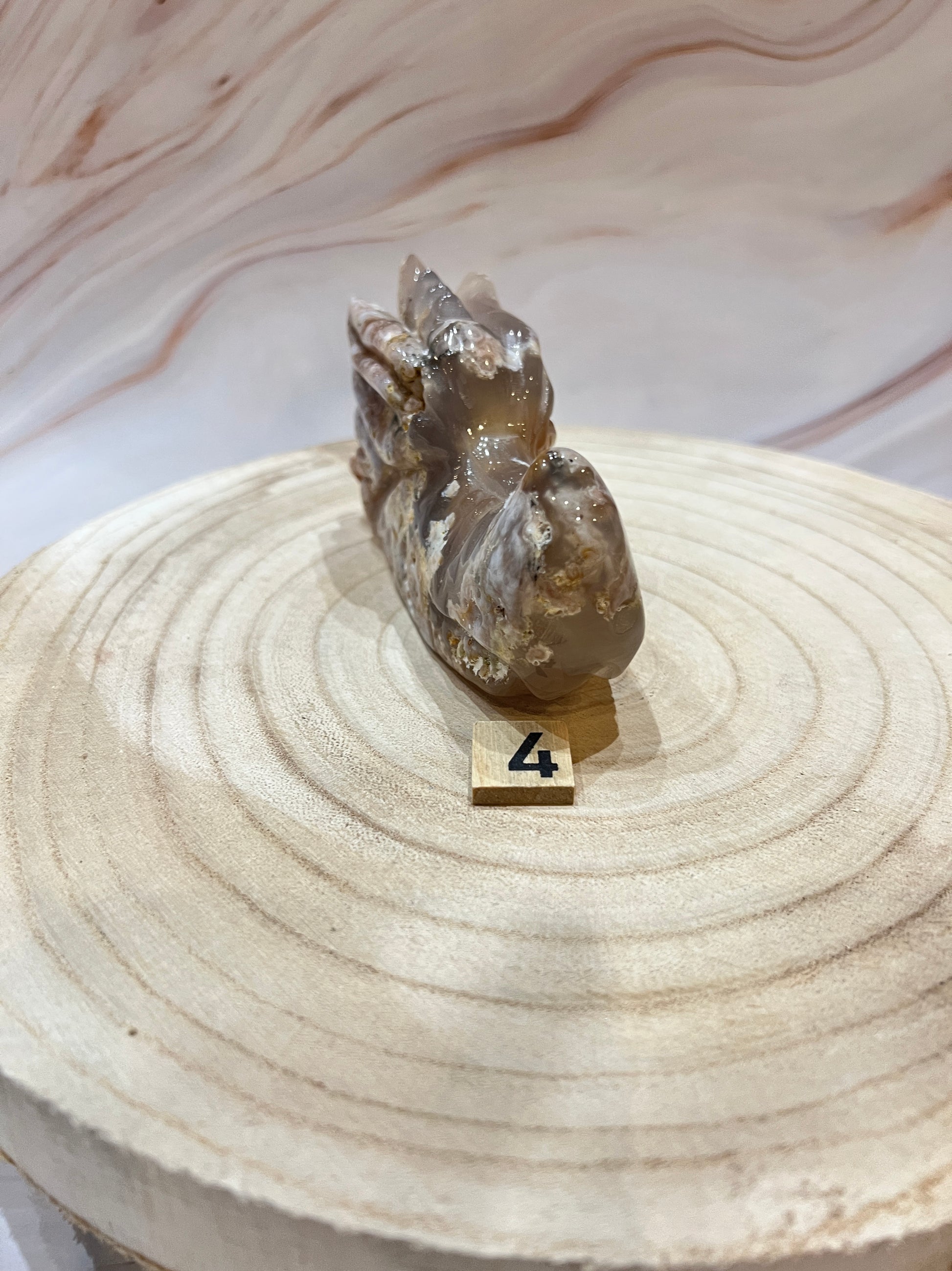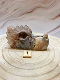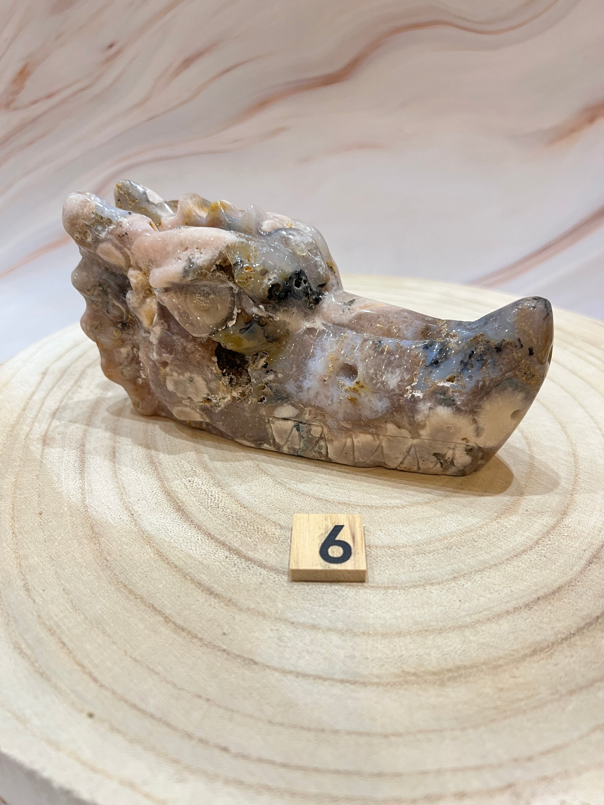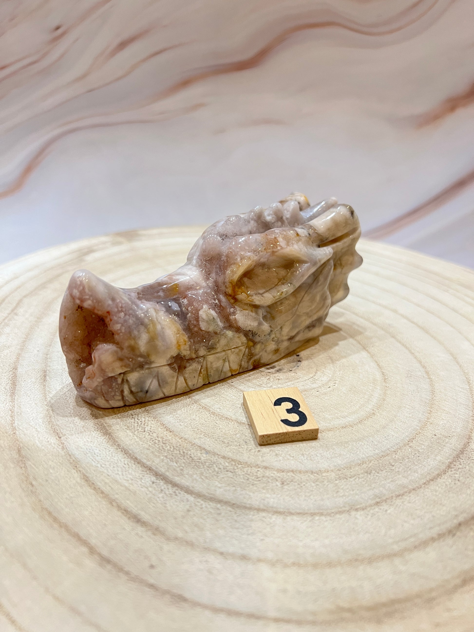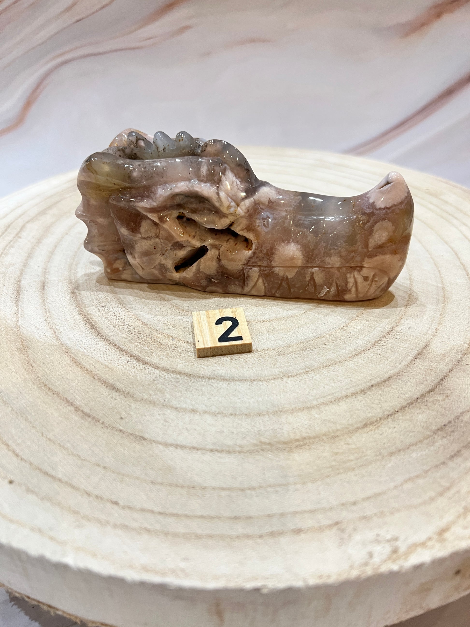 ✨ Eigenschappen: Unieke handgesneden drakenkoppen van bloemagaat, een steen van groei, moed en zelfontwikkeling.