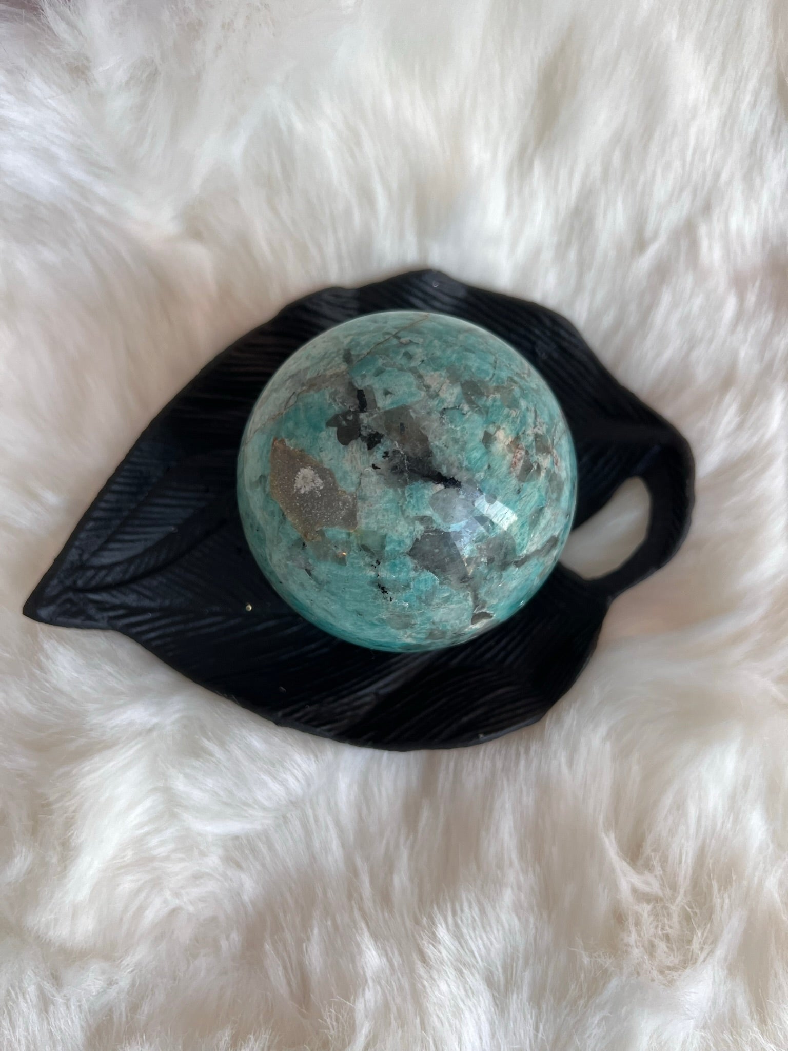 Bij Mon's Crystals&Healing zijn we er trots op om deze kalmerende Amazoniet bollen aan te bieden. Elk exemplaar is met zorg geselecteerd en straalt de balans en sereniteit van Amazoniet uit. Laat Amazoniet je begeleiden op je reis naar harmonie en welzijn.