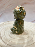 Aards en rustgevend beeld (278g | 9,9 cm hoog) van Rainforest Jaspis. Deze steen verbindt je met de energie van de natuur, brengt diepe rust en ondersteunt innerlijke heling 🍃✨. Stimuleert geduld, balans en regeneratie. Werkt op het hart- & wortelchakra.
