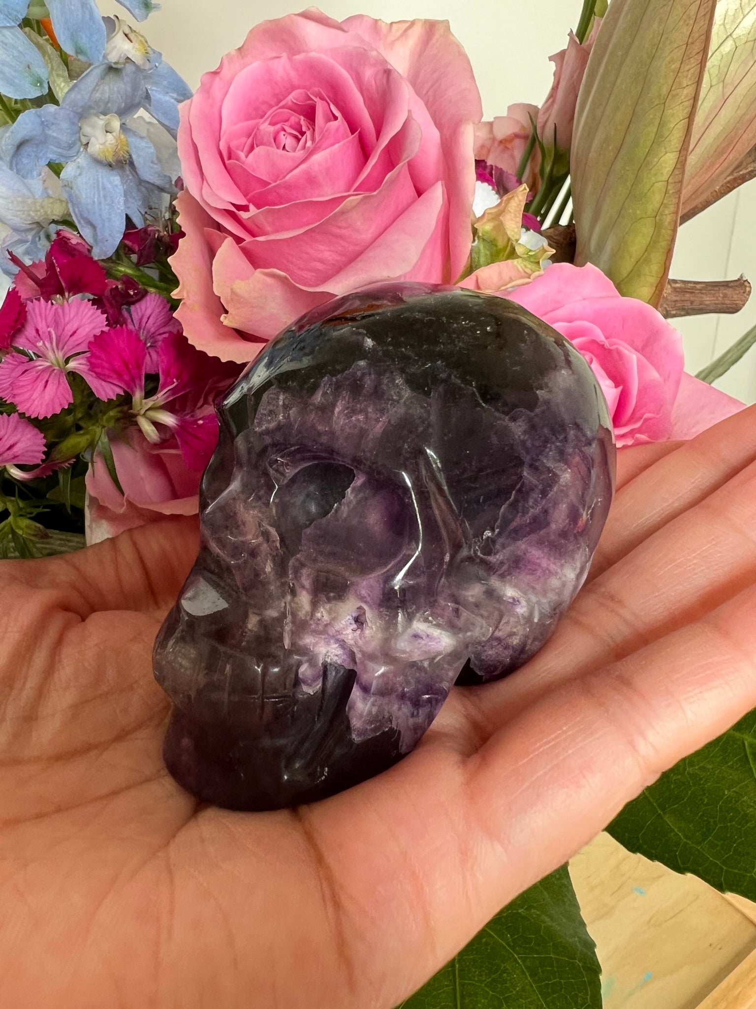 Met zijn kalmerende energie bevordert de Droom Amethist Skull innerlijke vrede, heldere dromen en spirituele groei. Om met deze skull te connecten, houd je hem vast voor het slapengaan en vraag je om spirituele begeleiding tijdens je dromen.