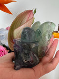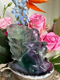 * Chakra: Deze Fluoriet Engel werkt voornamelijk op het voorhoofdchakra (derde oog) en het kruinchakra, die beide verbonden zijn met spiritueel bewustzijn en intuïtie.