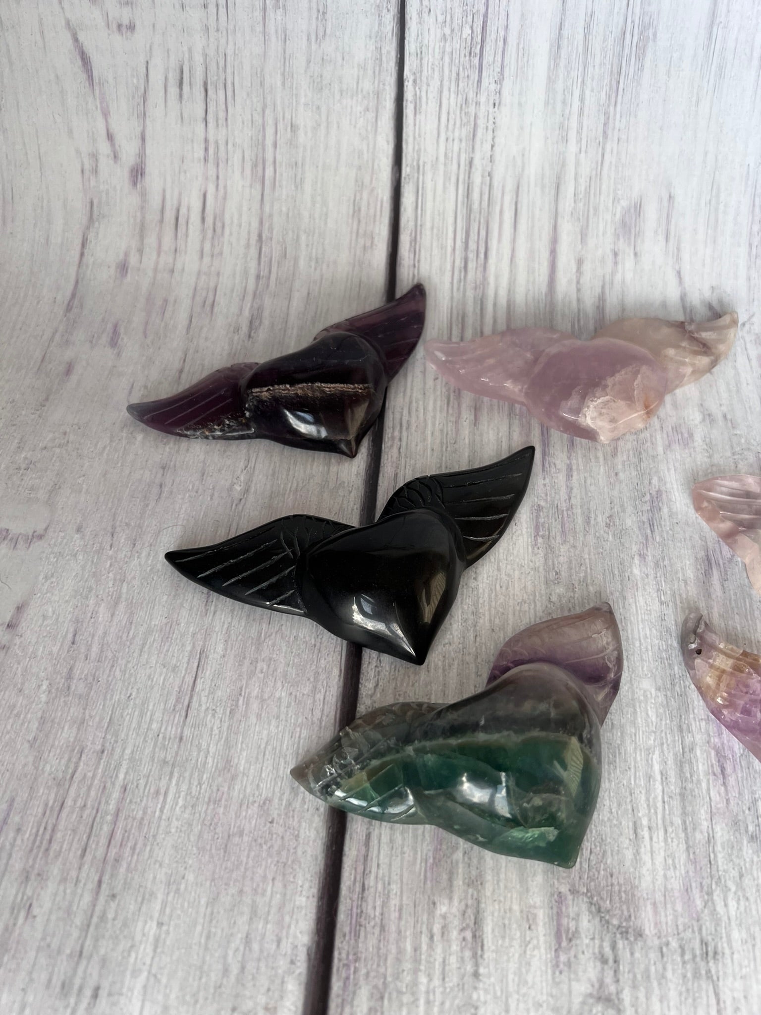 * Spiritueel: De engelen vleugels gemaakt van Donkere Fluoriet hebben een kalmerende en beschermende energie. Ze kunnen helpen bij het zuiveren van de geest en het bevorderen van emotionele balans. De vleugels kunnen het hartchakra openen en vergroten intuïtie en helderheid.
