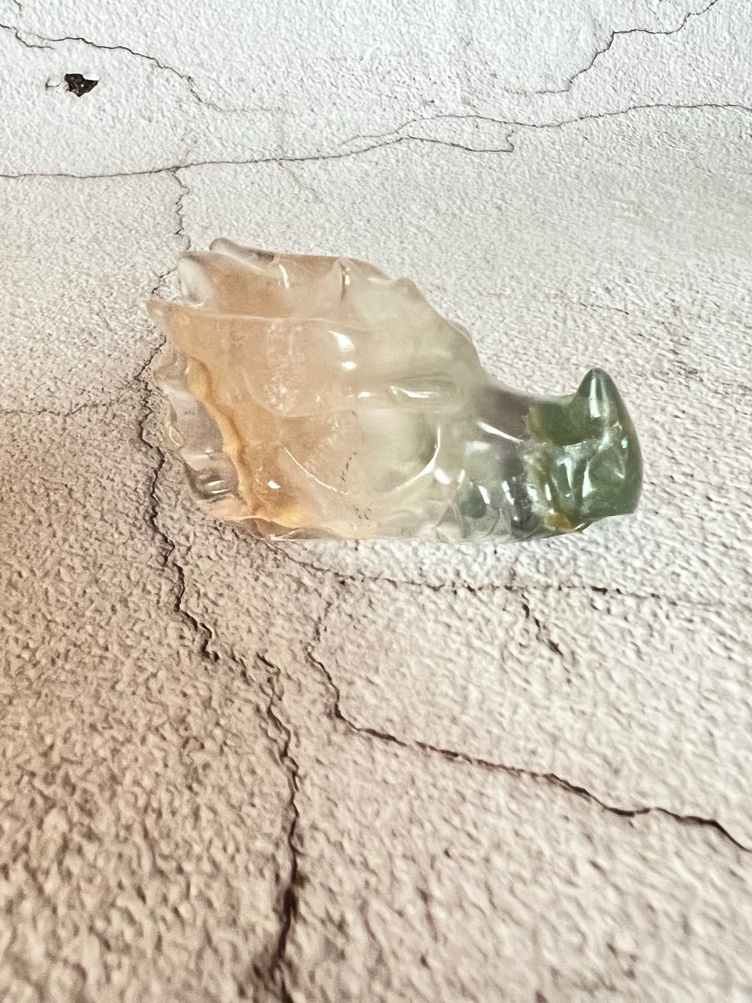 🔮 Spirituele Groei: Fluoriet staat bekend om zijn eigenschappen om spirituele groei en helderheid te bevorderen. Deze drakenkop belichaamt de magie van fluoriet en kan dienen als een spirituele gids voor inzicht en balans.