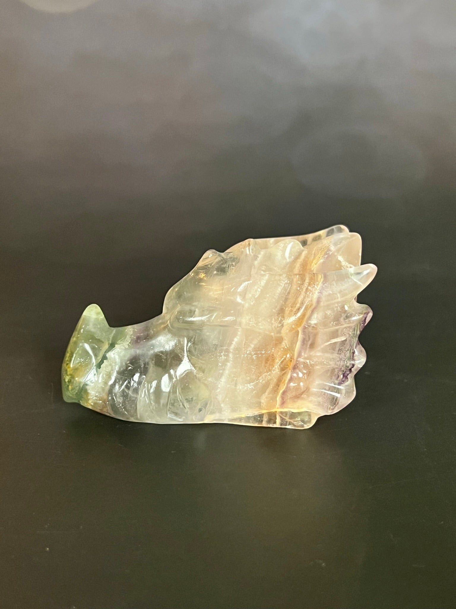 Betreed de betoverende wereld van spirituele groei en magische pracht met onze medium fluoriet drakenkop. Dit meesterwerk is niet alleen een visueel pronkstuk, maar ook een bron van kleurrijke energie en inzicht.