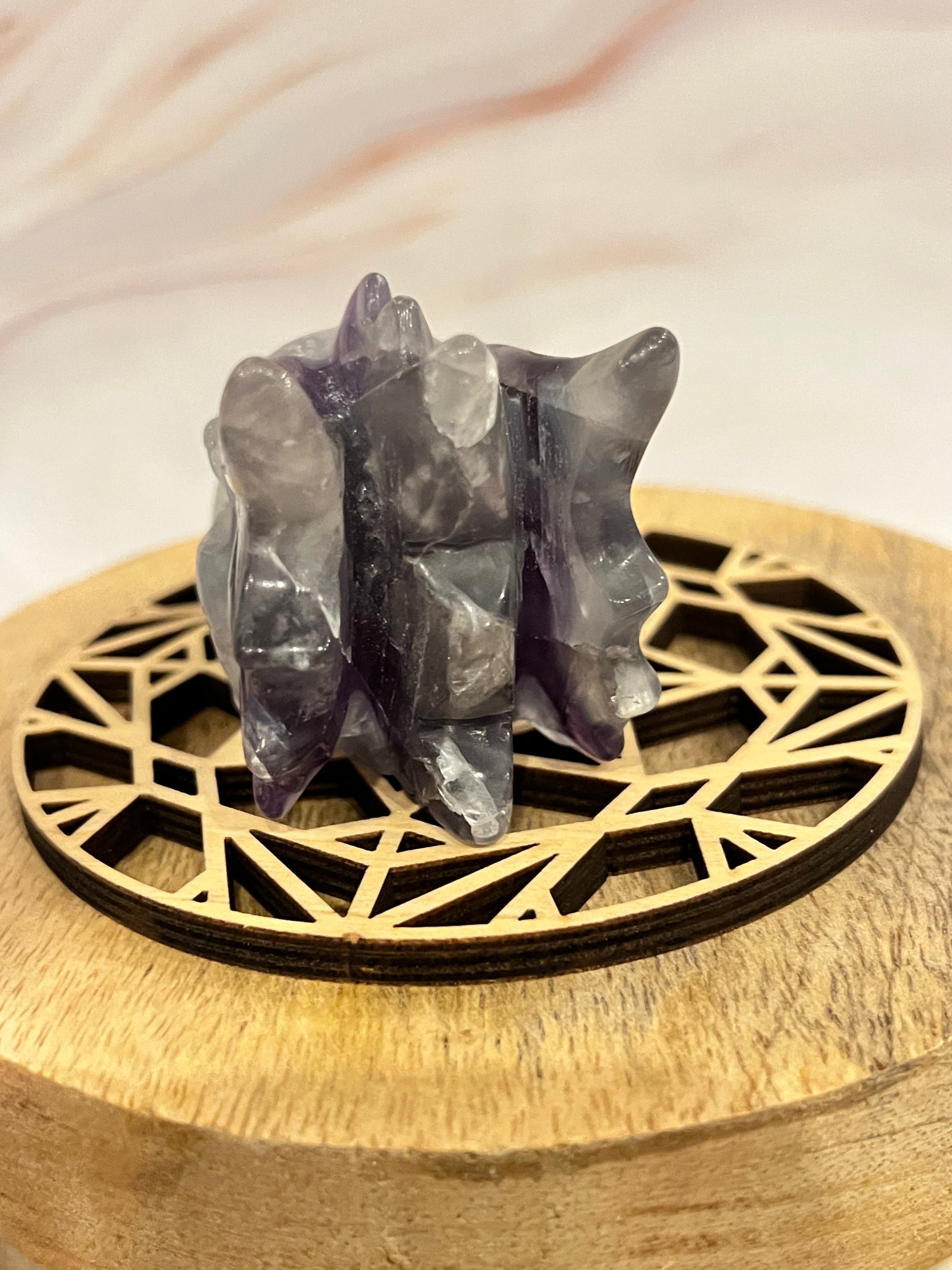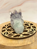 🔮 Ervaar de mystieke kracht van deze handgemaakte Fluoriet Drakenkop (8 cm) met een prachtige paarse band in de vleugels! Fluoriet is een steen van mentale helderheid, intuïtieve groei en energetische bescherming. De paarse band in de vleugels versterkt de spirituele energie en helpt bij het openen van het derde oog en het versterken van je innerlijke kracht.