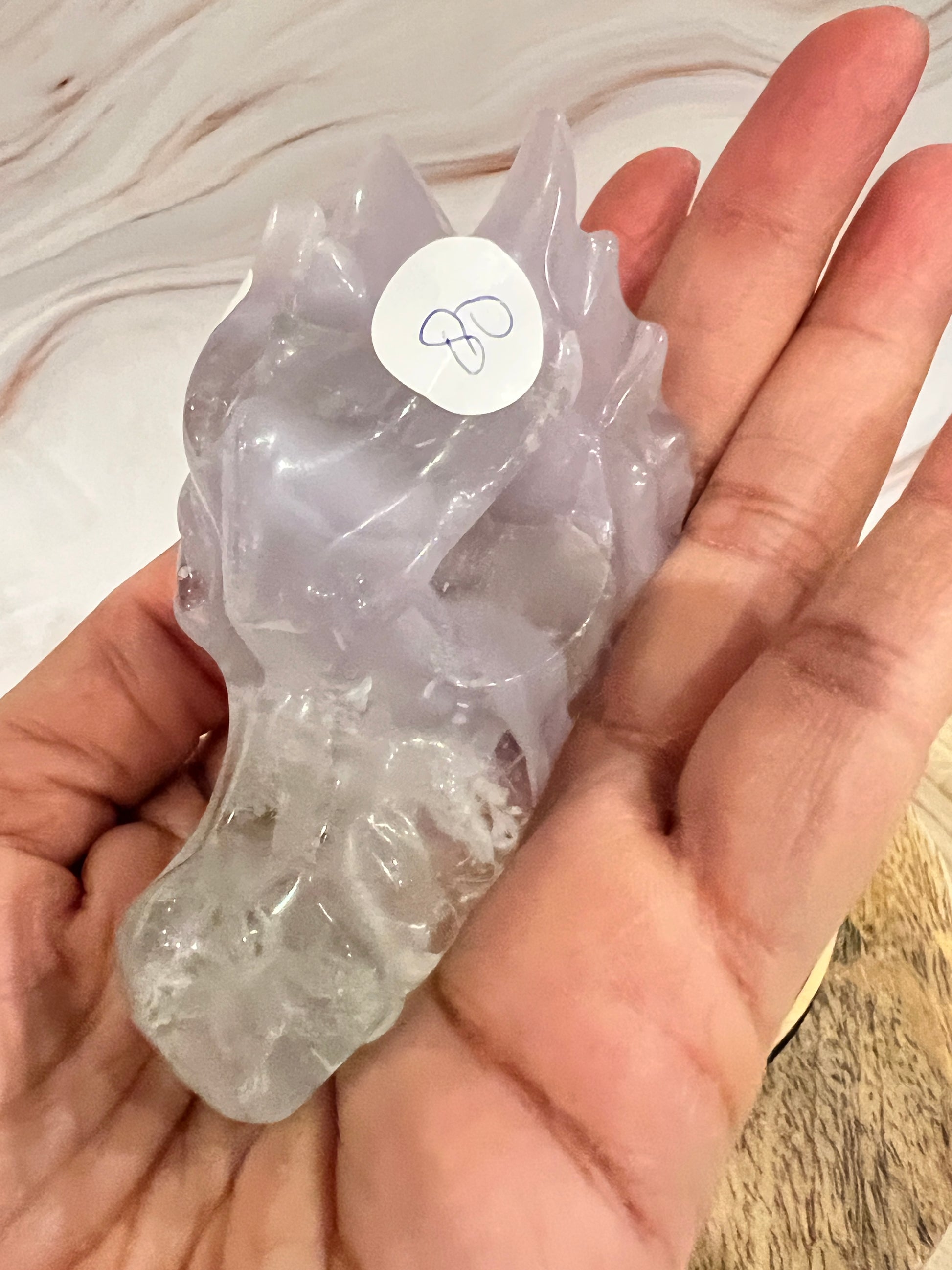 🔮 Ontdek de rustgevende en spirituele kracht van deze handgemaakte Fluoriet Lavendel Drakenkop (8 cm)! Lavendelkleurige fluoriet is een zeldzame variatie die bekendstaat om haar zachte, kalmerende energie, spirituele inzichten en diepe bescherming. De drakenvorm voegt een extra laag van kracht en transformatie toe, waardoor deze steen perfect is voor meditatie, intuïtieve ontwikkeling en energetische reiniging.