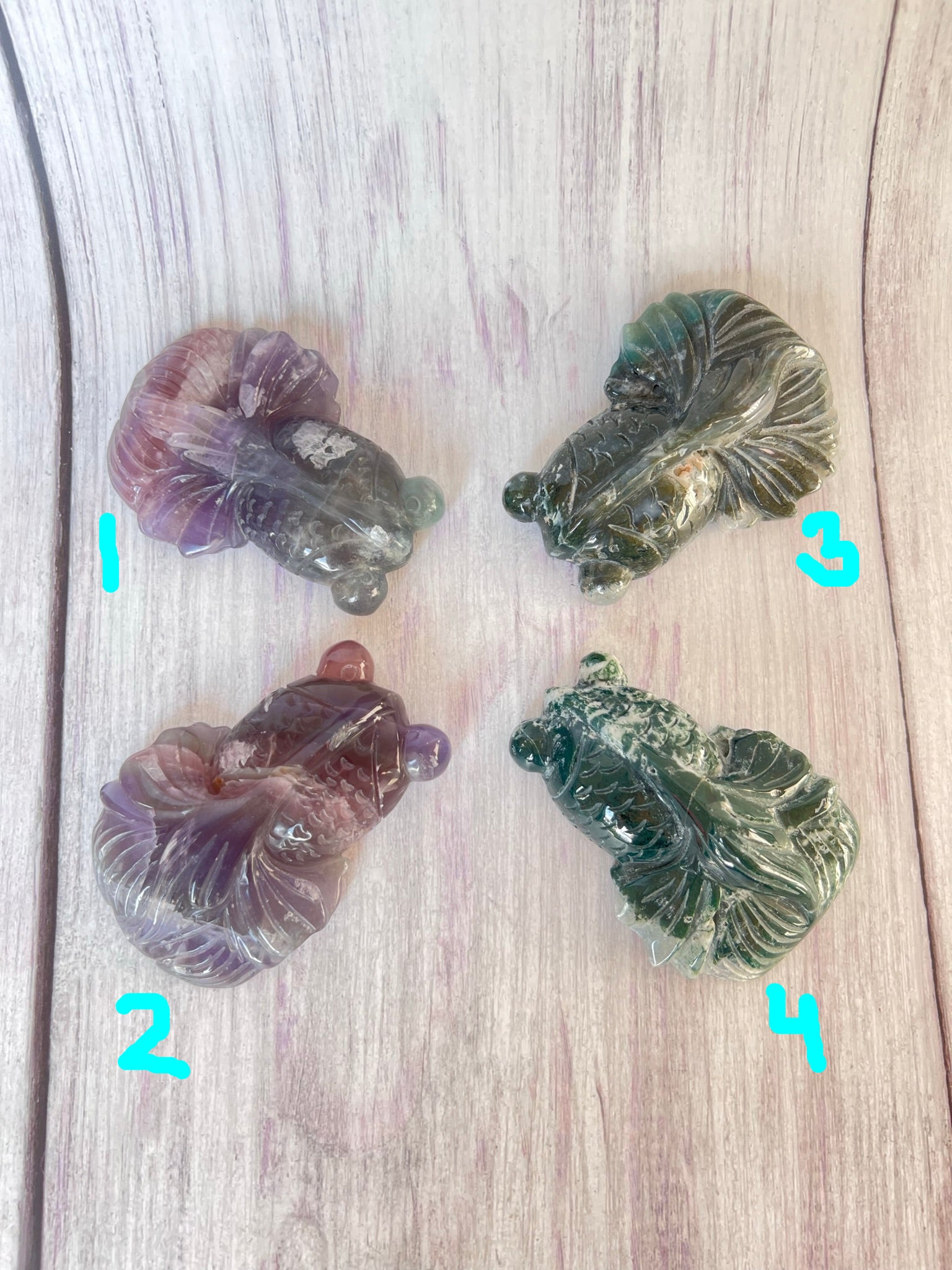 de 2 linker zijn de fluoriet vissen, de 2 rechter zijn de mosagaat vissen