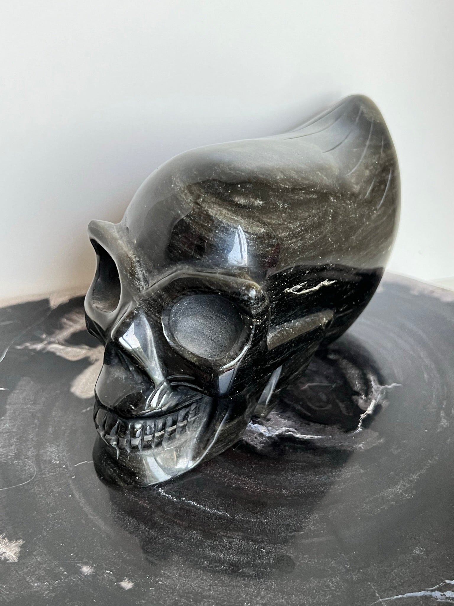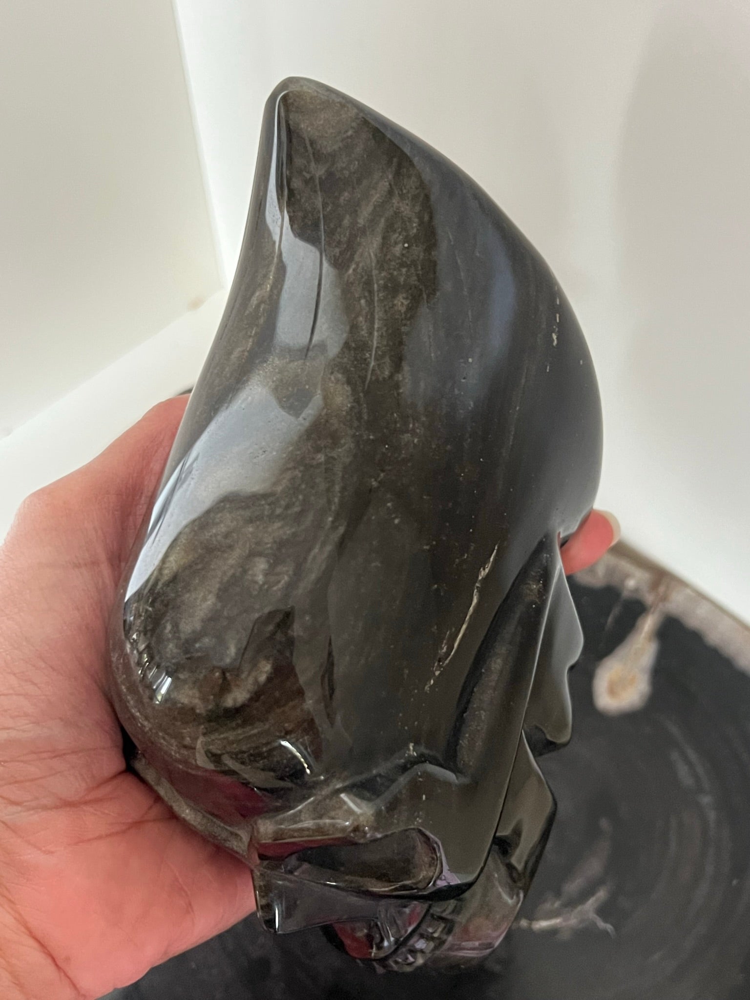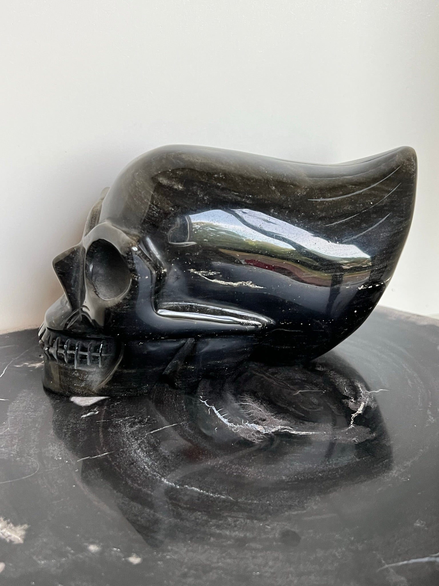 Deze mysterieuze Gouden Obsidiaan Skull werkt op het basischakra en het zonnevlechtchakra, en helpt bij transformatie en zelfreflectie. Om met deze skull te connecten, mediteer je met hem en vraag je om inzichten in je persoonlijke groei.