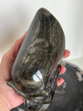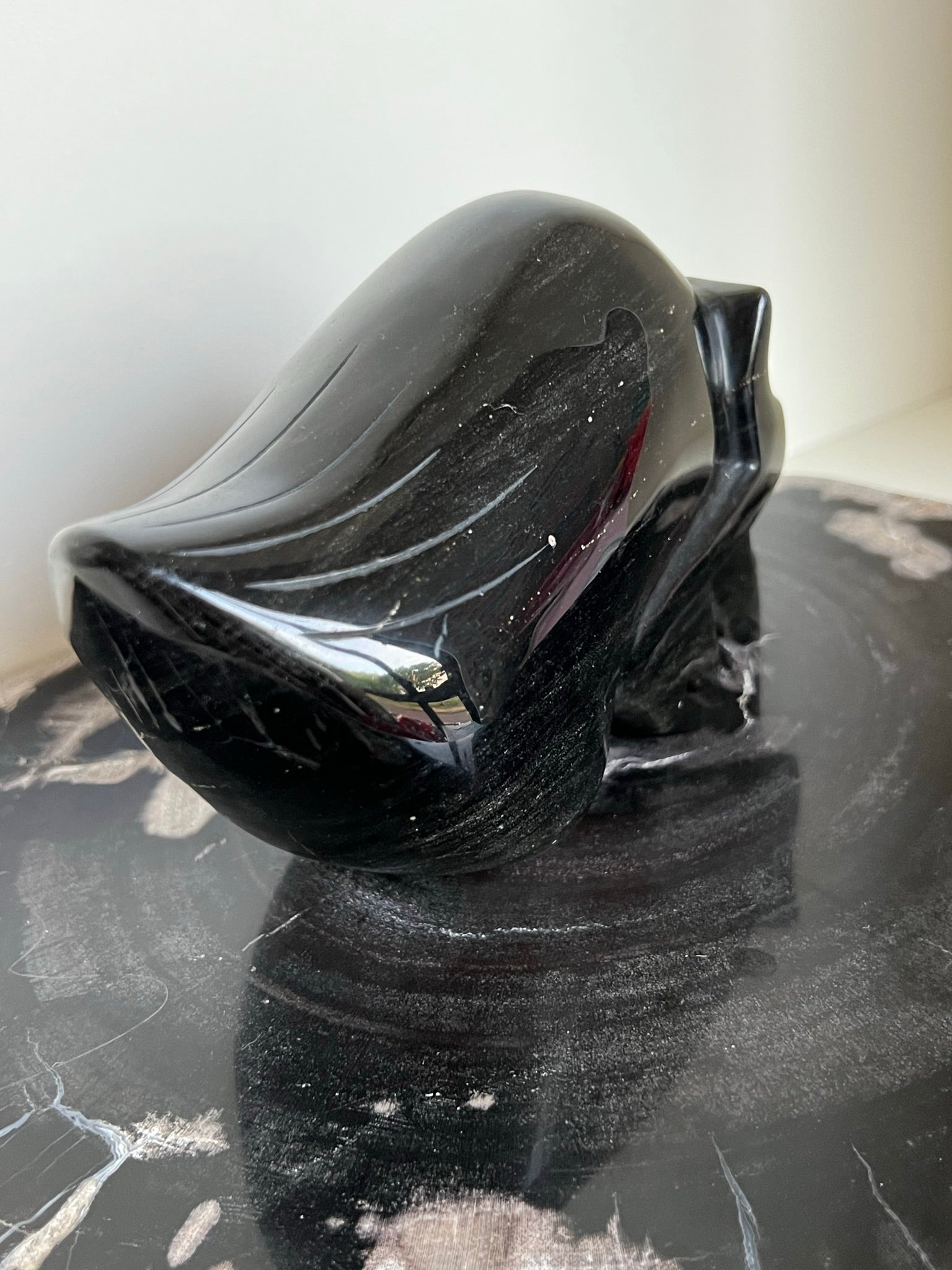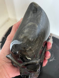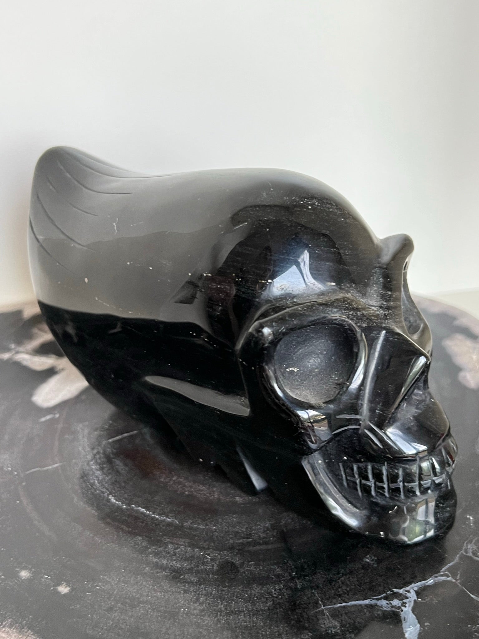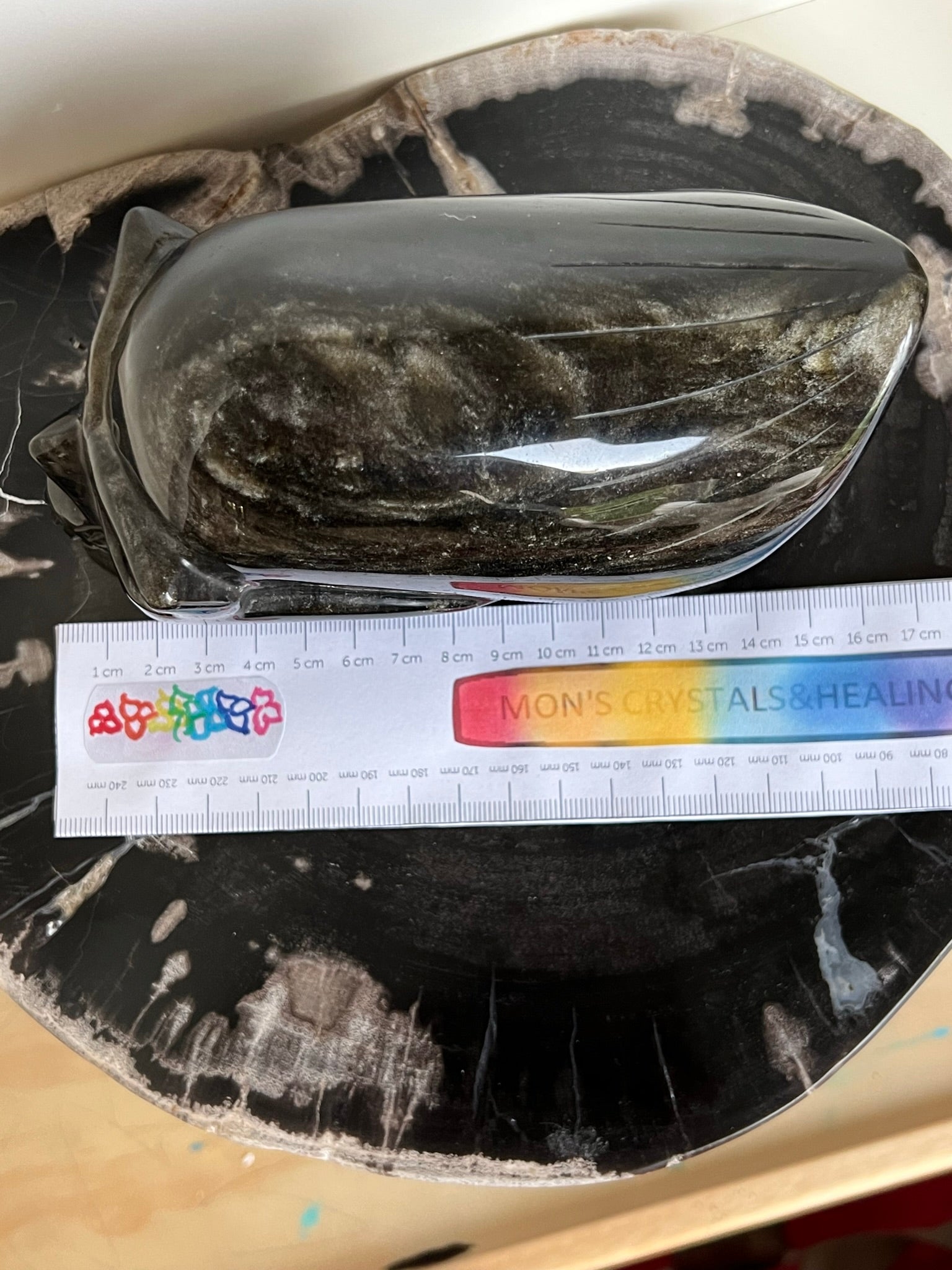 Deze mysterieuze Gouden Obsidiaan Skull werkt op het basischakra en het zonnevlechtchakra, en helpt bij transformatie en zelfreflectie. Om met deze skull te connecten, mediteer je met hem en vraag je om inzichten in je persoonlijke groei.