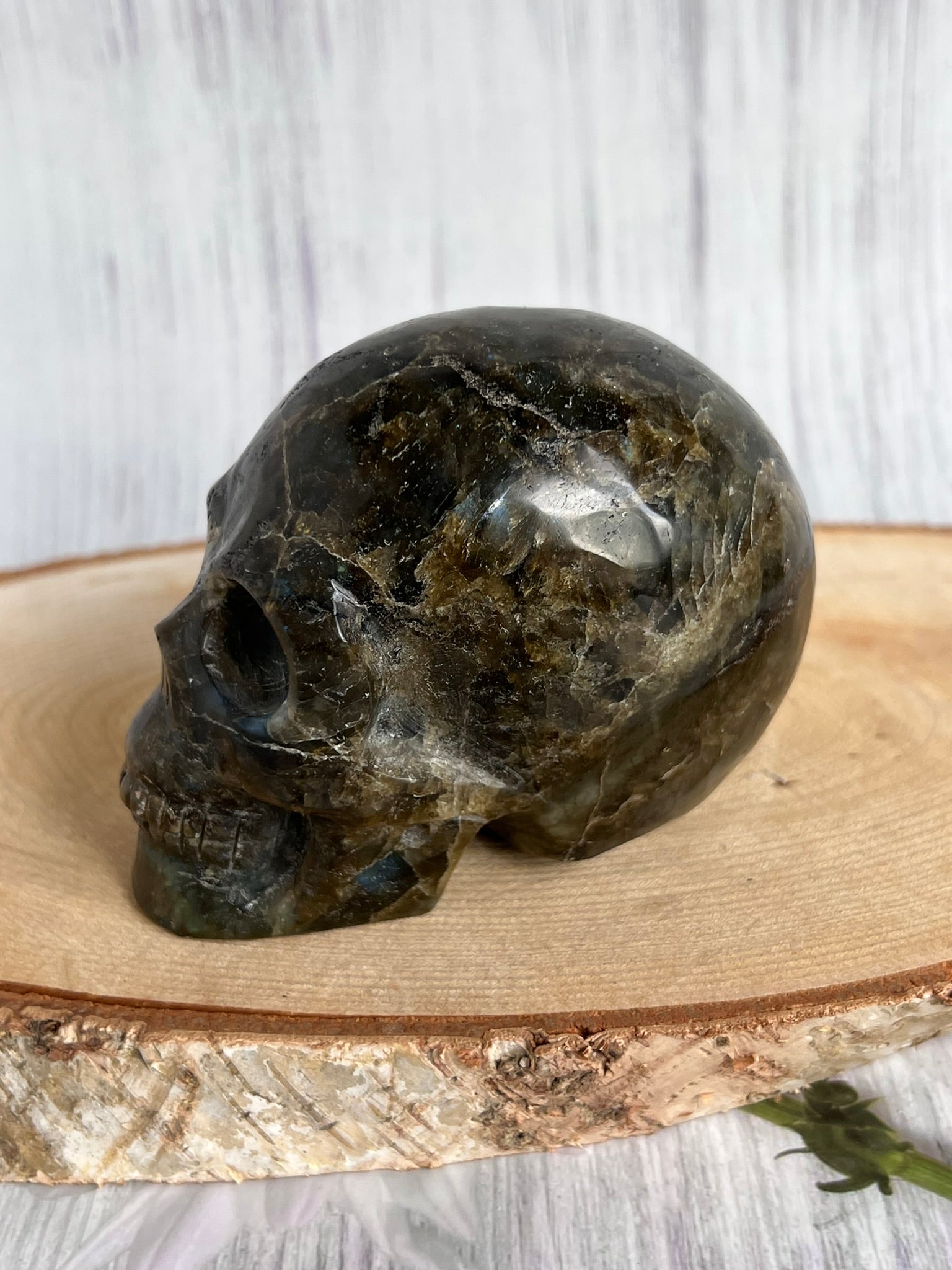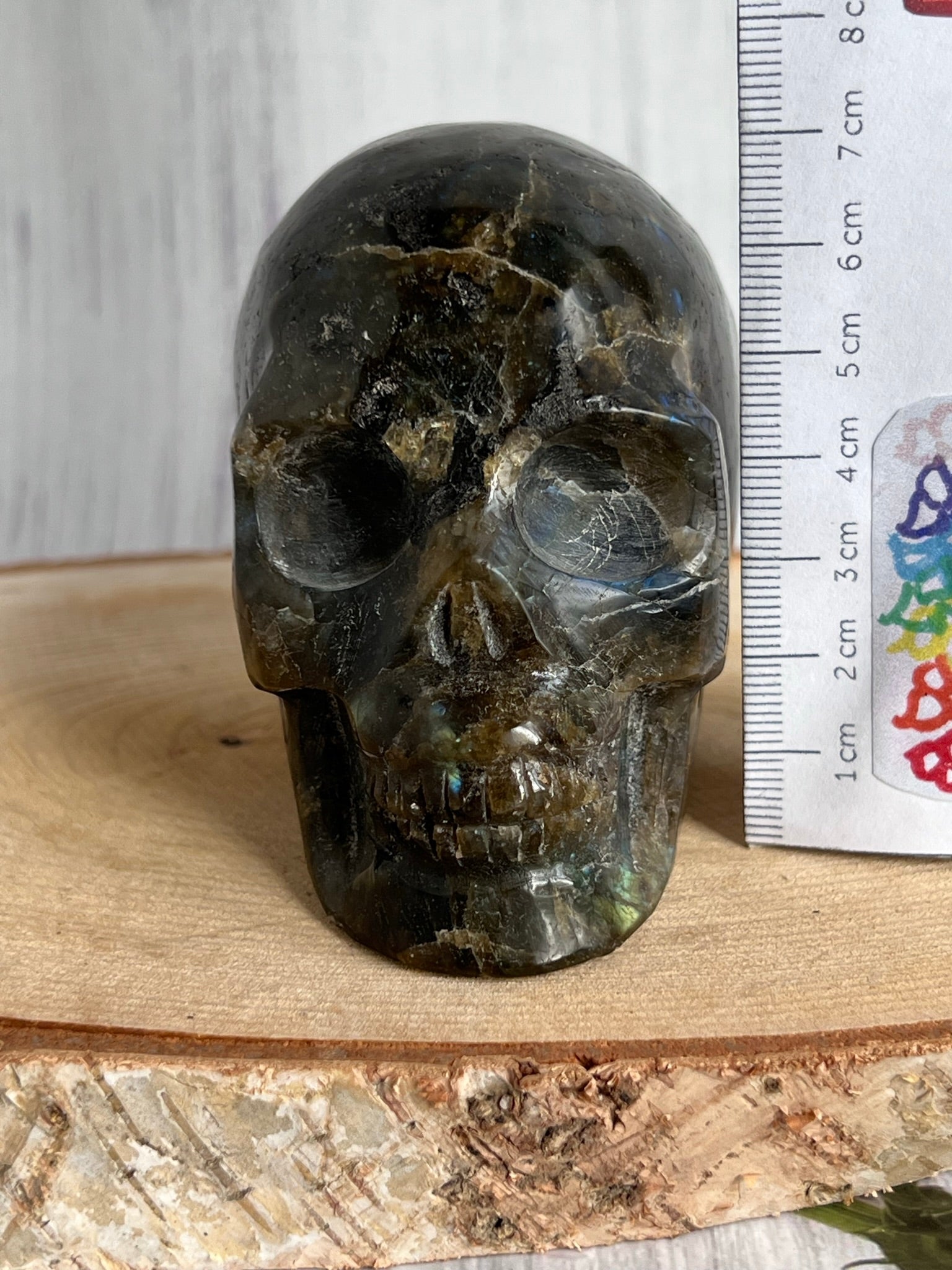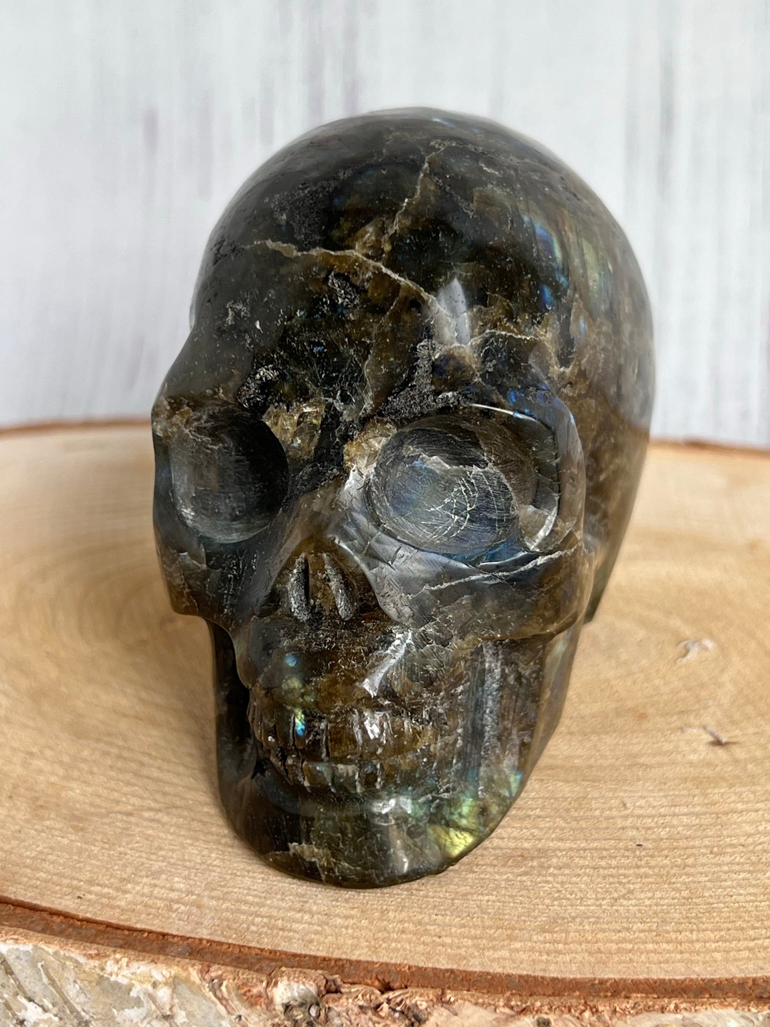 De magische Labradoriet Skull opent de deuren naar het onbekende, stimuleert intuïtie en beschermt je aura. Om met deze skull te connecten, plaats je hem voor je tijdens meditatie en laat je zijn energie je intuïtieve inzichten versterken.