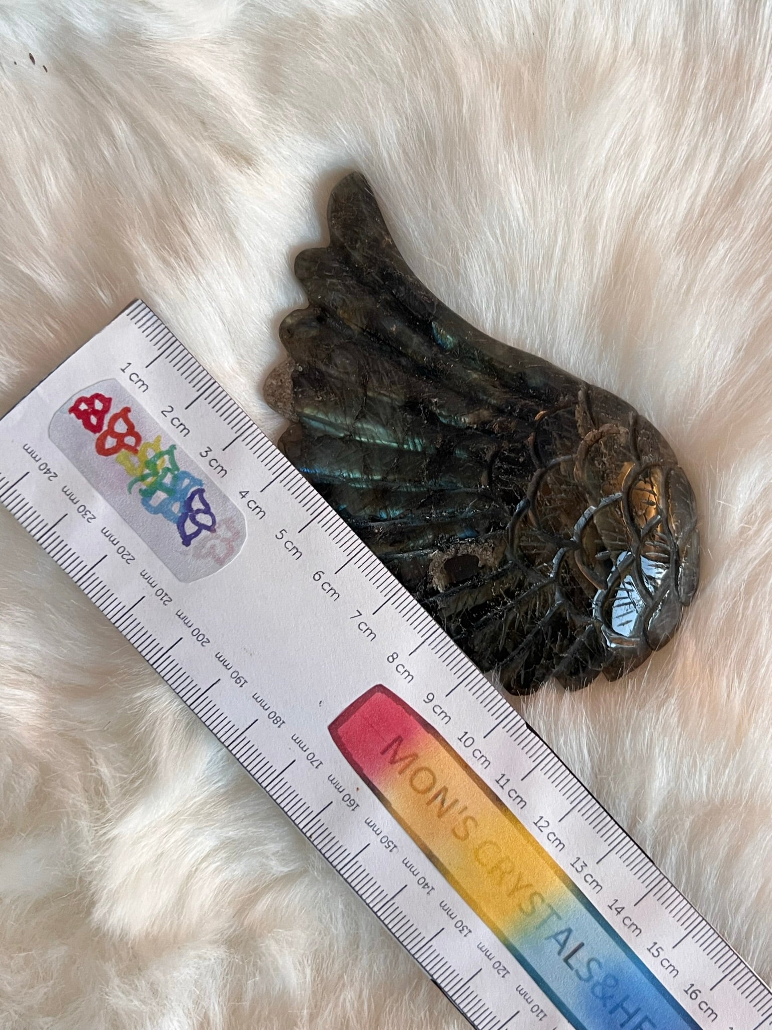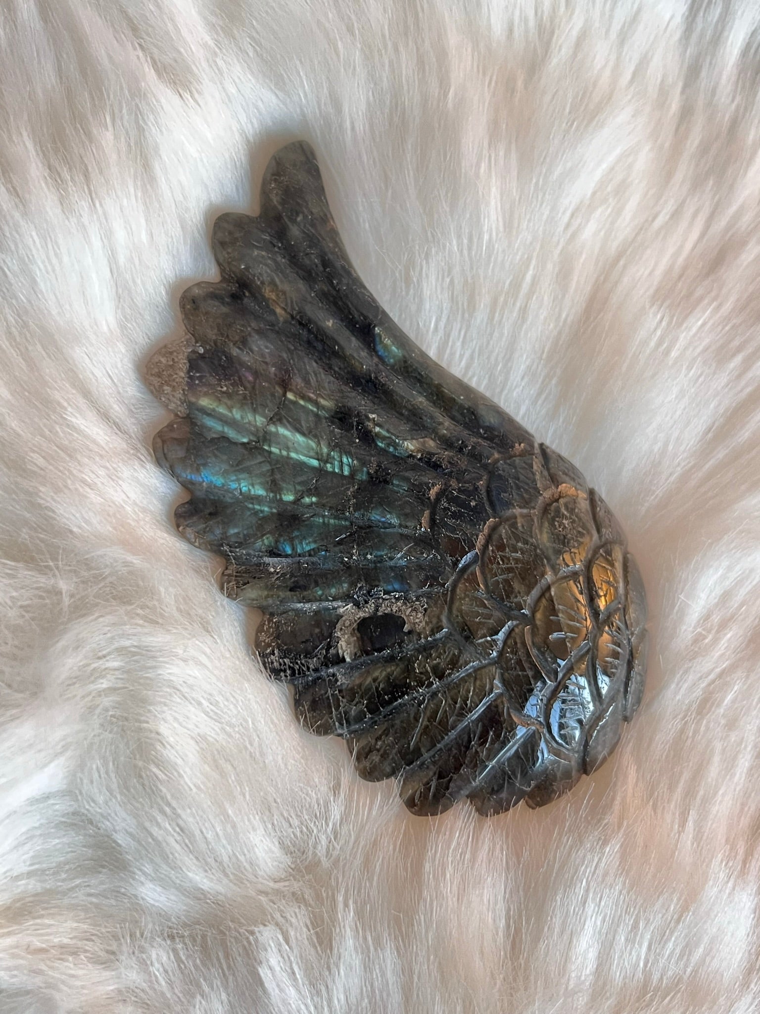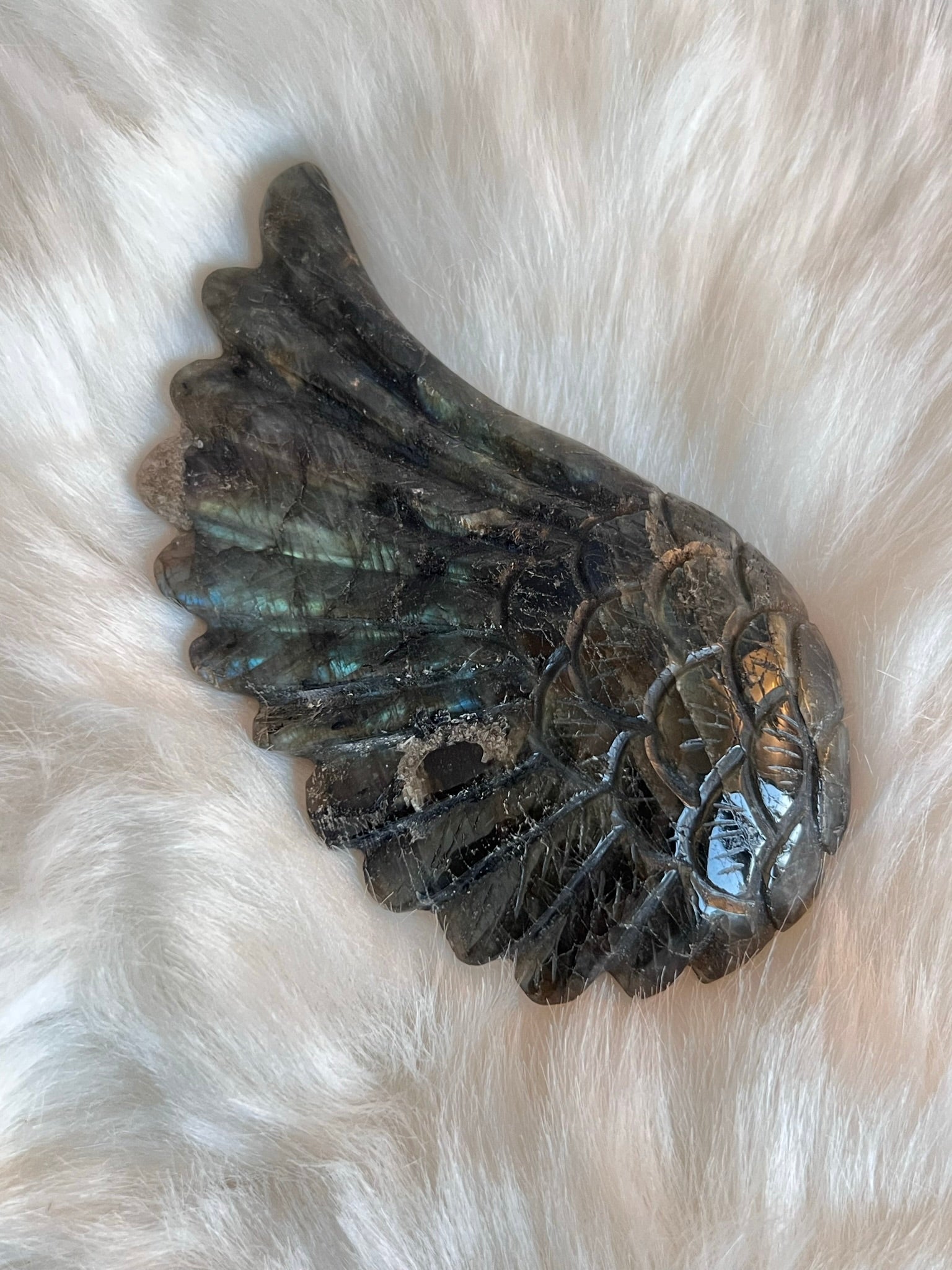 * Spiritueel: De engelen vleugels gemaakt van Labradoriet staan bekend om hun beschermende en mystieke eigenschappen. Ze kunnen helpen bij het afweren van negatieve energieën en het bevorderen van spirituele groei. De vleugels kunnen het derde oog openen en vergroten intuïtie, waardoor je dieper inzicht kunt krijgen in jezelf en de wereld om je heen.