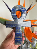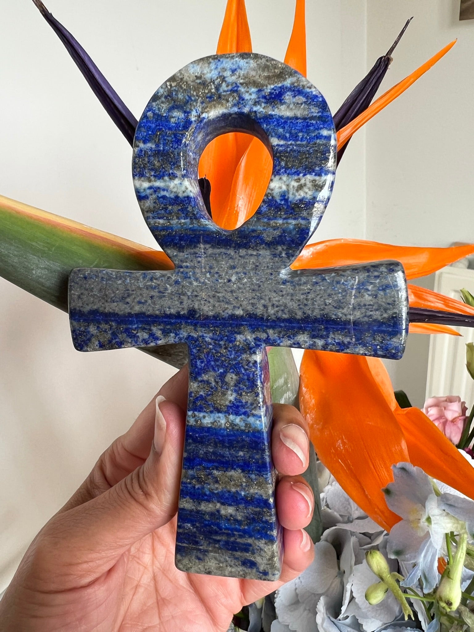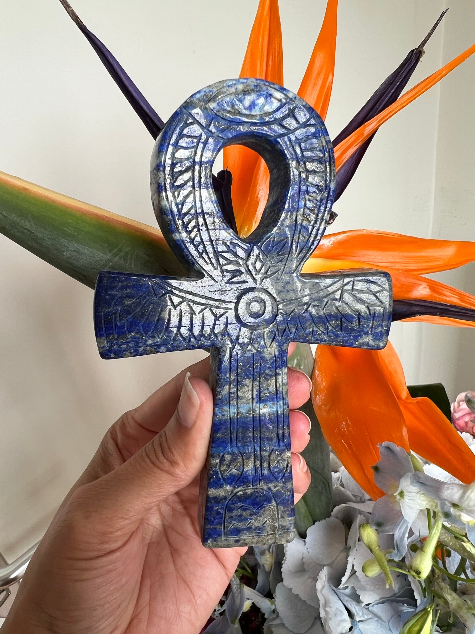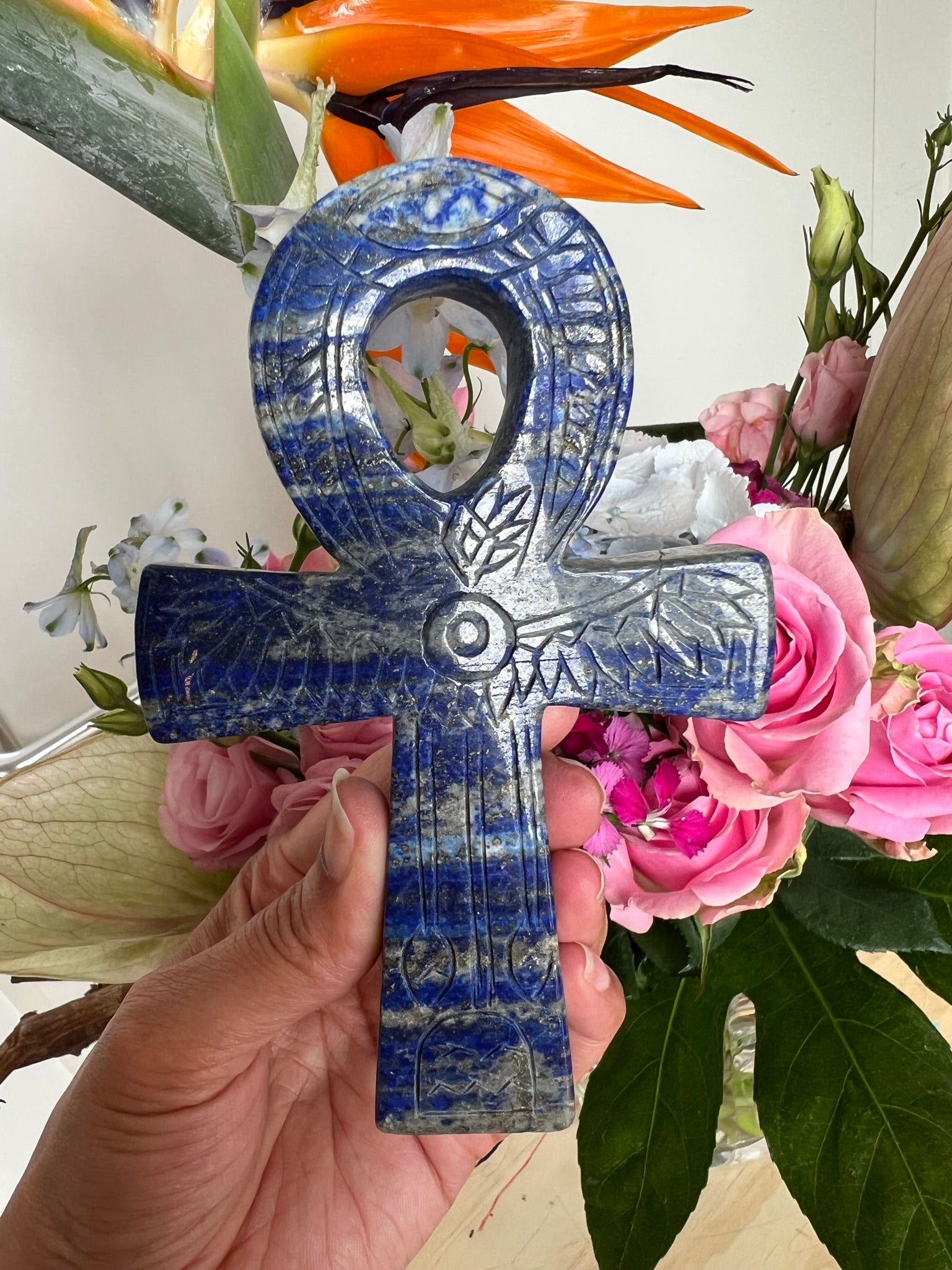 Duik in de diepten van wijsheid en innerlijke kracht met de Lapis Lazuli Ankh. Het diepe blauw van de Lapis Lazuli steen versterkt de betekenis van het Ankh-symbool, dat staat voor levenskracht en spirituele verbinding. Deze combinatie opent het derde oogchakra en stimuleert spirituele groei en intuïtie.