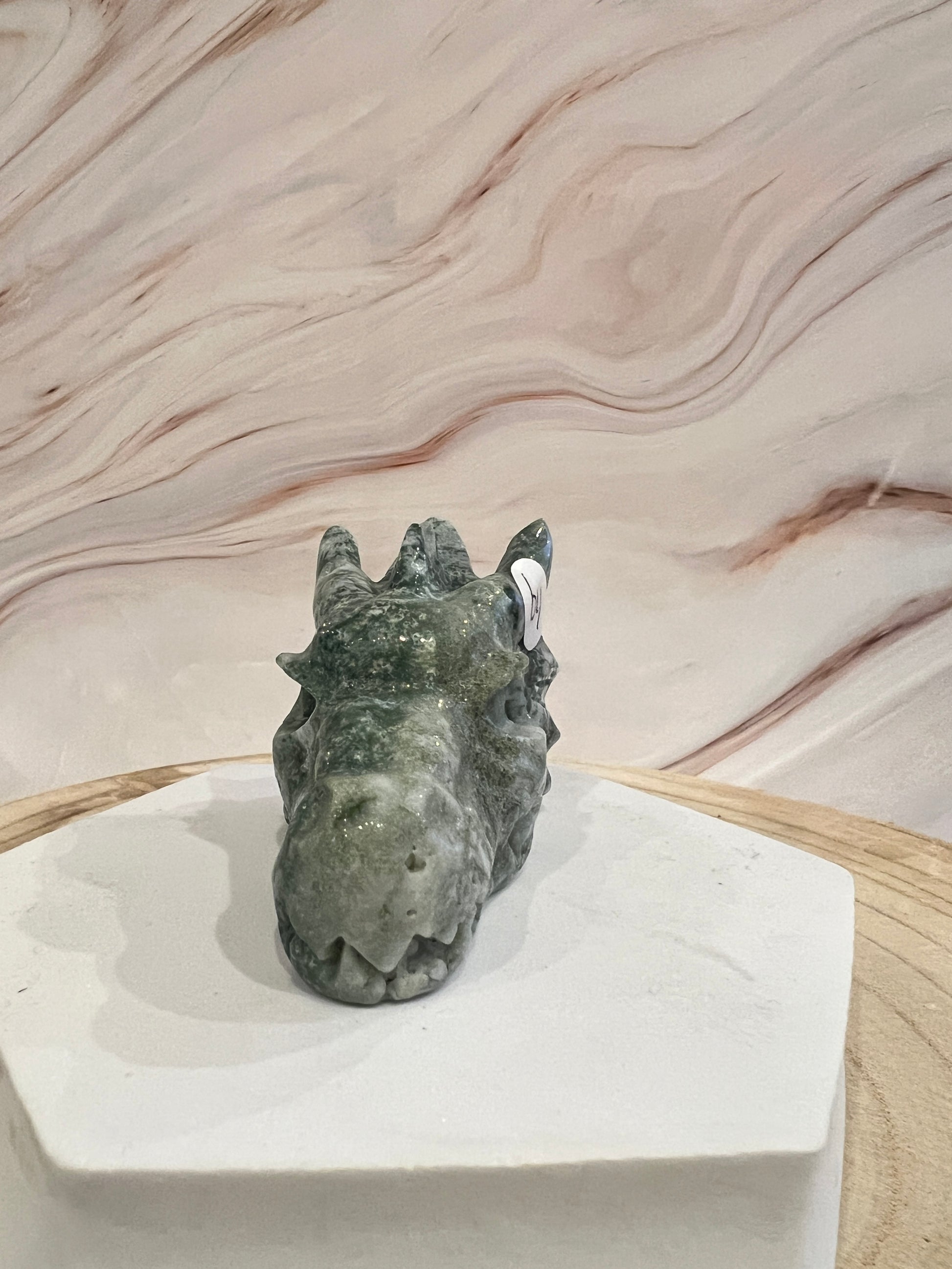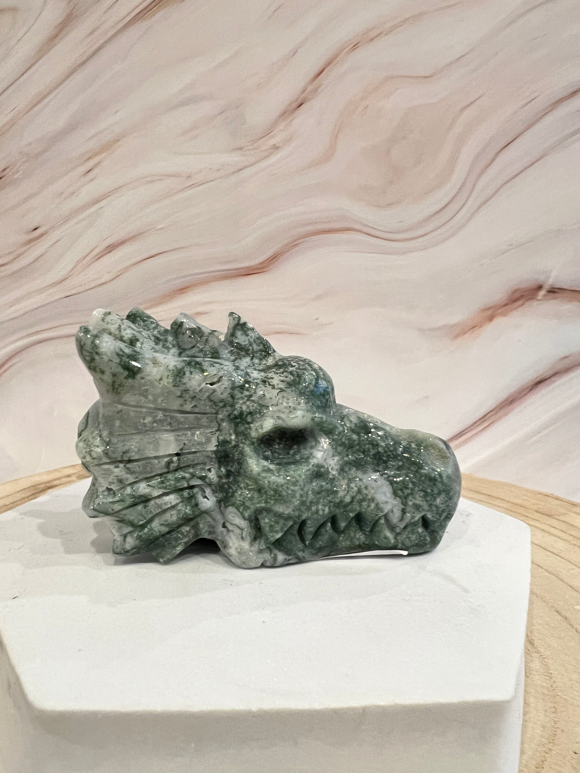 🔮 Ervaar de diepe connectie met de natuur en innerlijke kracht met deze handgemaakte Mosagaat Drakenkop (8 cm)! Mosagaat staat bekend als de steen van aarding, stabiliteit en spirituele groei. In combinatie met de krachtige drakenenergie brengt deze edelsteen bescherming, transformatie en balans in je leven.