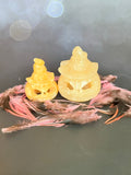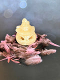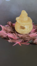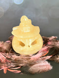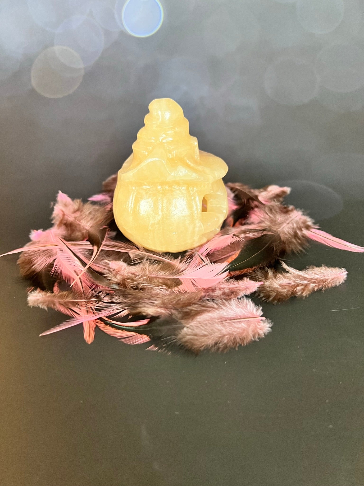 Laat de magie van Halloween tot leven komen met onze prachtige oranje calciet carving. Deze unieke carving brengt niet alleen de betovering van het seizoen in je huis, maar biedt ook de helende eigenschappen van oranje calciet.