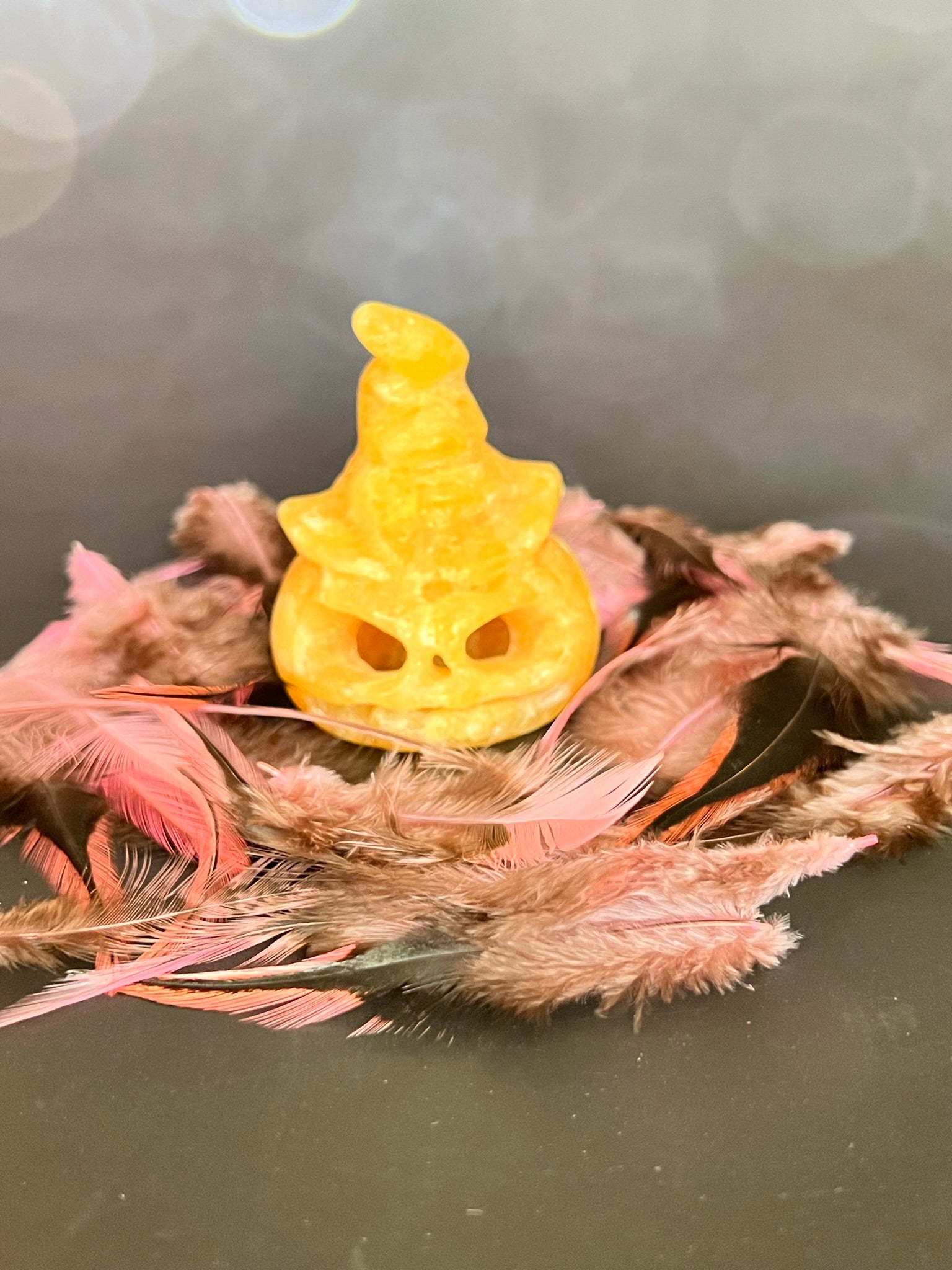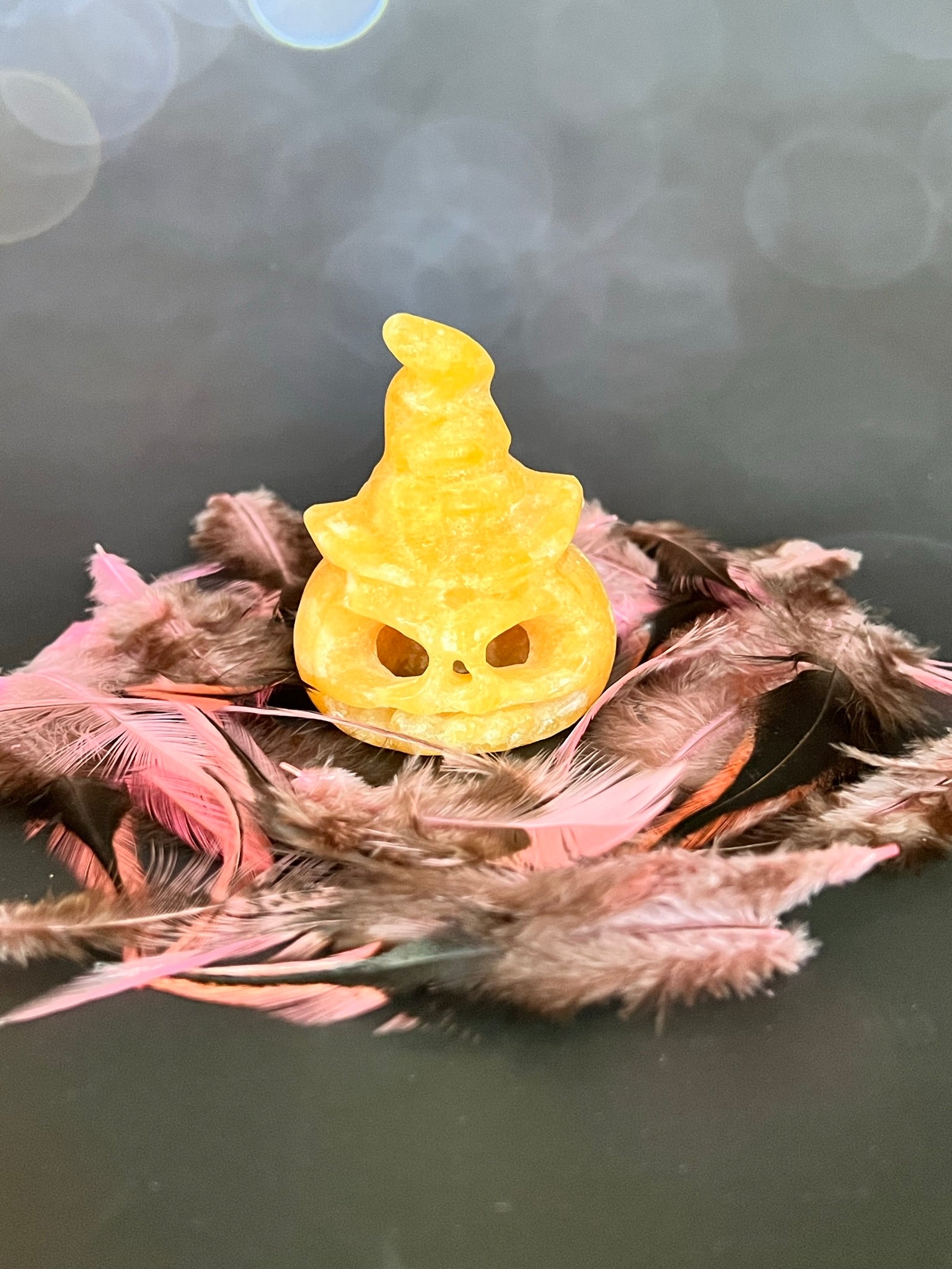 Vier Halloween in stijl en omring jezelf met de warme en positieve energie van oranje calciet. Voeg deze prachtige carving toe aan je collectie en maak van elk seizoen een magische ervaring.