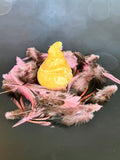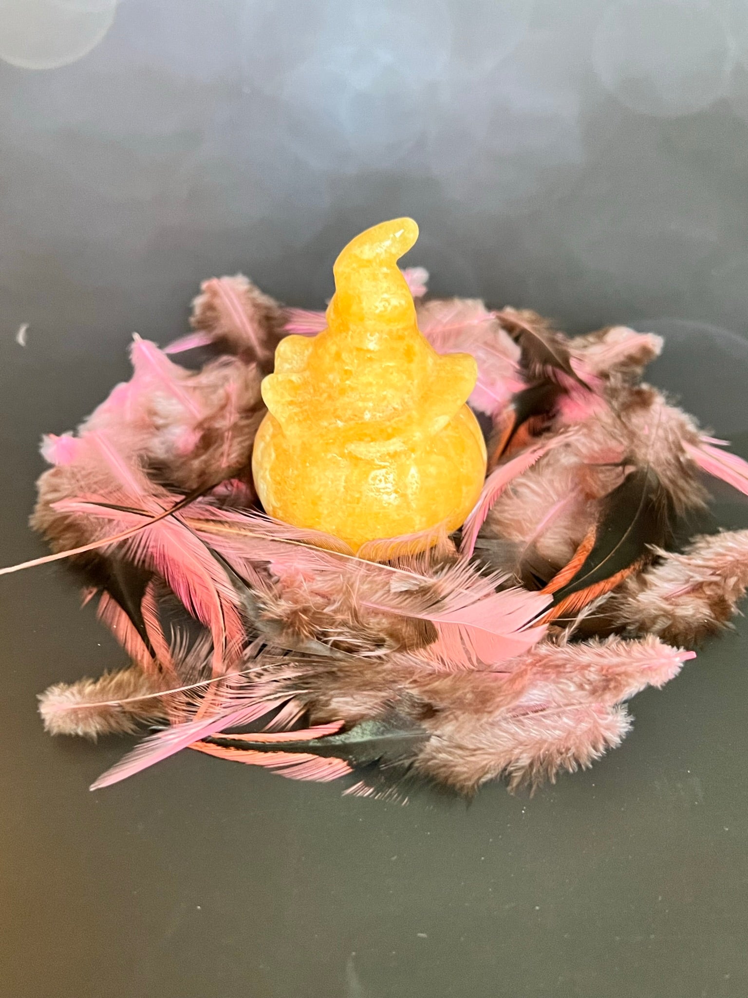 ๐ฎ Helende Eigenschappen: Oranje calciet staat bekend om zijn vermogen om vreugde en positiviteit te bevorderen. Het kan helpen bij het overwinnen van angstgevoelens en stress, en brengt een gevoel van kalmte en optimisme. Deze carving brengt een extra dosis magie aan je leven.