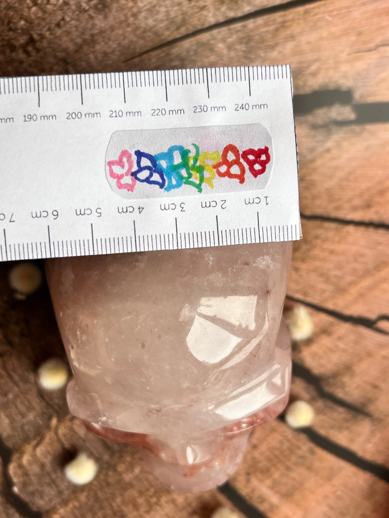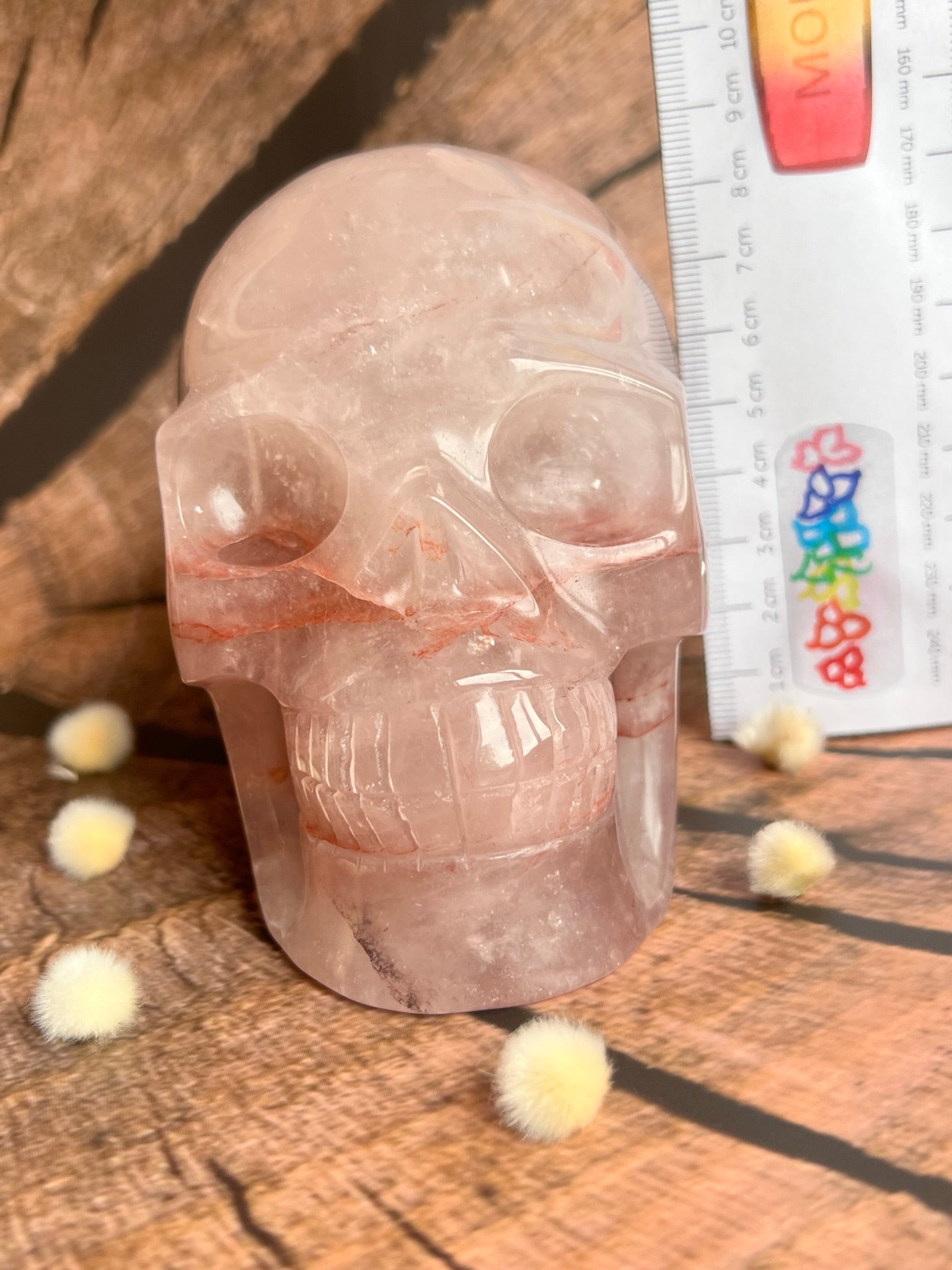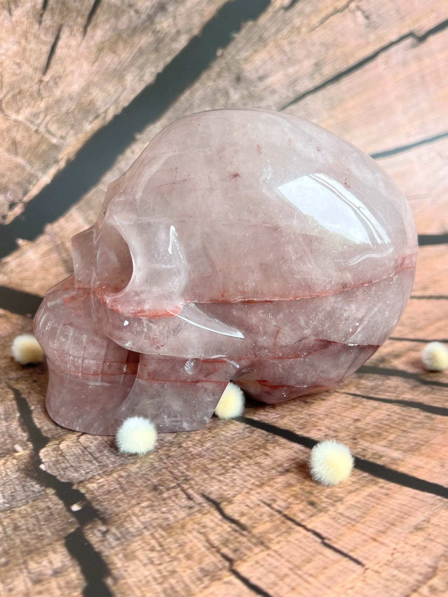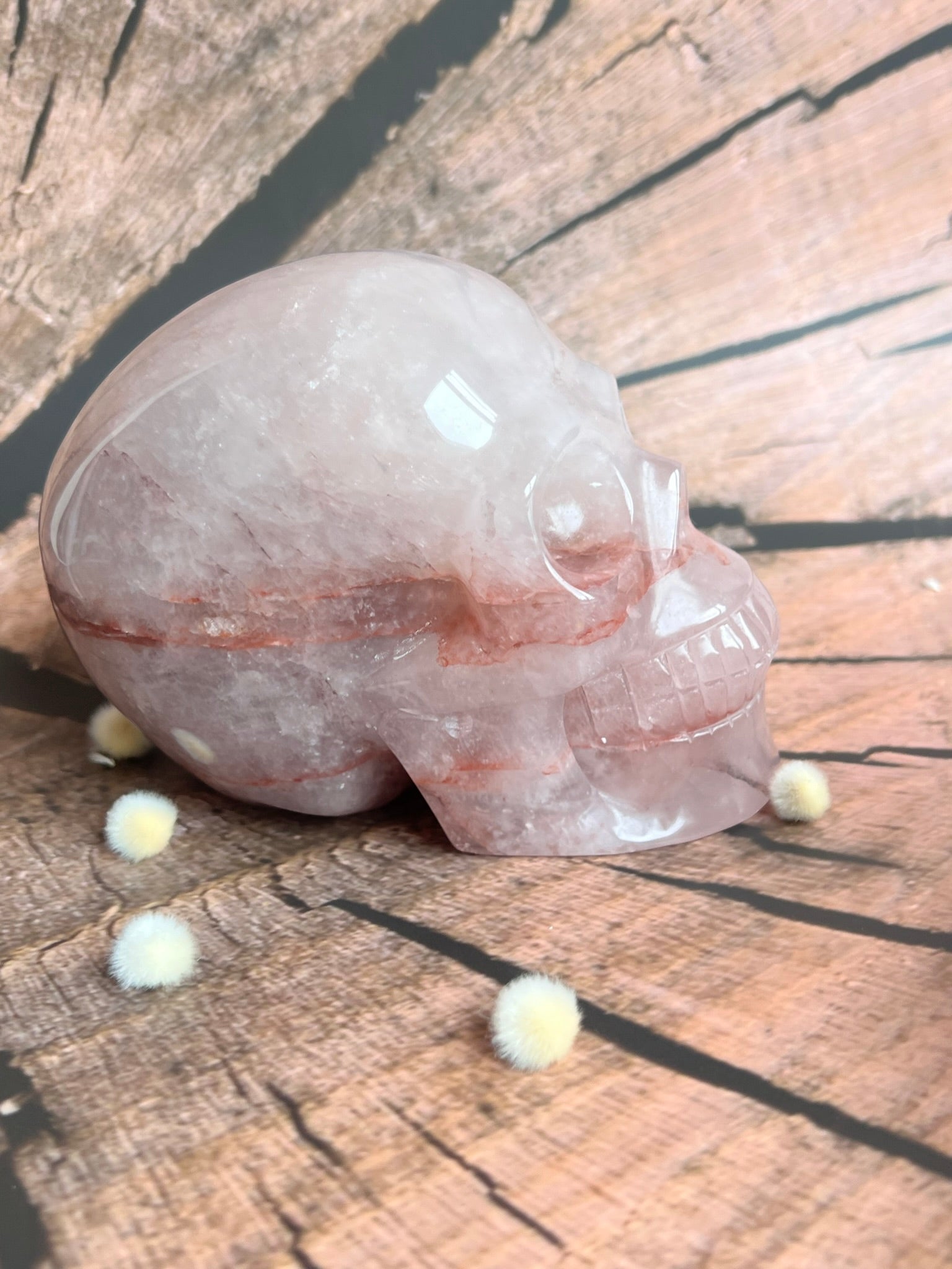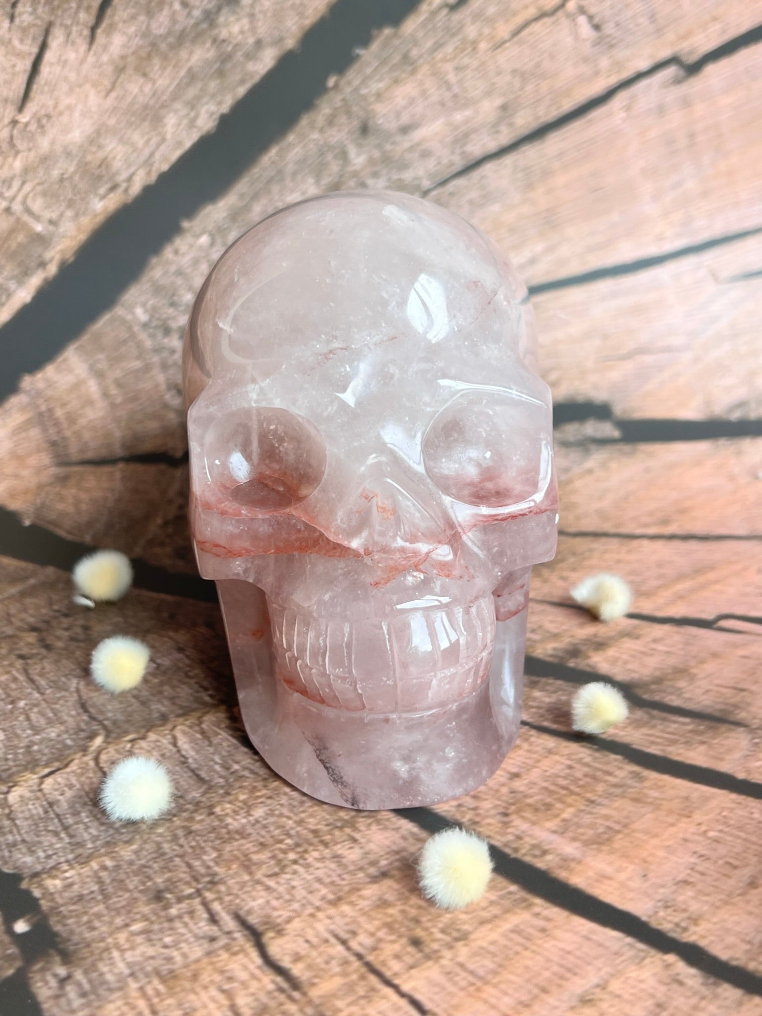 Deze vurige combinatie van Red Fire Quartz Hematoid versterkt levenskracht, helpt bij transformatie en loslaten van het verleden. Om met deze skull te connecten, plaats je hem voor je tijdens meditatie en visualiseer je hoe zijn energie je wortelchakra versterkt.