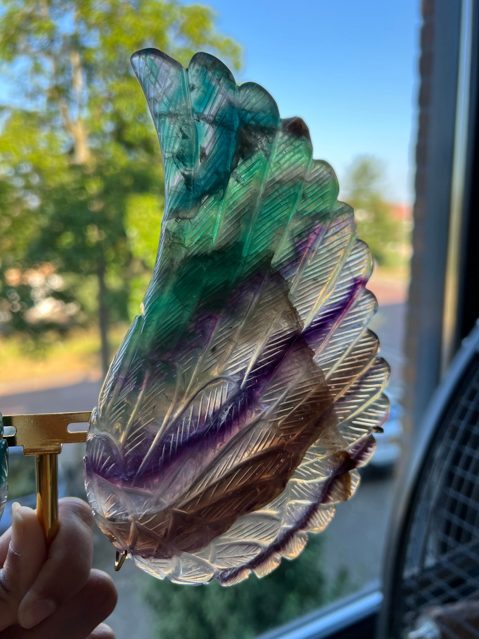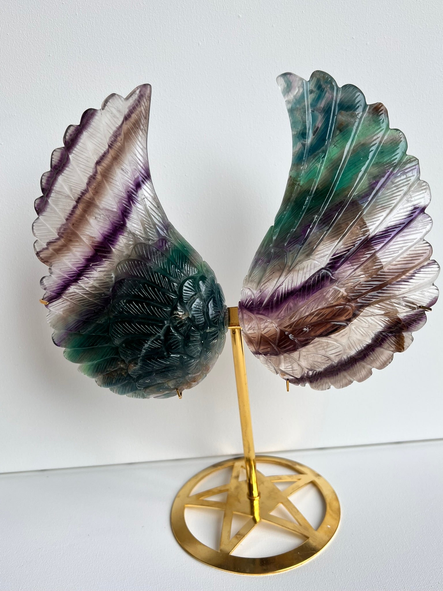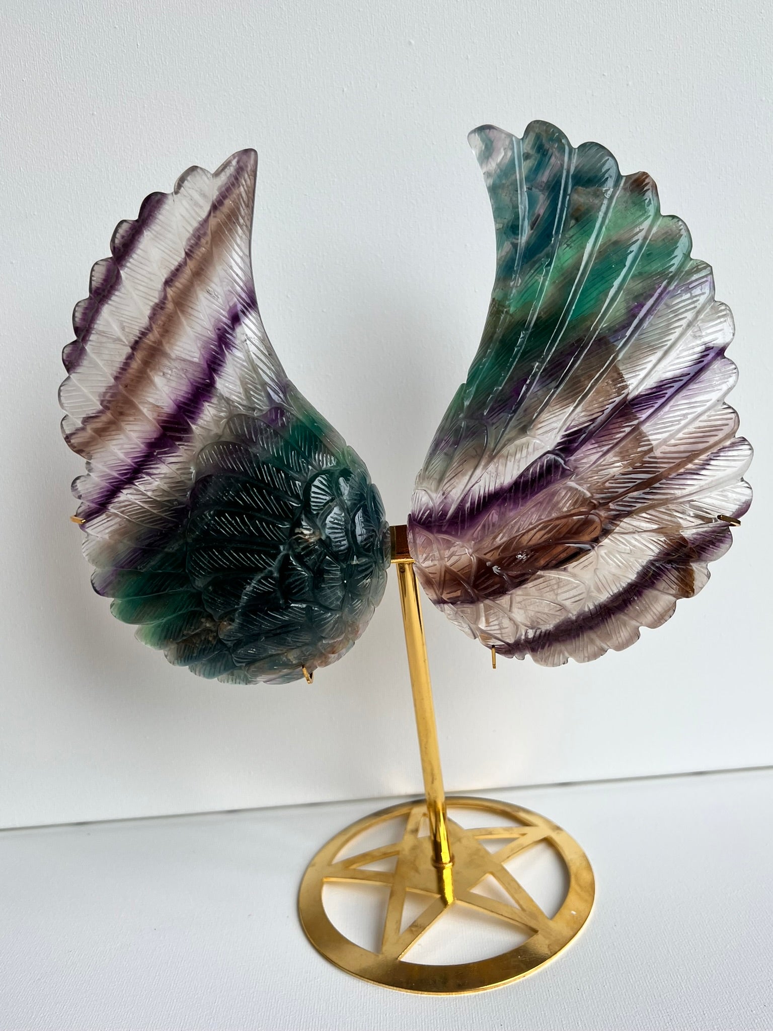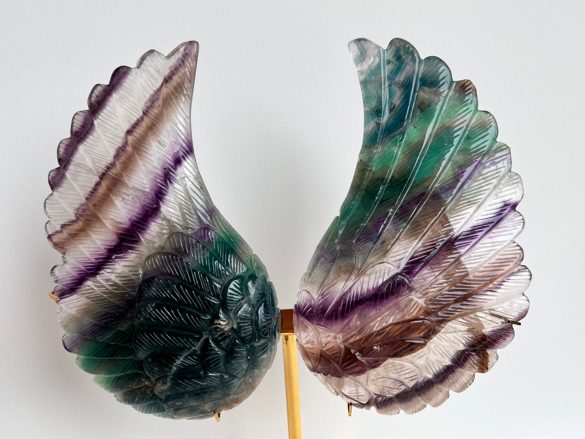 * Spiritueel: De engelen vleugels gemaakt van Regenboog Fluoriet staan bekend om hun harmoniserende en beschermende eigenschappen. Ze kunnen helpen bij het zuiveren van de geest en het bevorderen van spirituele groei. De regenboogkleuren in de steen versterken intuïtie en helderheid, waardoor je dieper inzicht kunt krijgen in jezelf en de wereld om je heen.