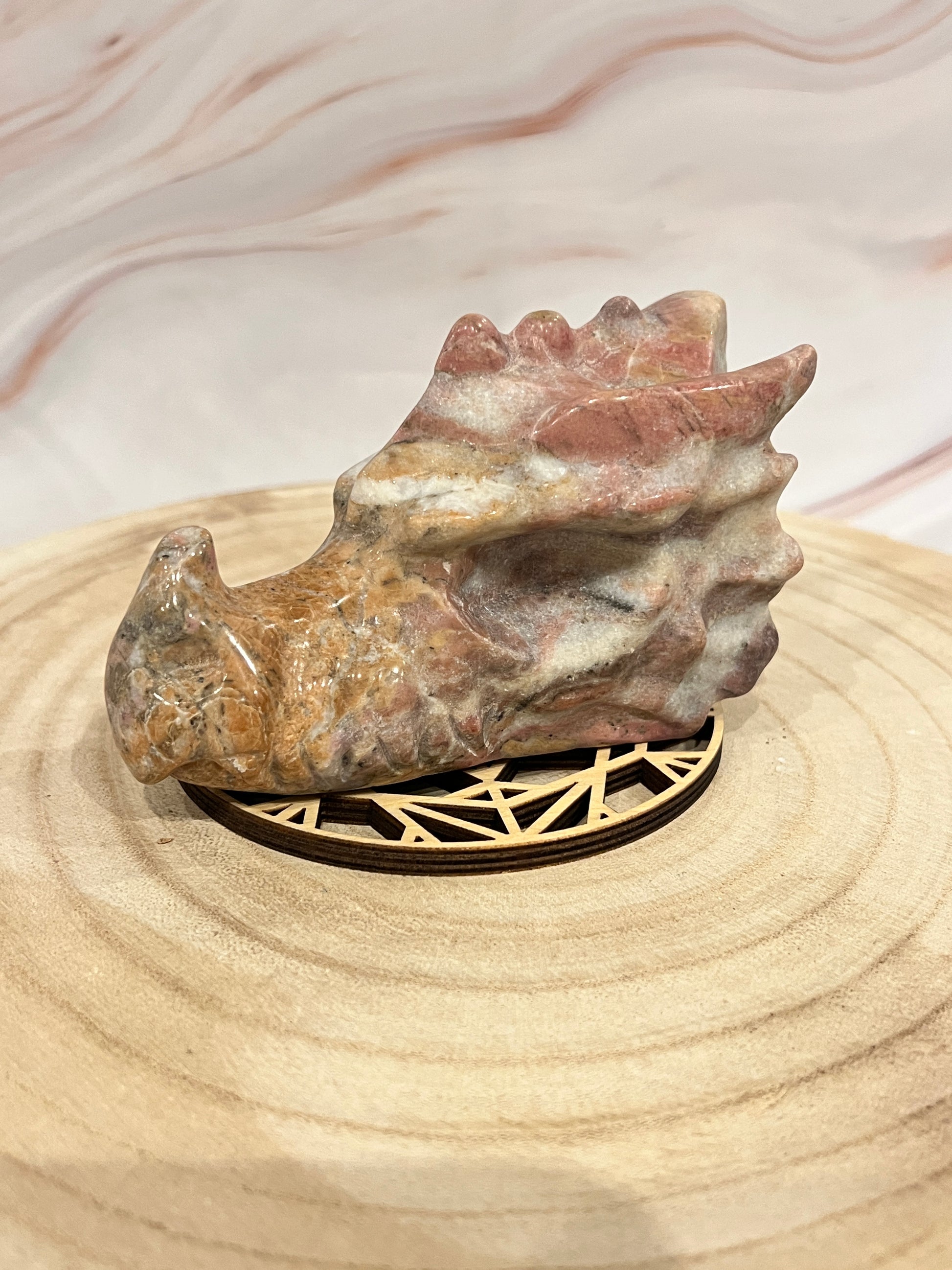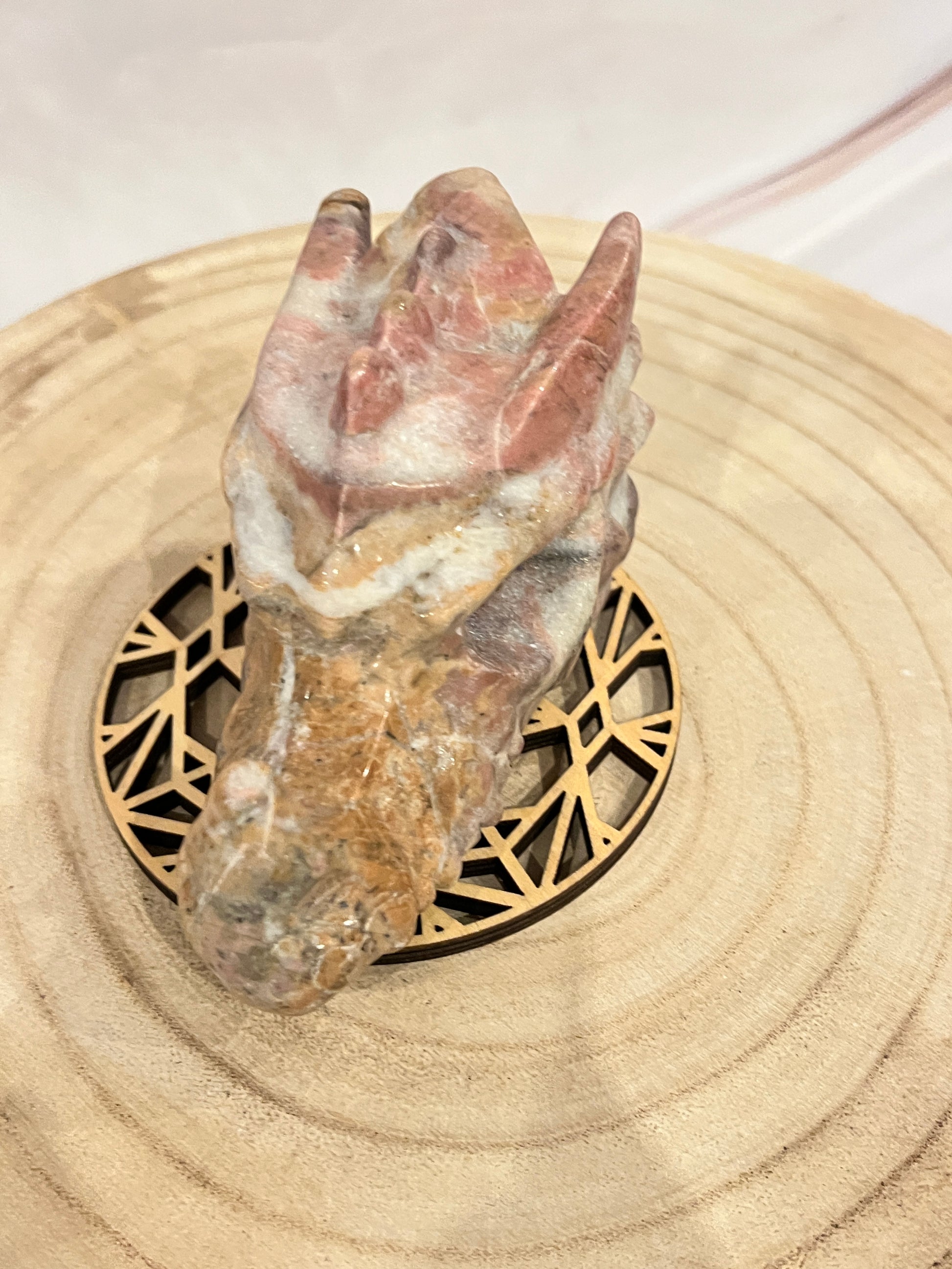 📩 Bestel nu en laat de helende kracht van deze Rhodoniet Drakenkop jouw energie versterken! ✨