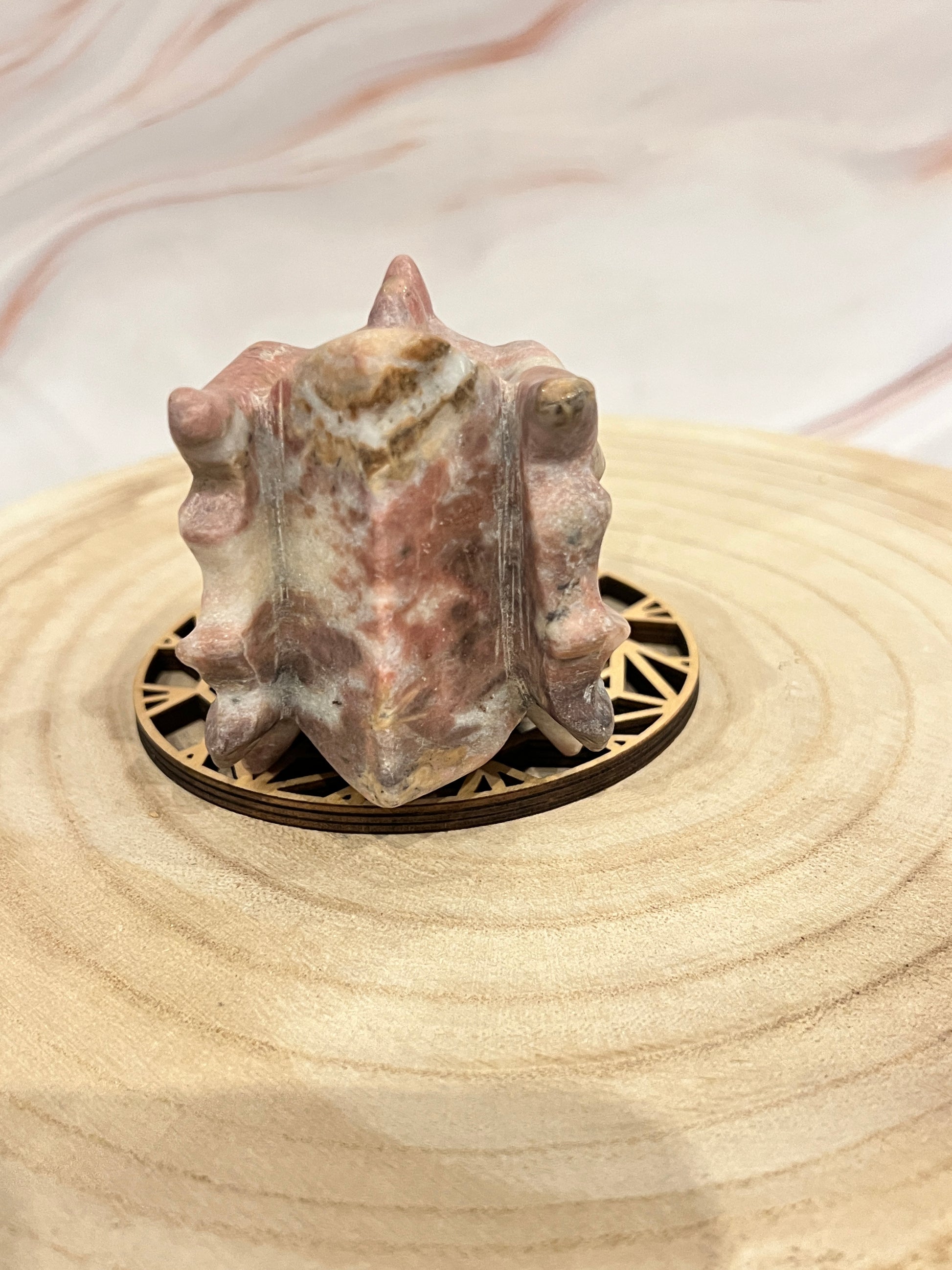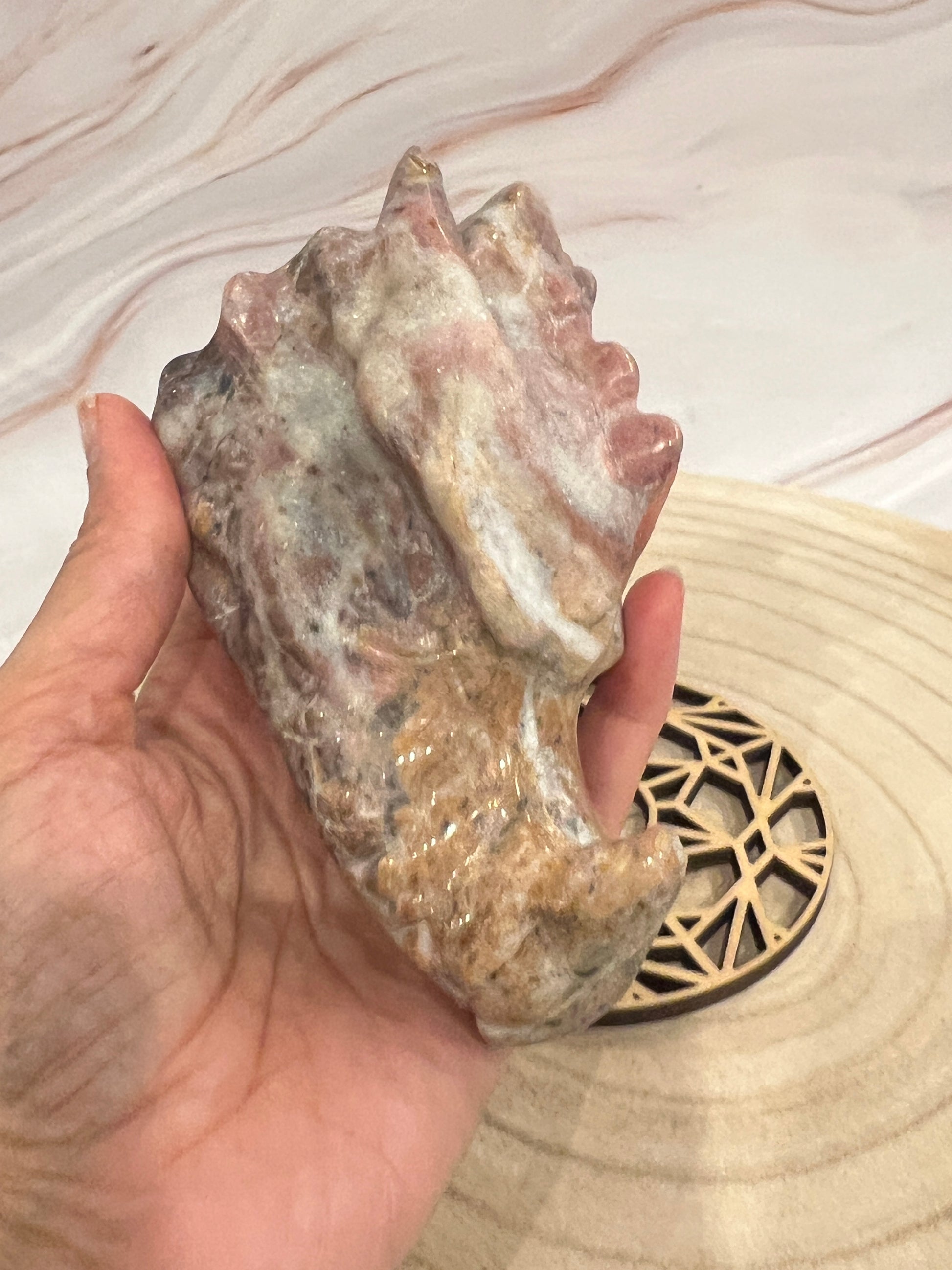 🔮 Ontdek de harmoniserende energie van deze handgemaakte Rhodoniet Drakenkop (11,5 cm)! Rhodoniet staat bekend als de steen van emotioneel evenwicht, zelfliefde en krachtig herstel. De prachtige roze en zwarte tinten symboliseren de balans tussen hart en bescherming, en de drakenvorm voegt extra moed en spirituele transformatie toe.