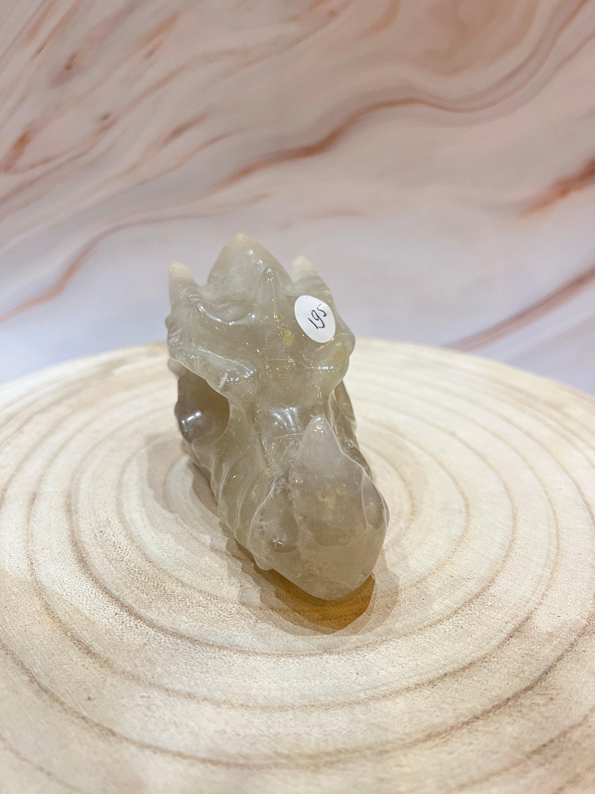 ✨ Eigenschappen: Unieke handgesneden drakenkop van rookkwarts, een krachtige steen voor bescherming en aarding.