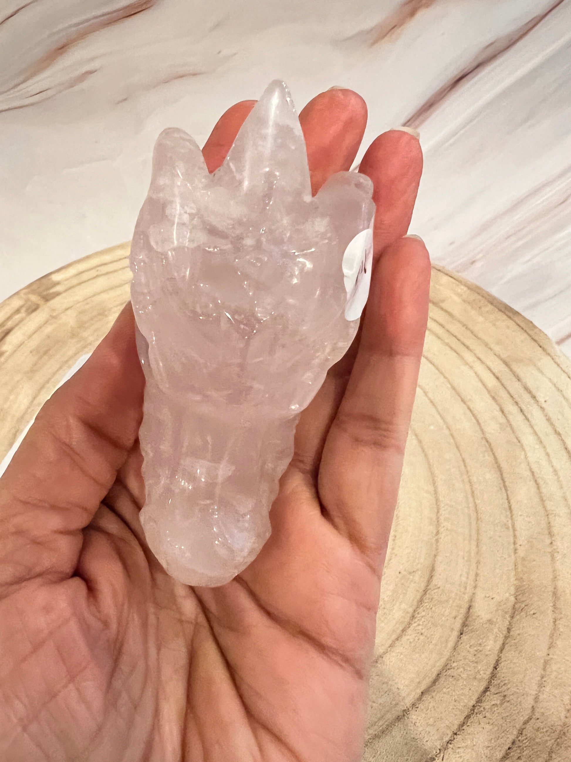 🔮 Omarm de liefdevolle en zachte energie van deze handgemaakte Rozenkwarts Drakenkop (8 cm)! Rozenkwarts staat bekend als de steen van onvoorwaardelijke liefde, emotionele heling en harmonie. De krachtige drakenvorm voegt hier een beschermend en transformerend element aan toe, waardoor deze edelsteen een perfect evenwicht biedt tussen liefde en innerlijke kracht.