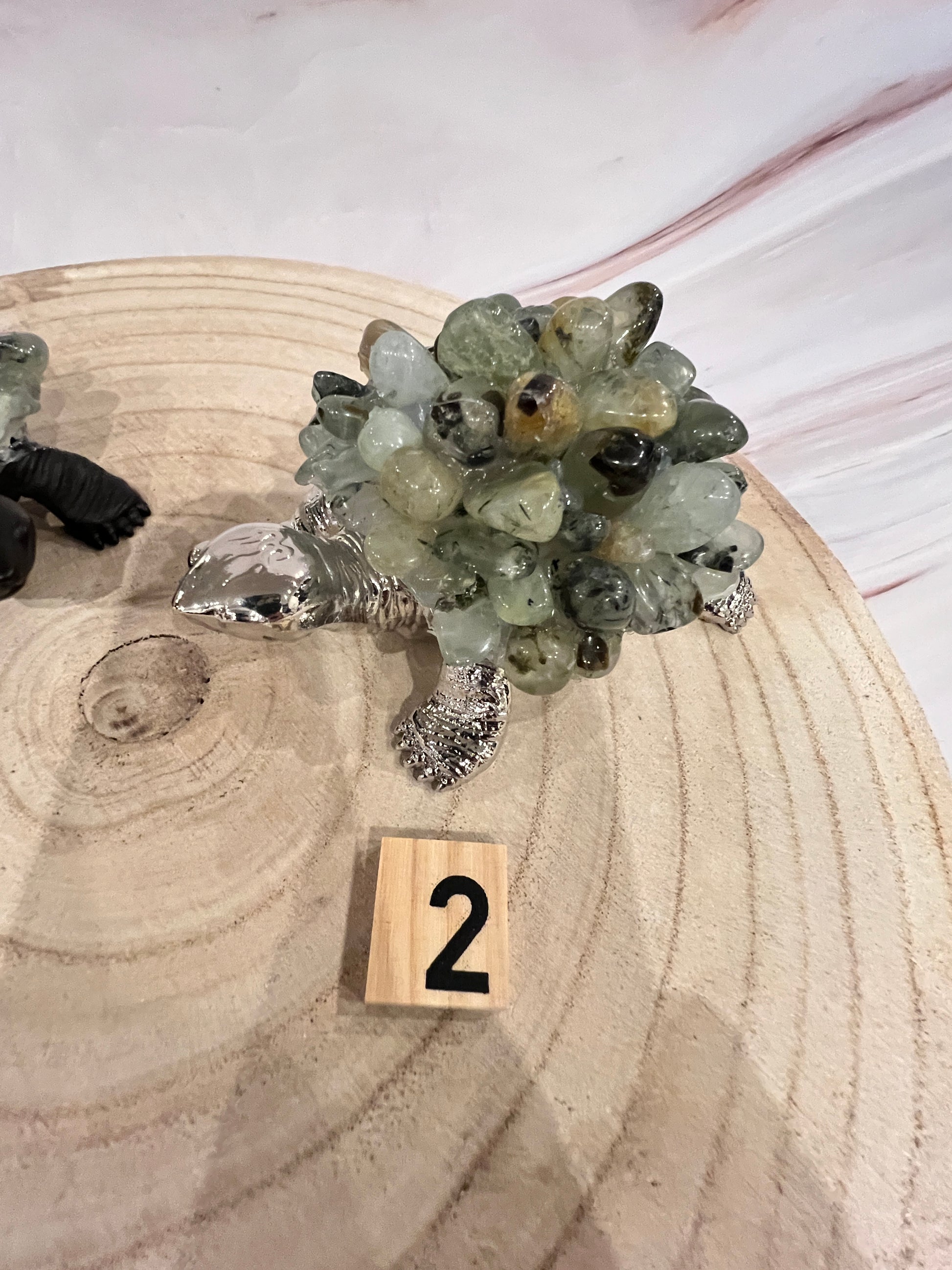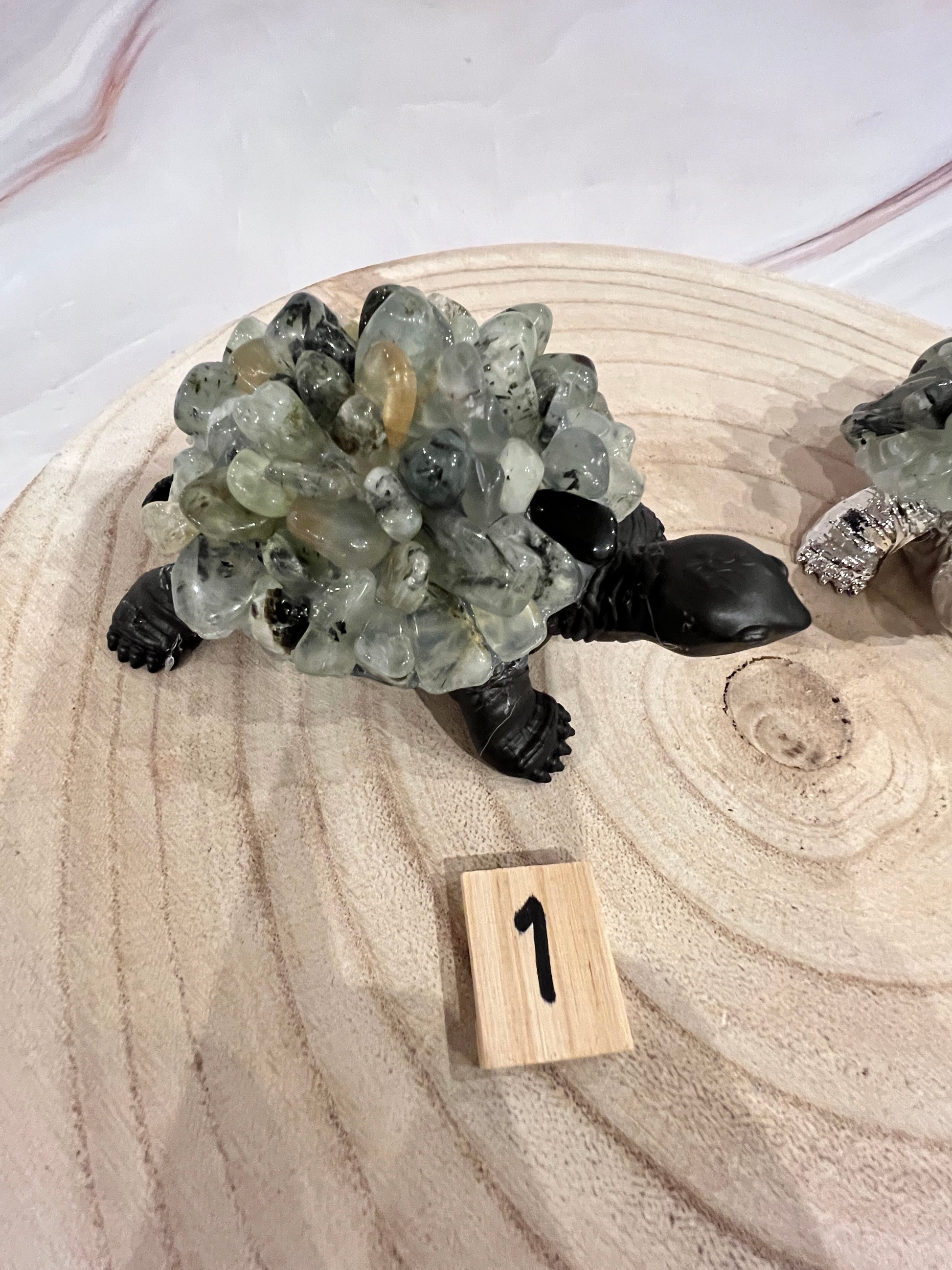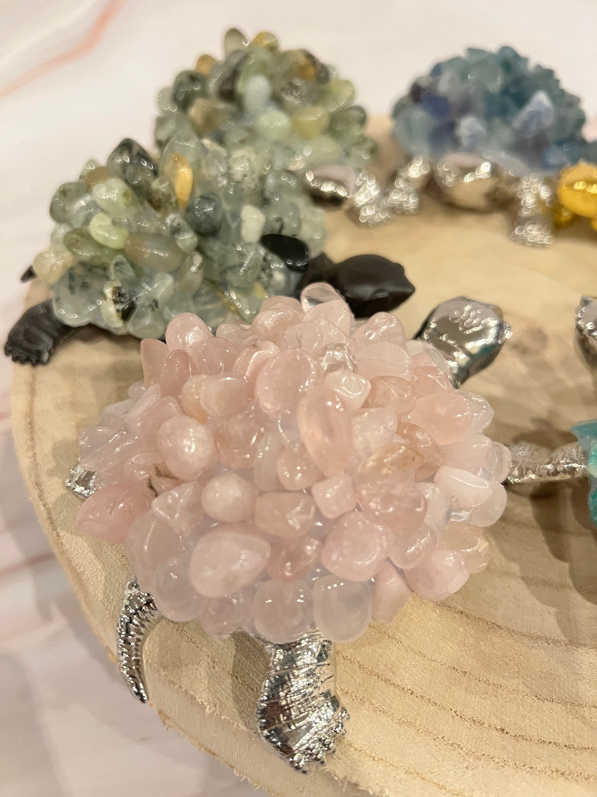 ✨ Eigenschappen: Unieke handgesneden schildpadden met ingelegde edelstenen op de rug. Symboliseren bescherming, geduld en stabiliteit. Elke steen heeft zijn eigen energetische kracht.