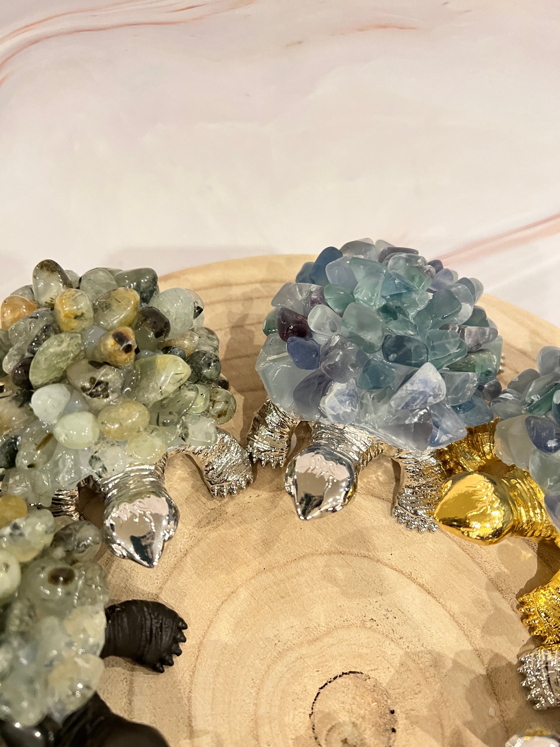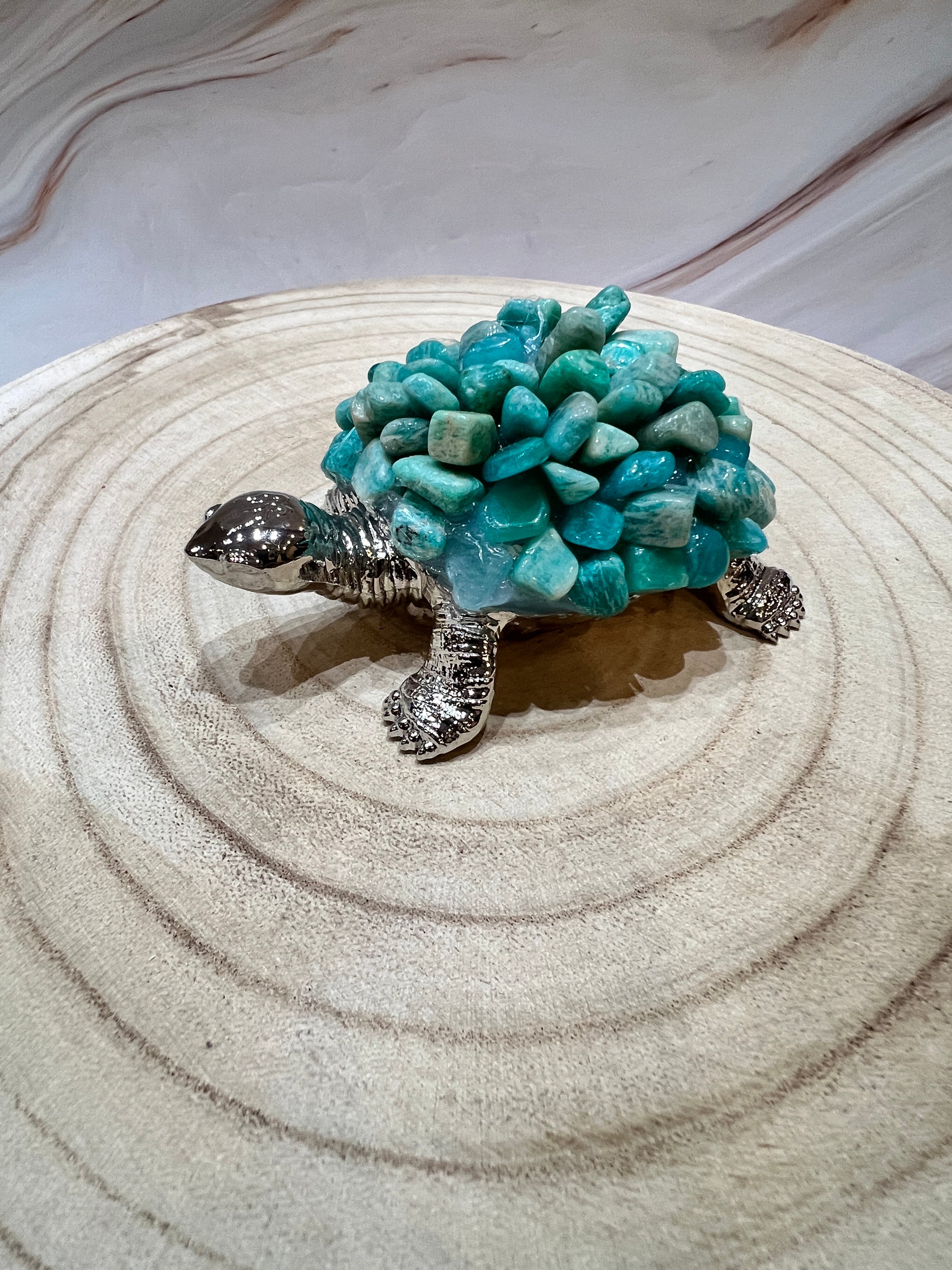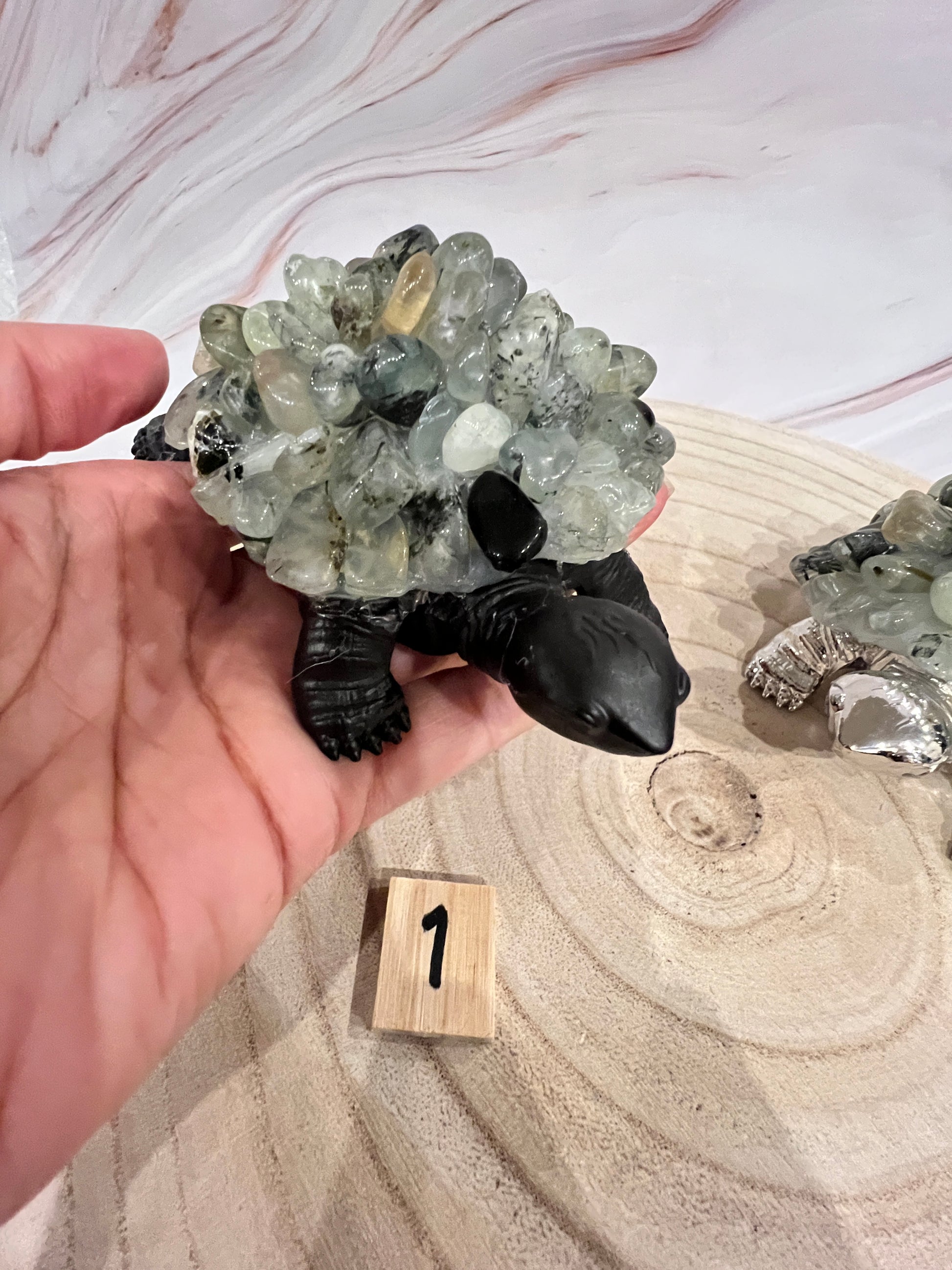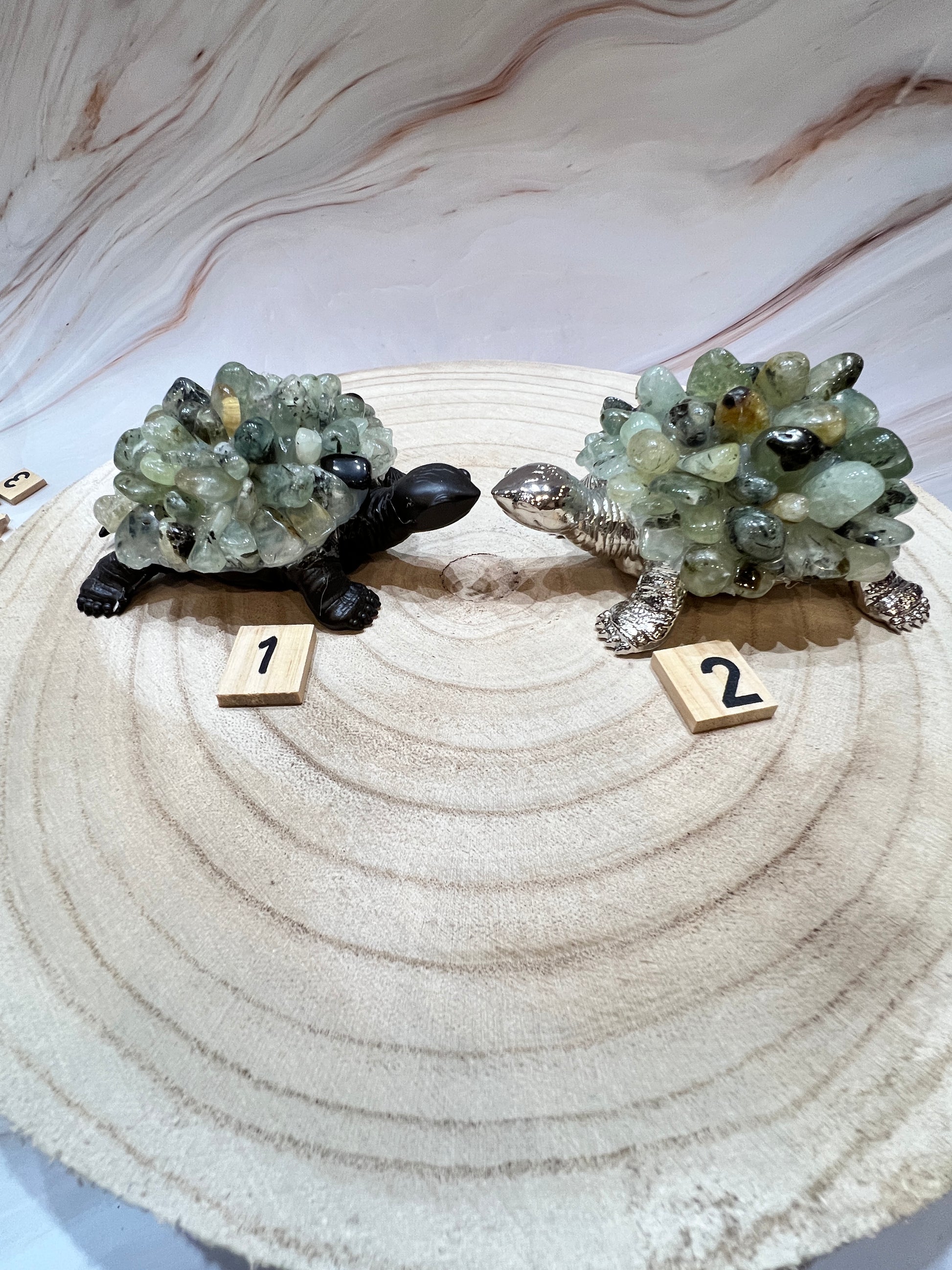 ✨ Eigenschappen: Unieke handgesneden schildpadden met ingelegde edelstenen op de rug. Symboliseren bescherming, geduld en stabiliteit. Elke steen heeft zijn eigen energetische kracht.