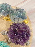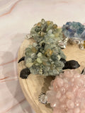 schildpad met Prehniet, Rozenkwarts, Amethist, Groene Fluoriet, Amazoniet