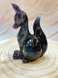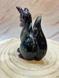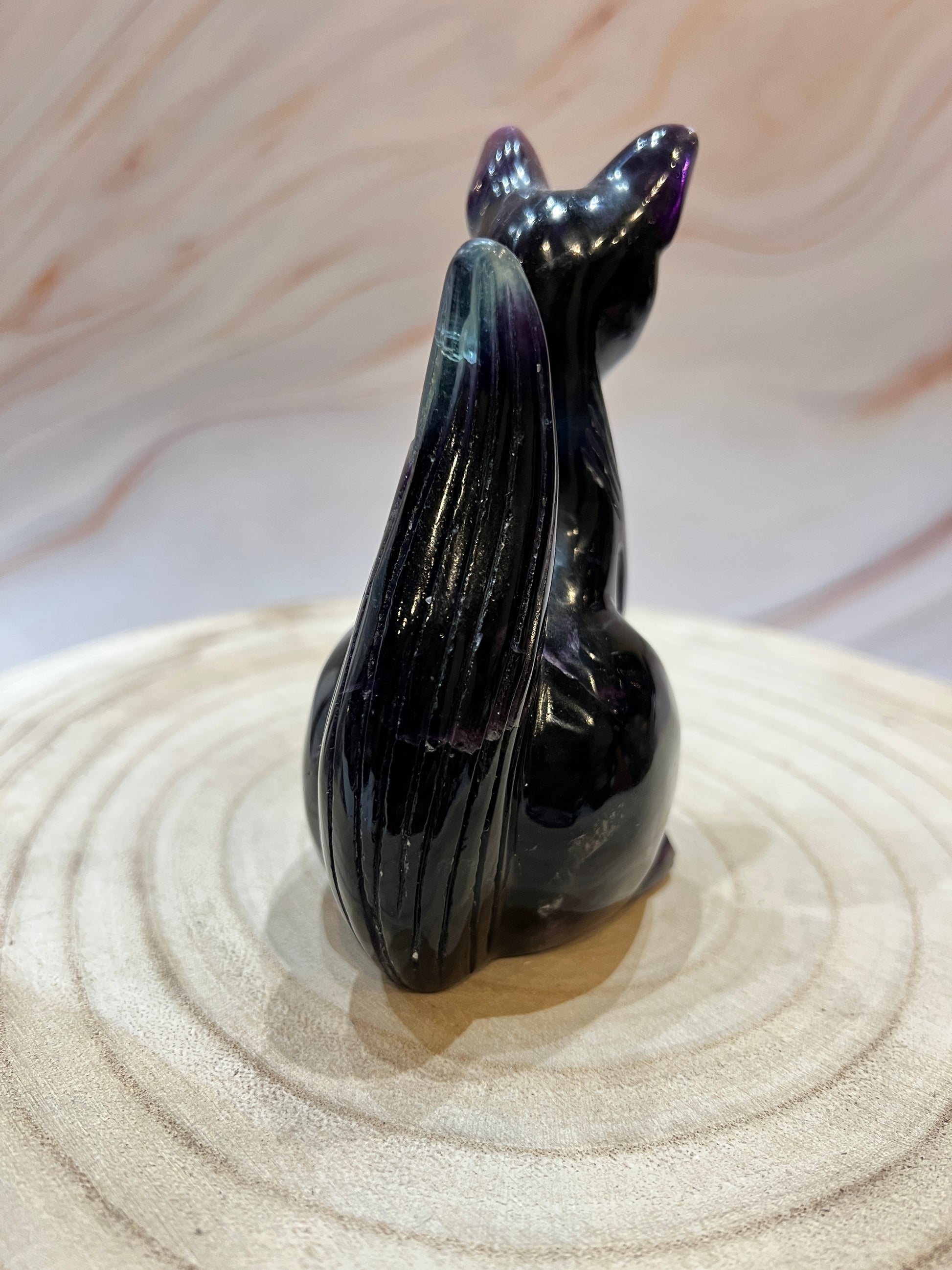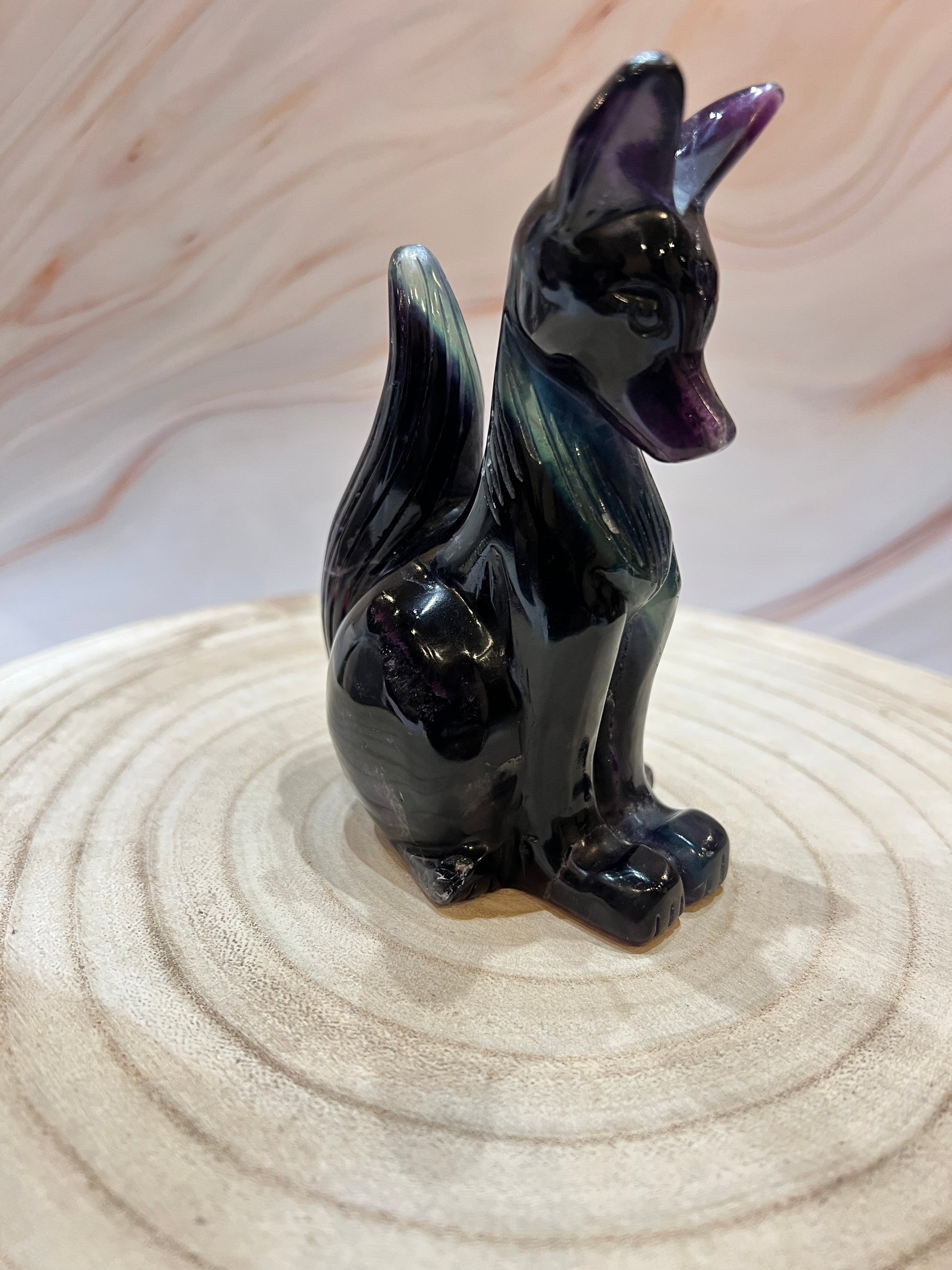 ✨ Eigenschappen: Mystieke vos van donker fluoriet met prachtige paarse en groene tinten. Fluoriet staat bekend om zijn beschermende en zuiverende energie.