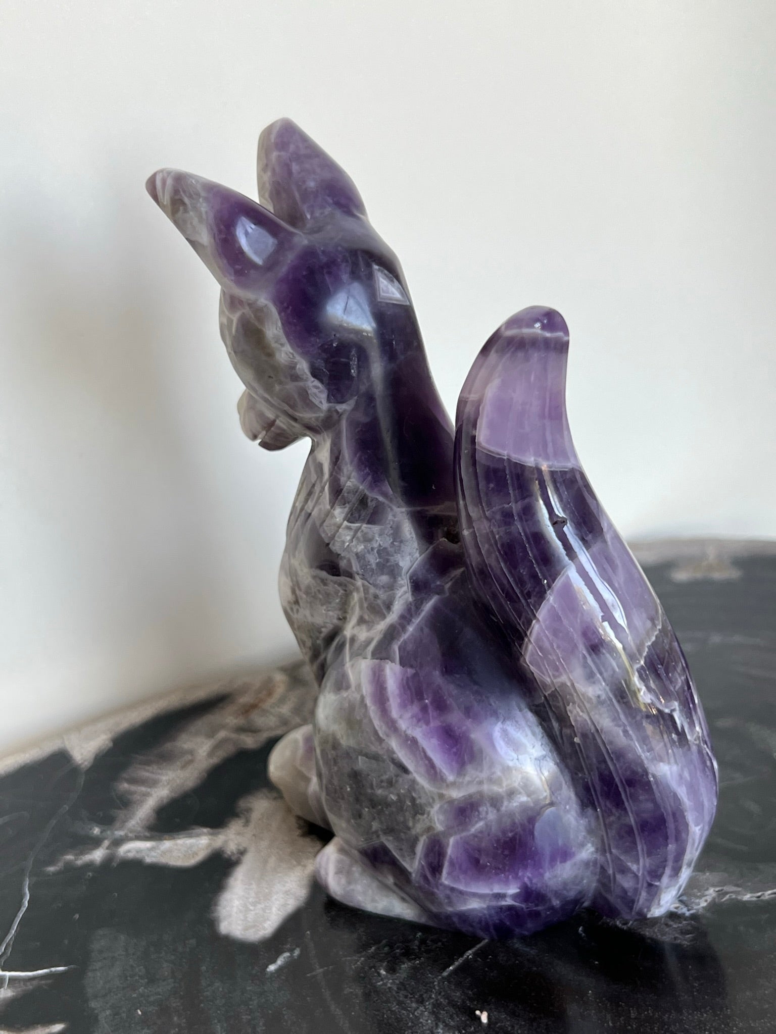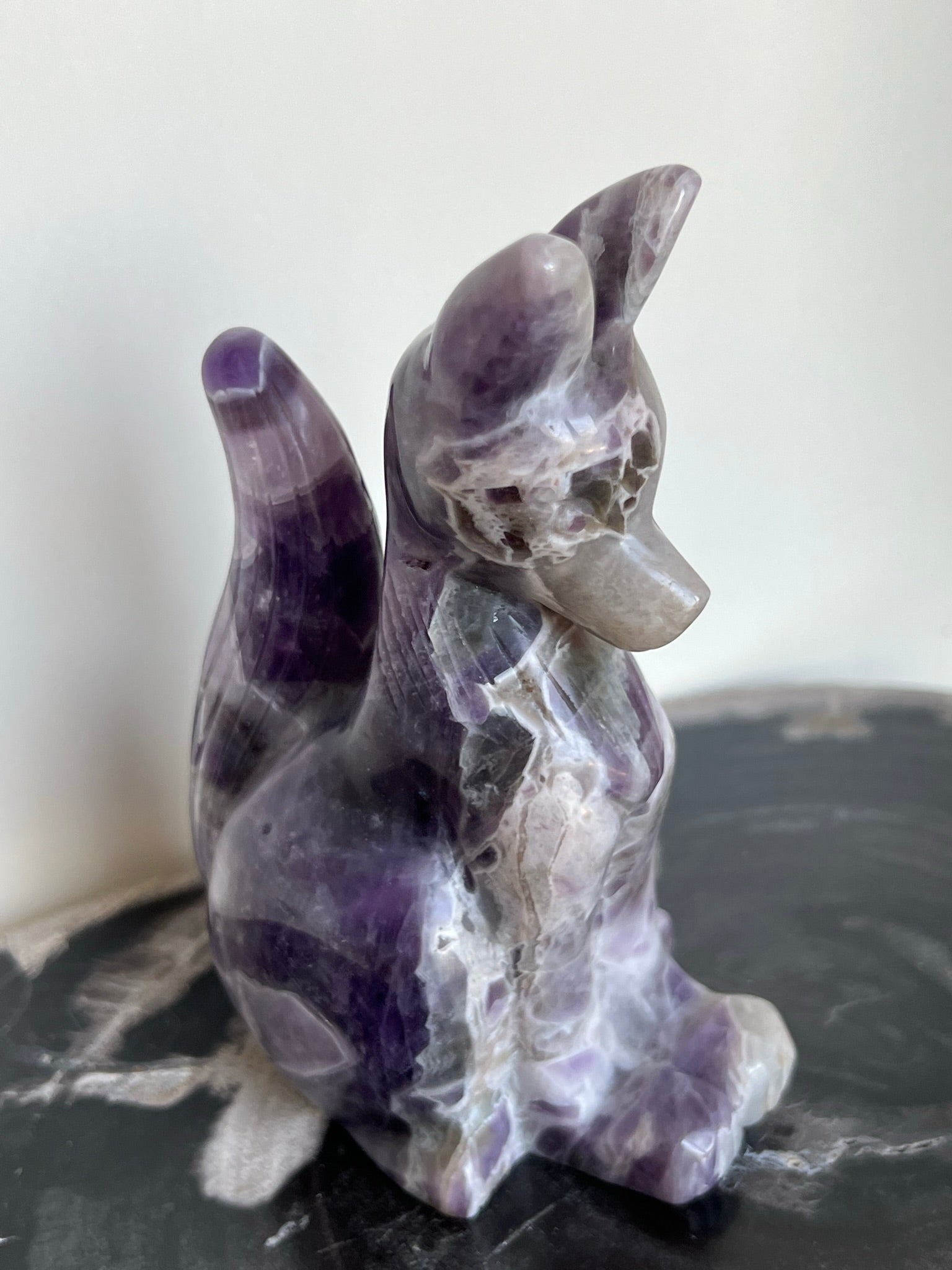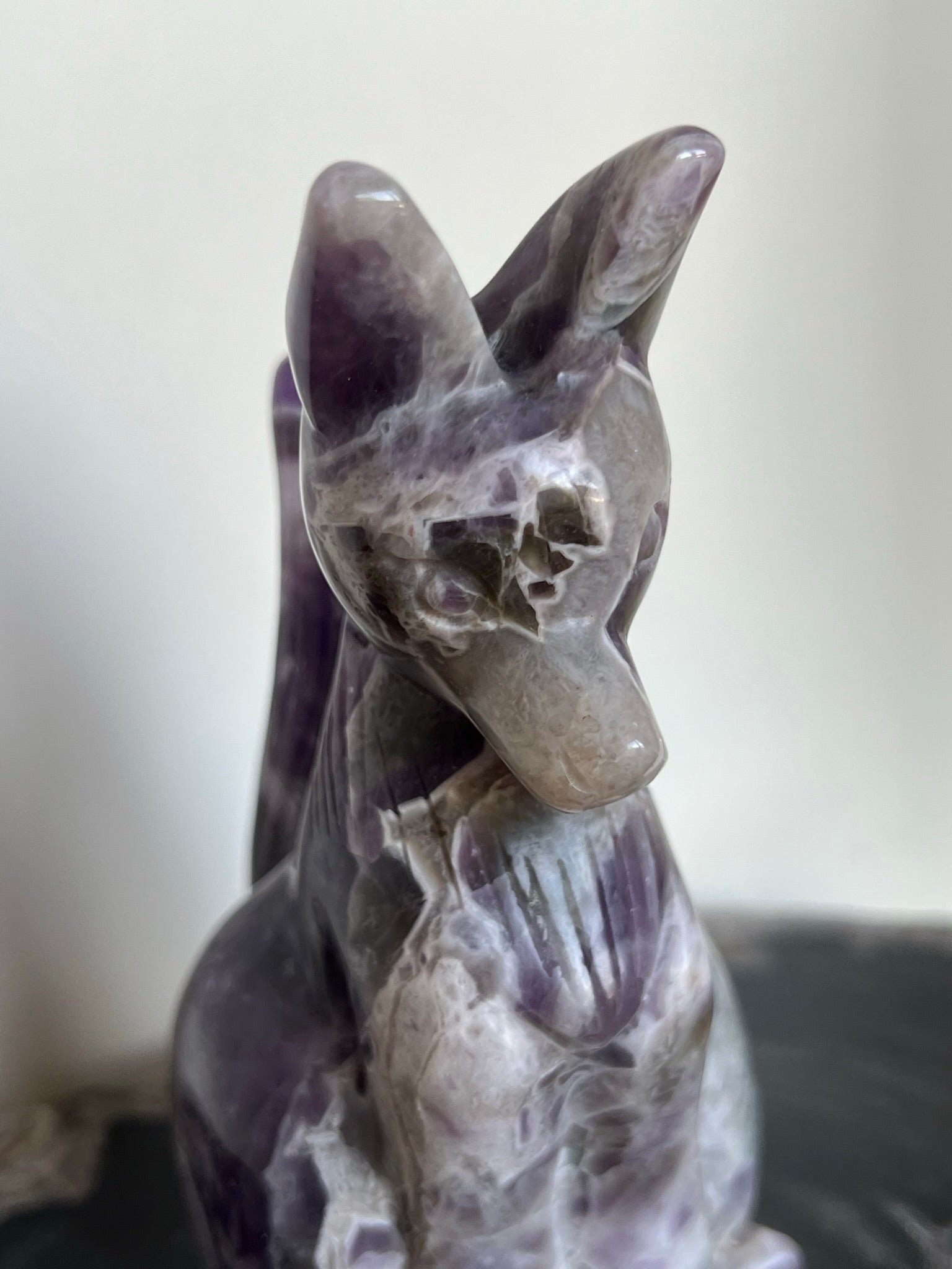 * Chakra: Deze Dreamy Amethist Vos werkt voornamelijk op het voorhoofdchakra (derde oog) en het kruinchakra, die beide verbonden zijn met intuïtie en spirituele groei.
