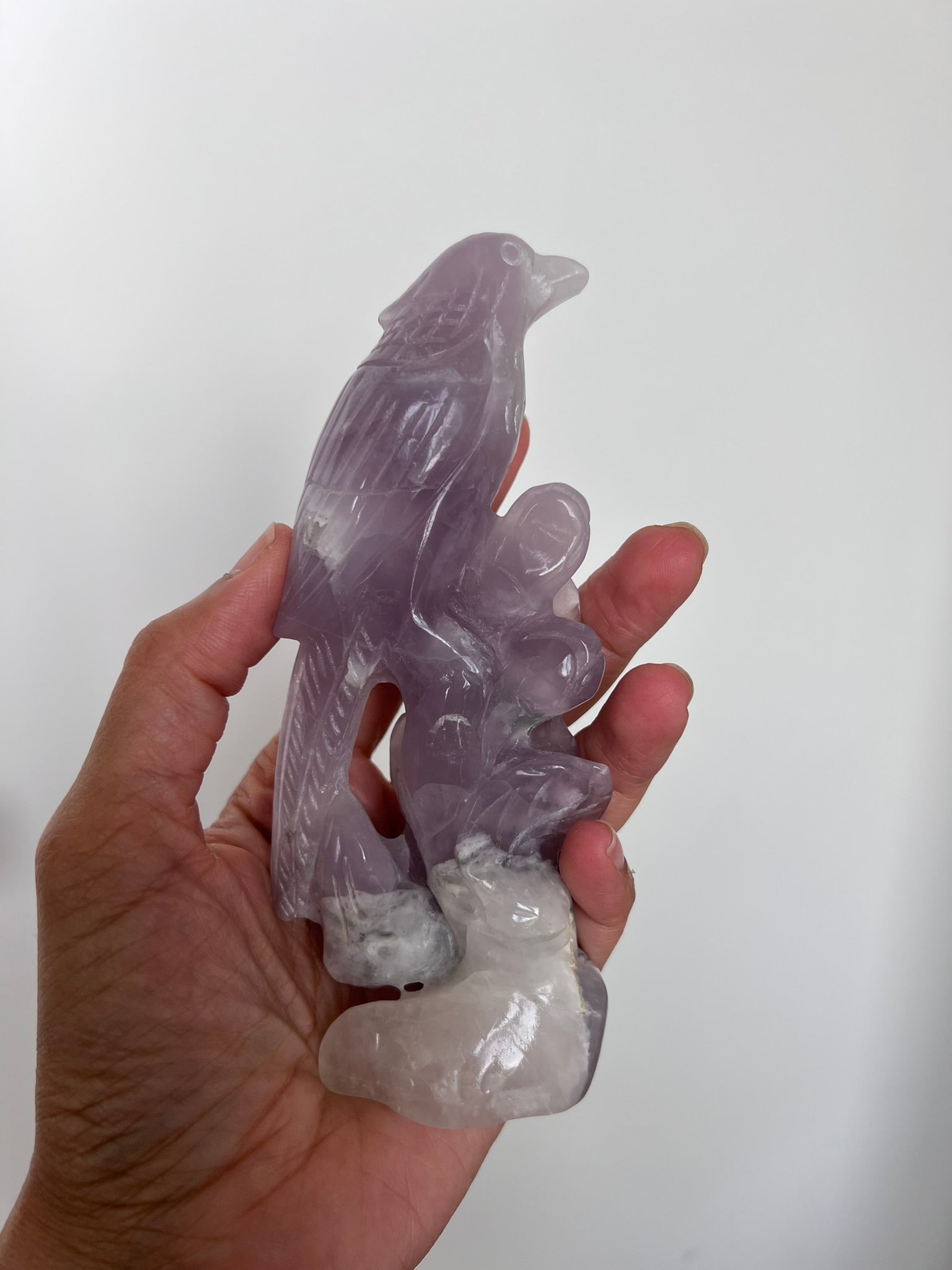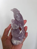 * Chakra: Deze Fluoriet Vogelbeeld steen werkt voornamelijk op het voorhoofdchakra (derde oog) en het hartchakra, waardoor het de intuïtie en emotionele balans kan bevorderen.