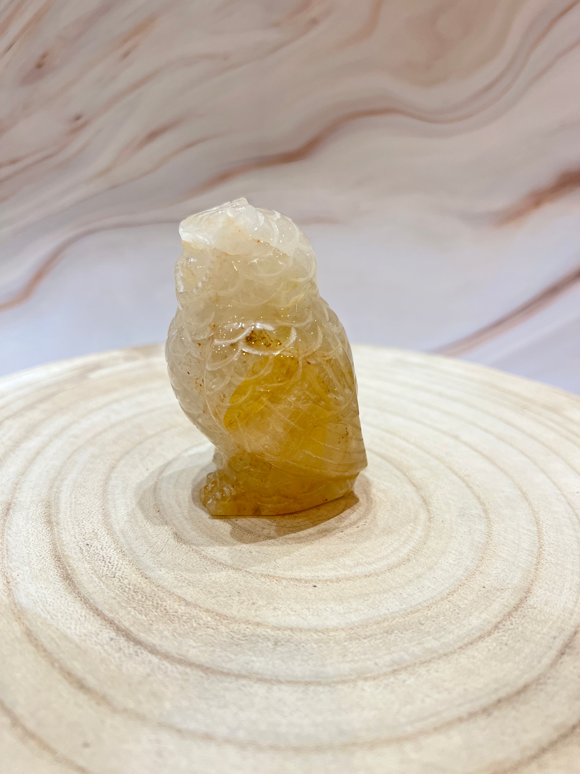 ✨ Eigenschappen: Krachtige uil van Golden Healer kwarts, een steen van heling, spirituele groei en energiezuivering.