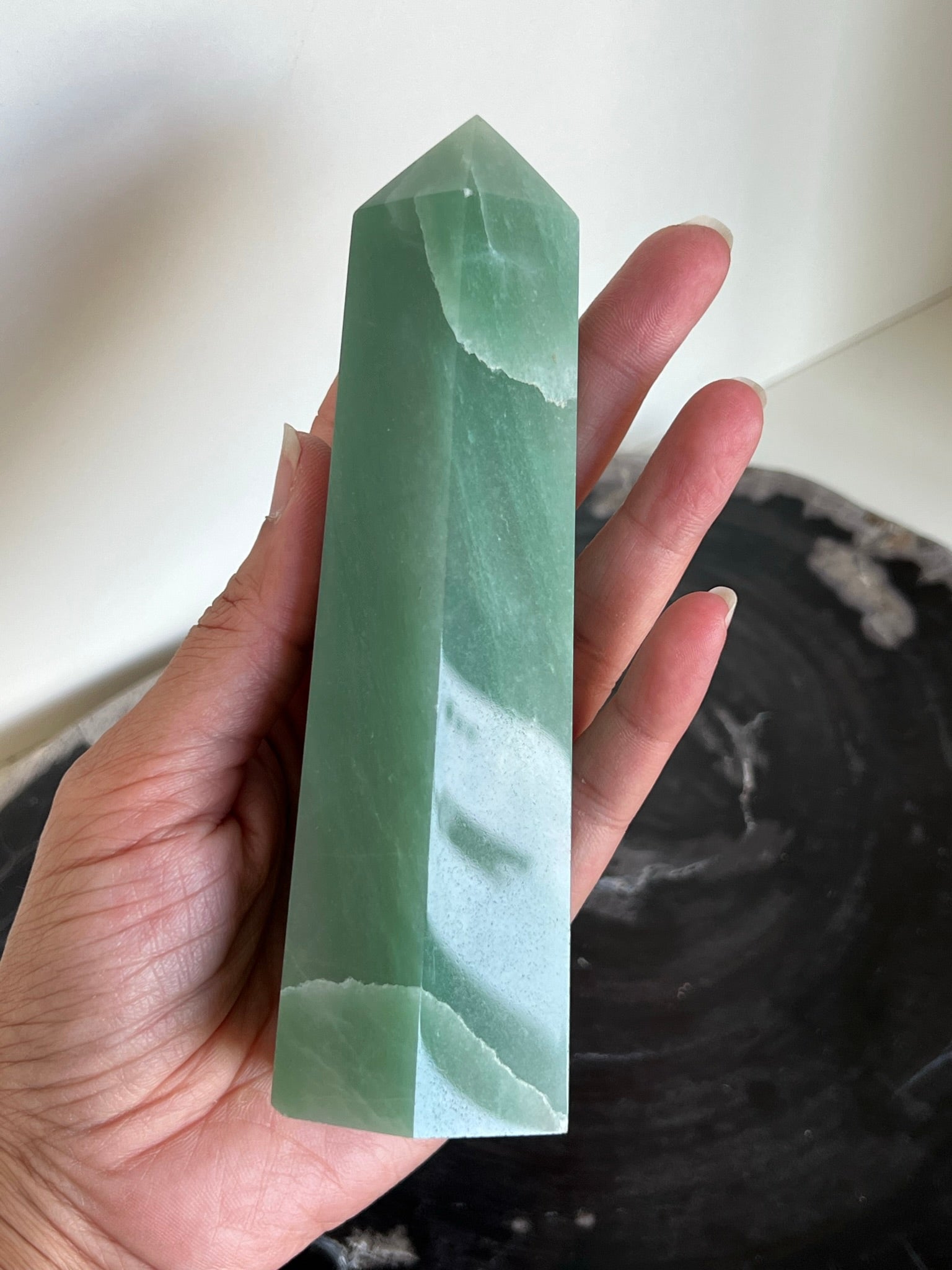* Spiritueel: De Groene Aventurijn Punt staat bekend om zijn energie van voorspoed en groei. Het kan helpen bij het bevorderen van welvaart, geluk en positieve veranderingen. Groene Aventurijn stimuleert ook zelfvertrouwen en optimisme.