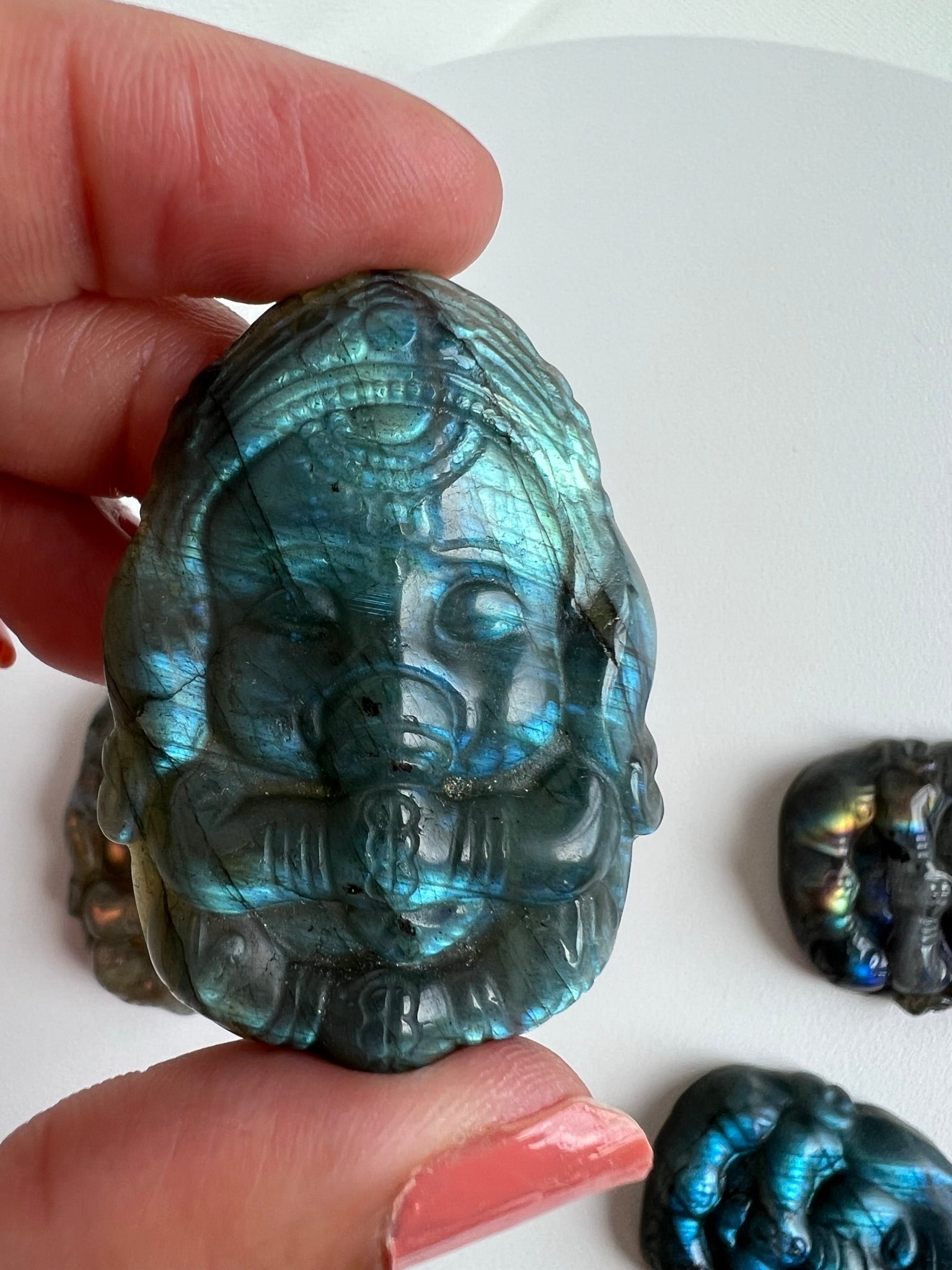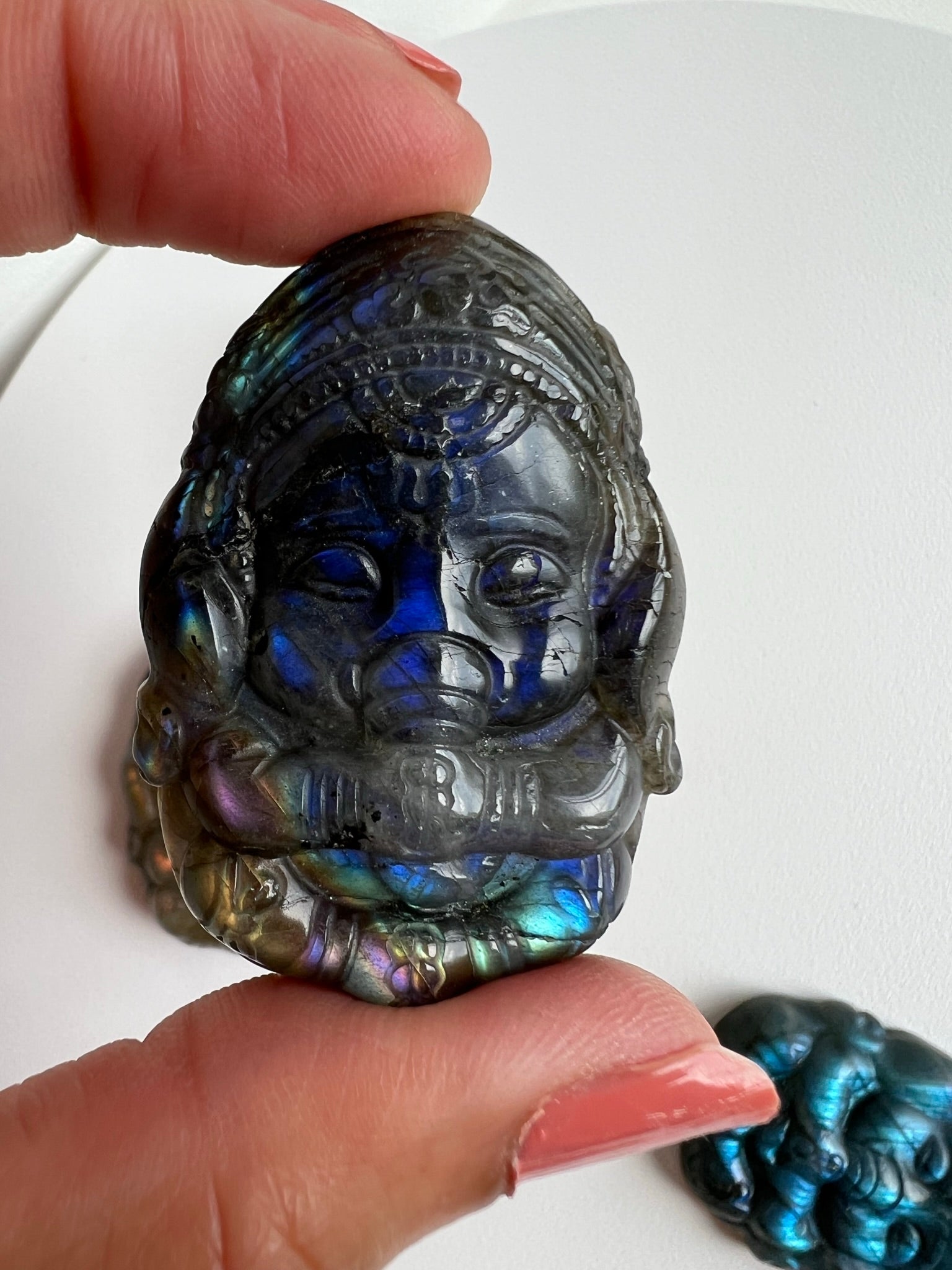 * Spiritueel: Labradoriet is een steen die bekend staat om zijn beschermende en mystieke eigenschappen. Deze Ganesha hanger met labradoriet kan helpen bij het afweren van negatieve energieën en het bevorderen van spirituele groei. Het opent het derde oog en vergroot intuïtie, waardoor je dieper inzicht kunt krijgen in jezelf en de wereld om je heen.