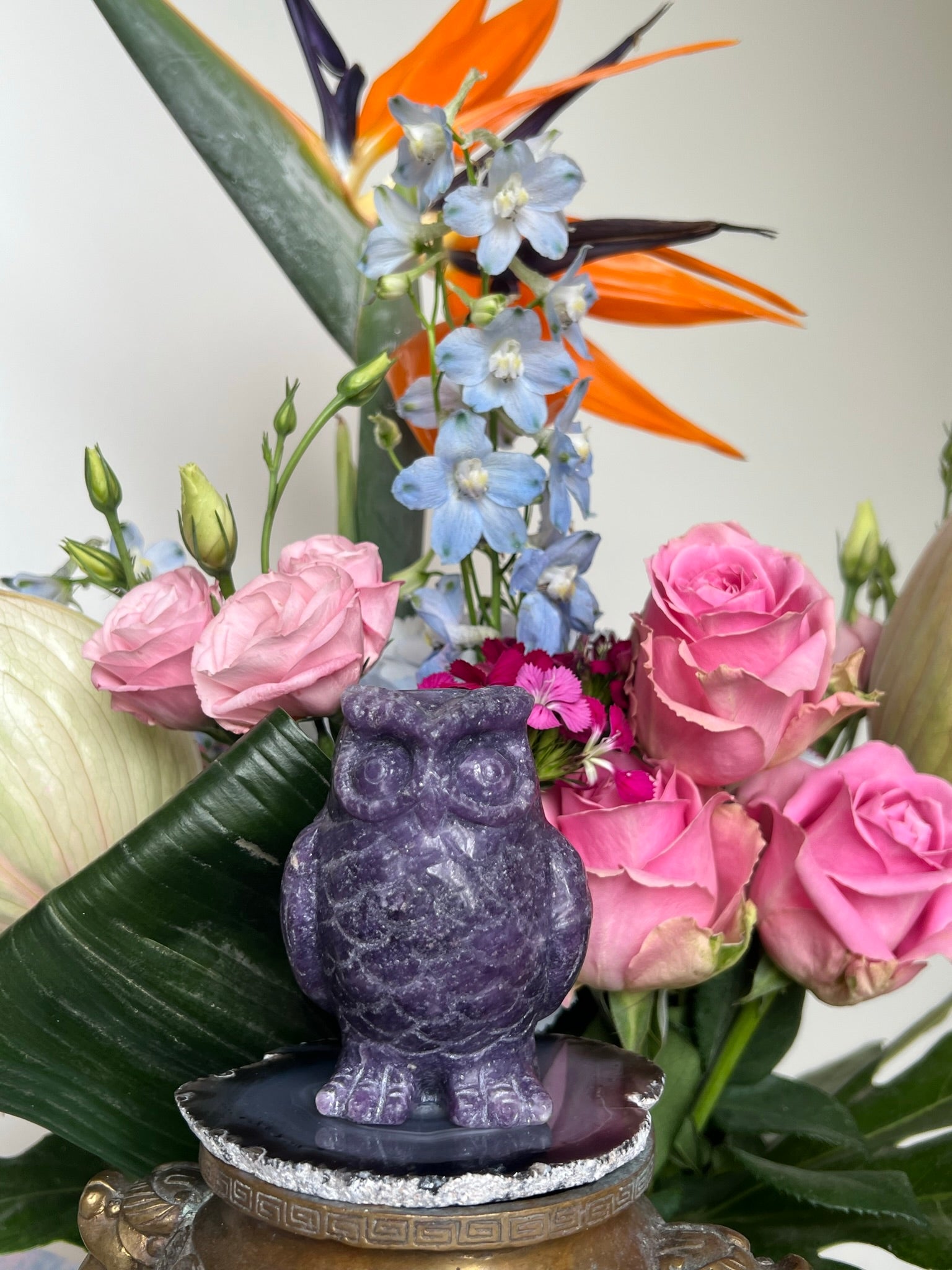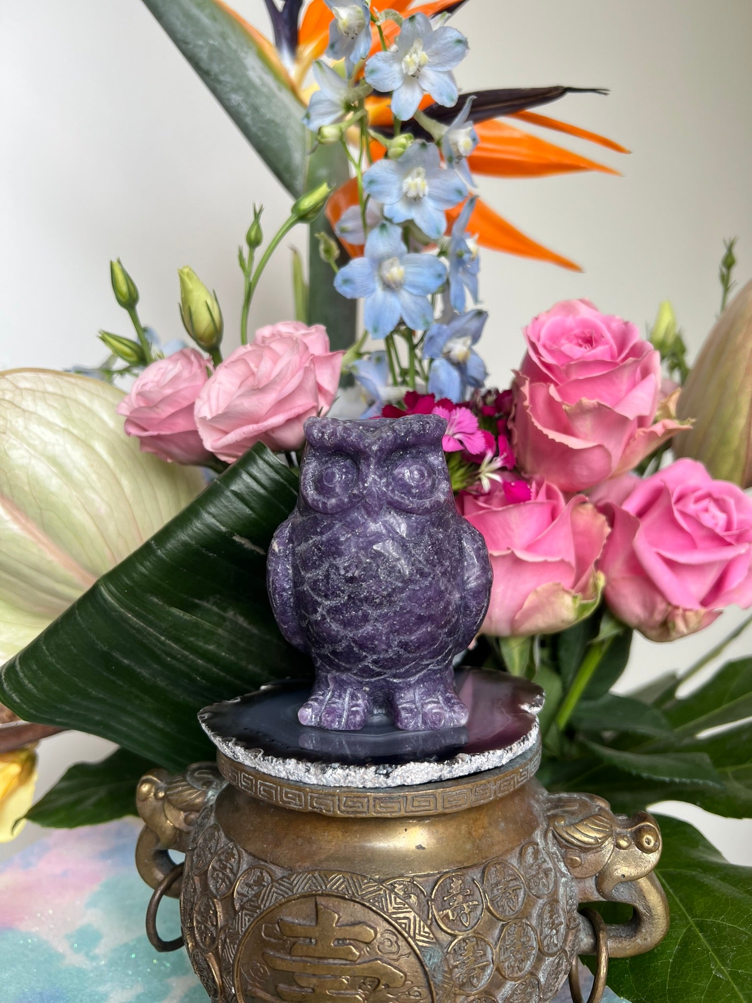 * Chakra: Deze Lepidoliet Uilen werken voornamelijk op het hartchakra en het voorhoofdchakra (derde oog), die respectievelijk gerelateerd zijn aan liefde en intuïtie.