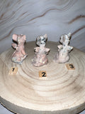 ✨ Eigenschappen: Handgesneden draakje van Plum Blossom Jade, een unieke jadevariant met roze en rode insluitsels. Krachtige beschermer en geluksbrenger.