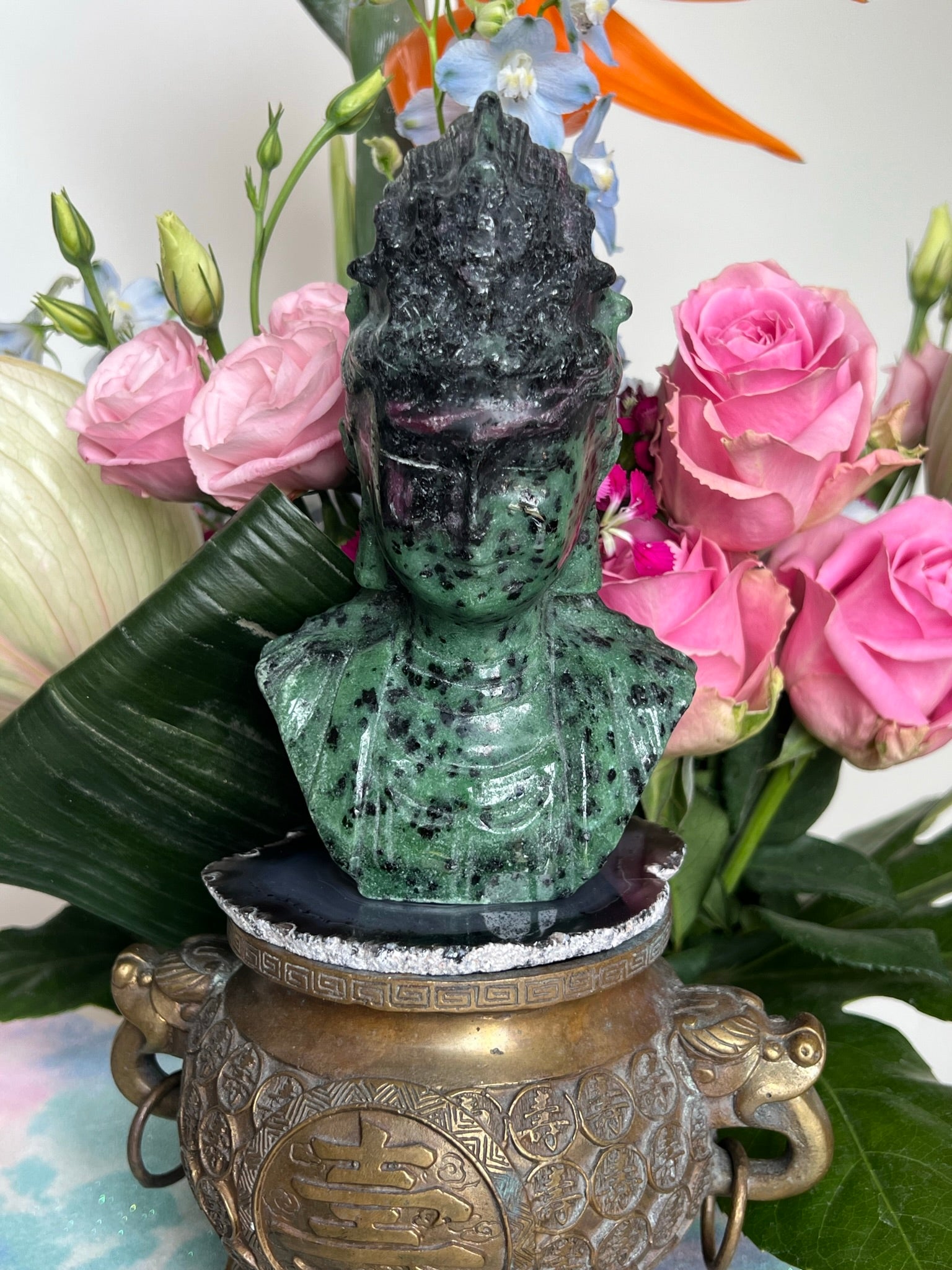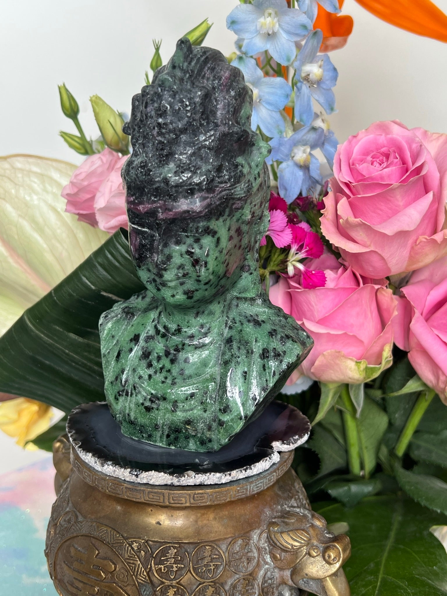 * Spiritueel: Robijn in Zoisiet is een steen die zowel het hartchakra als het kruinchakra activeert. Deze Godin kan helpen bij het bevorderen van liefdevolle compassie, spirituele groei en het aantrekken van positieve energie.