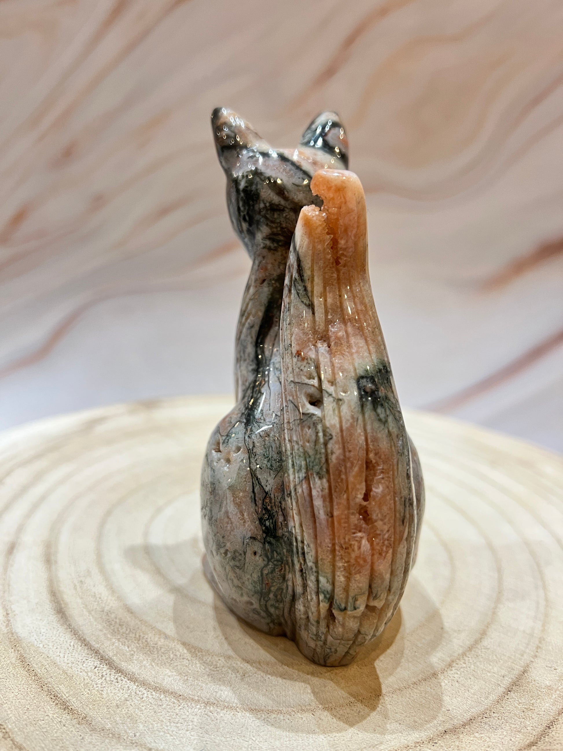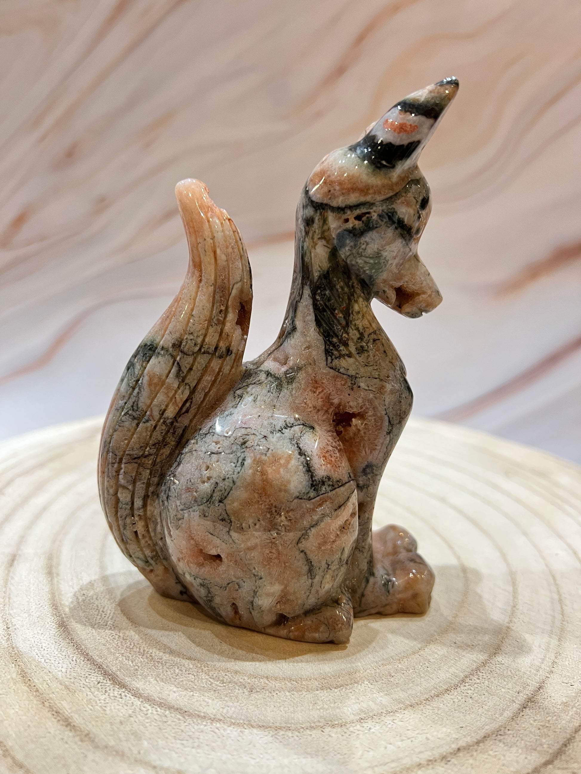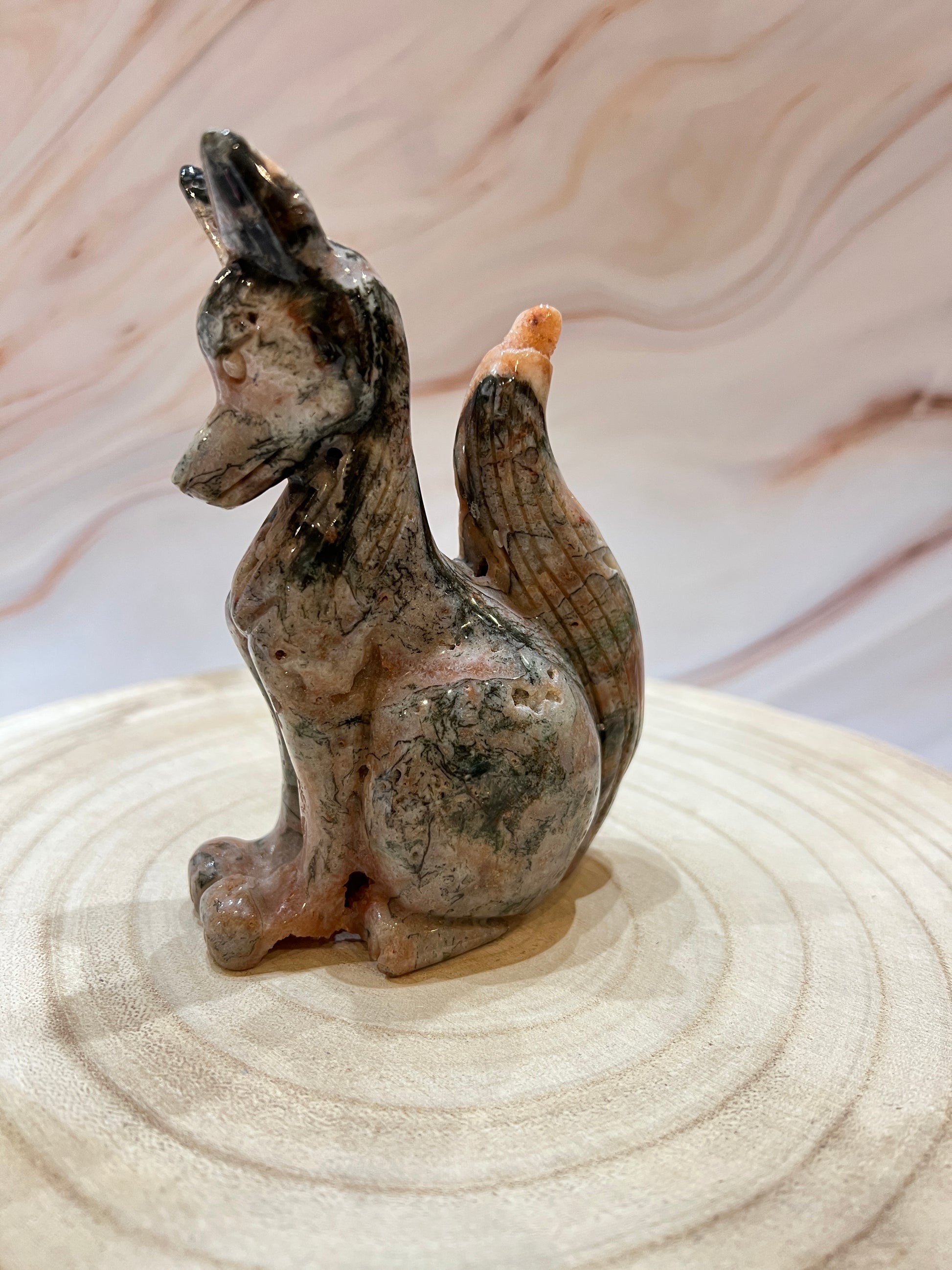 ✨ Eigenschappen: Prachtige vos van rode mosagaat, een steen van kracht, bescherming en diepe aardse verbinding.