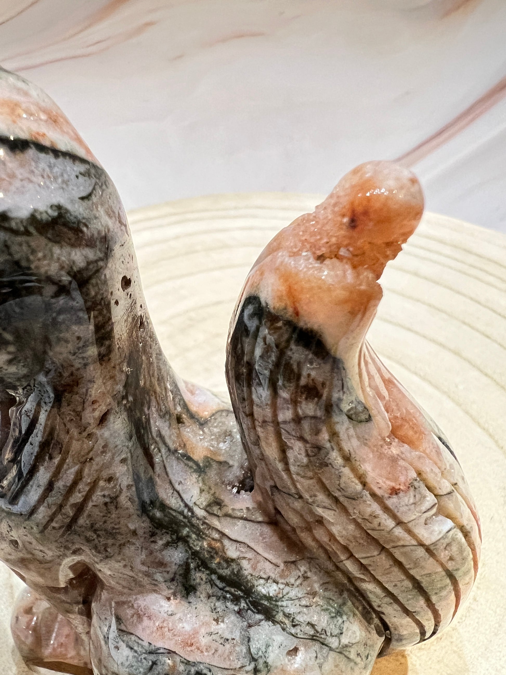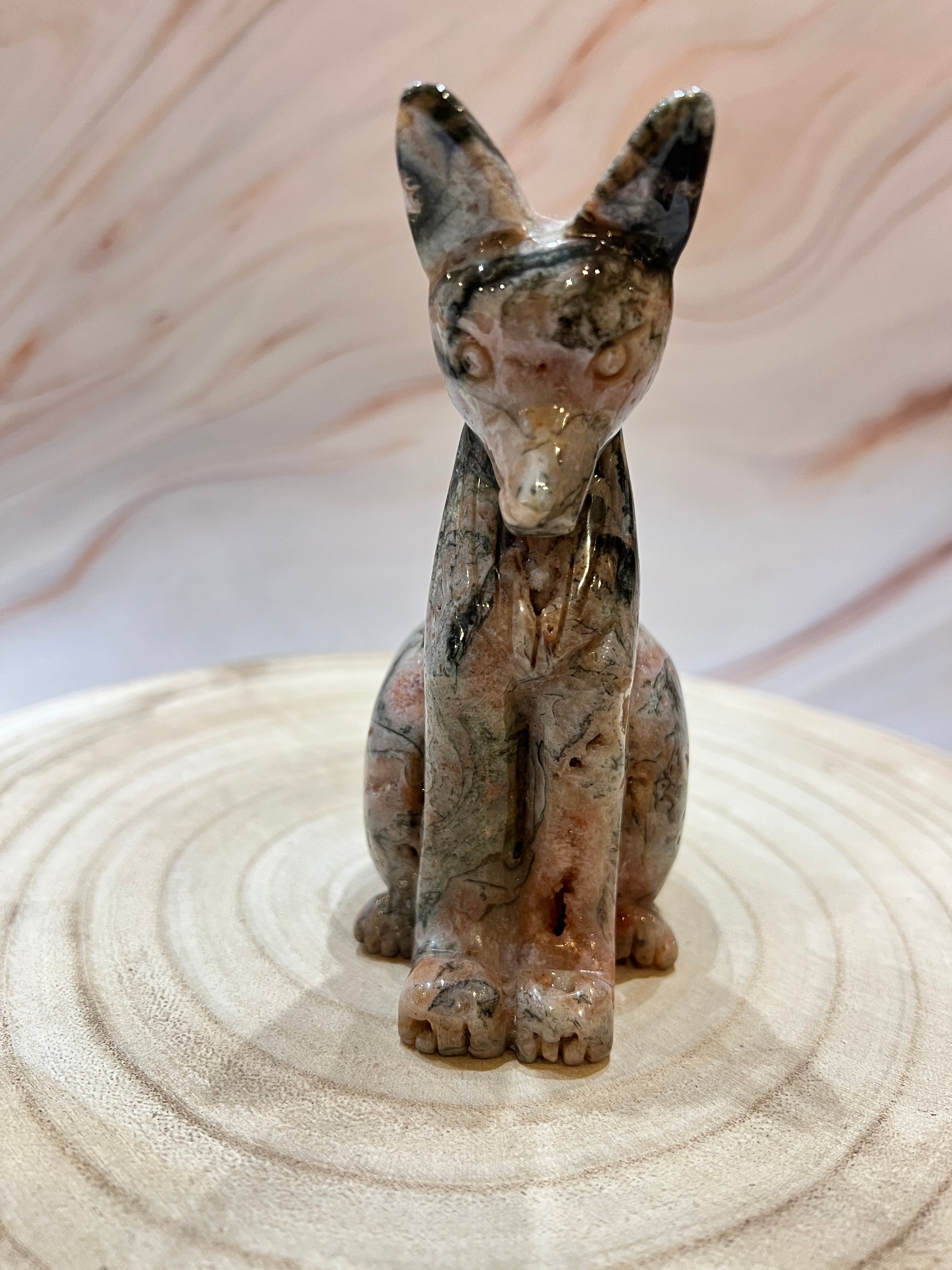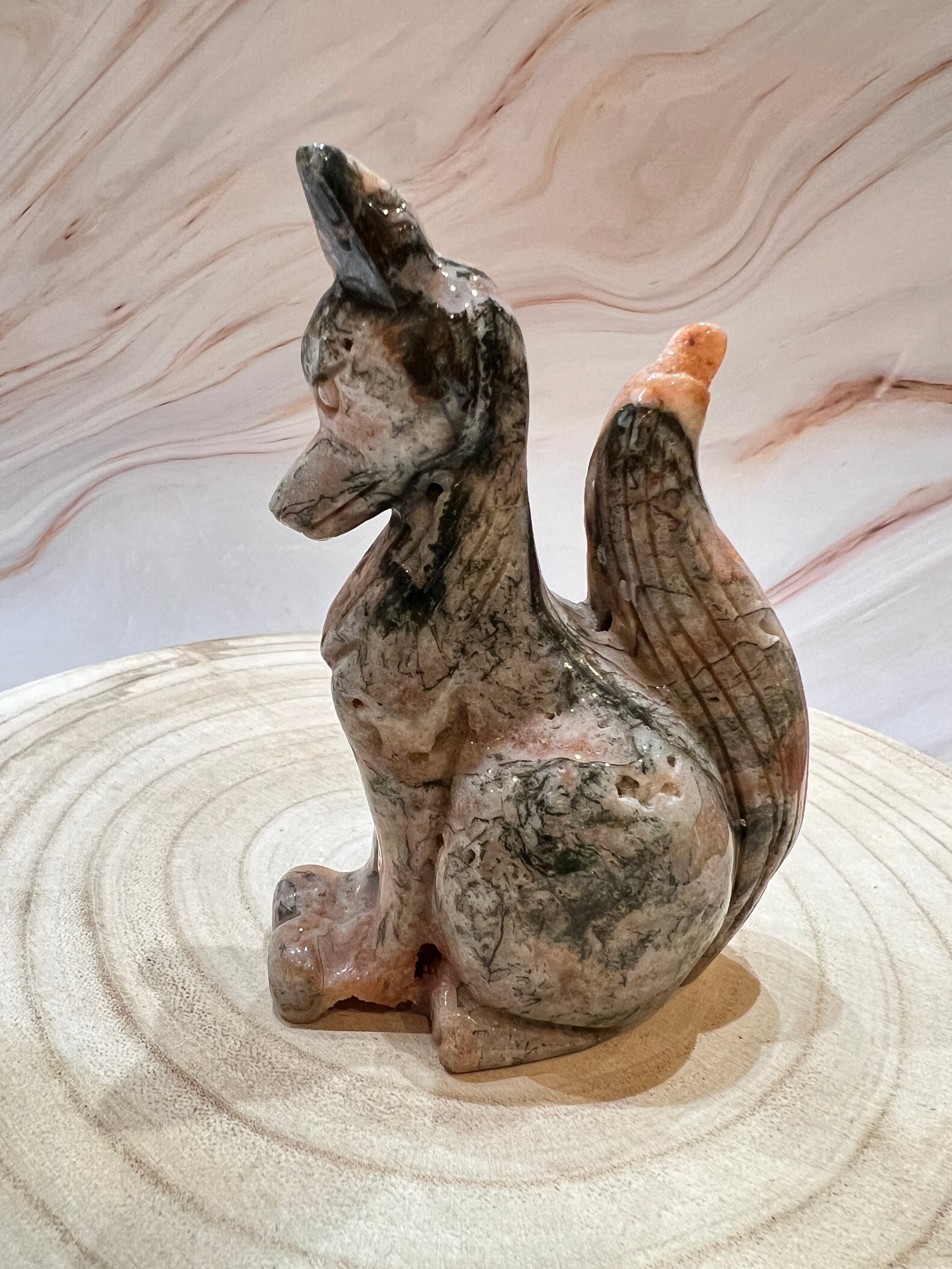 ✨ Eigenschappen: Prachtige vos van rode mosagaat, een steen van kracht, bescherming en diepe aardse verbinding.