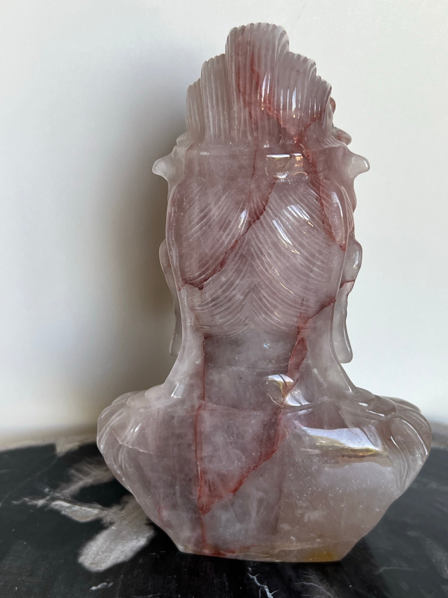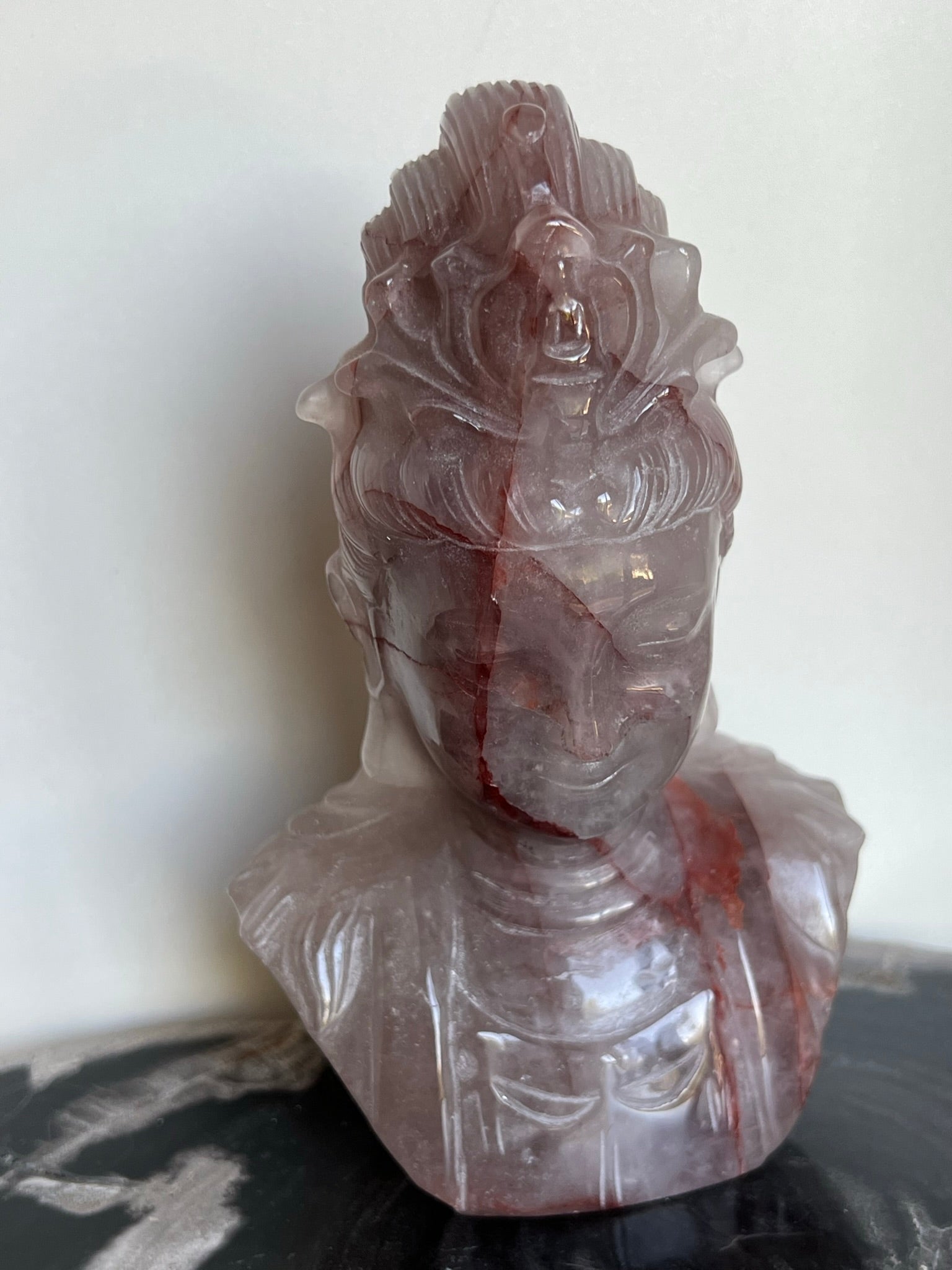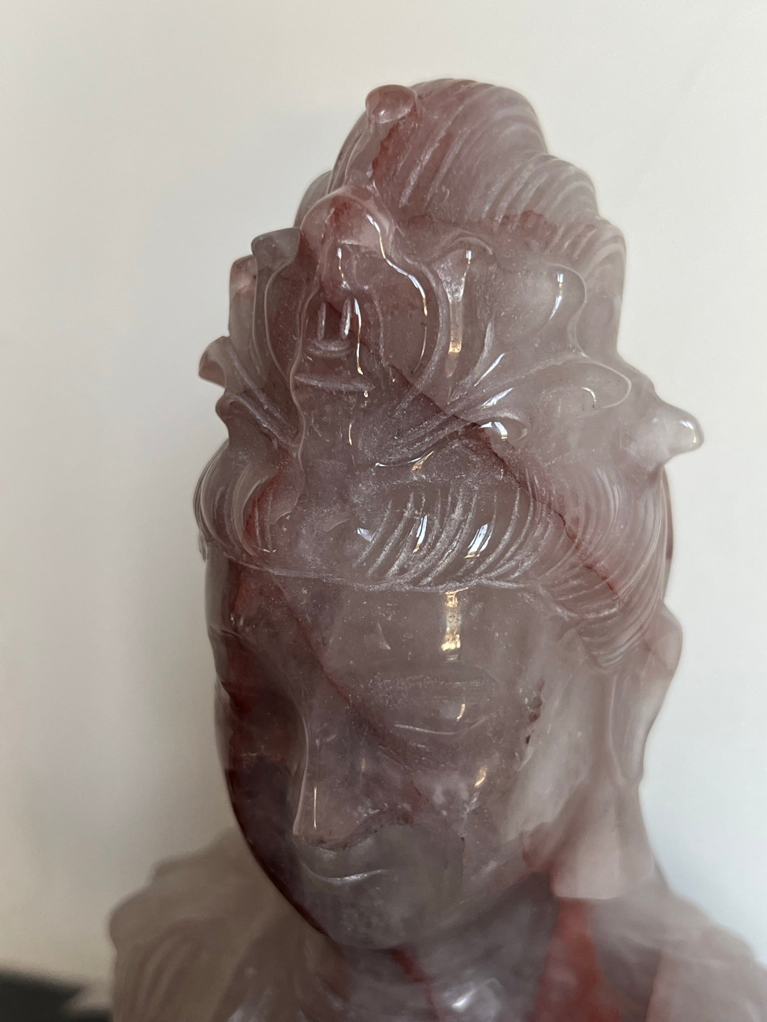 De Guan Yin Godin in Rode Vuurkwarts Hematoid is niet alleen een prachtige decoratieve aanvulling op je ruimte, maar ook een krachtig symbool van compassie en kracht. Laat dit kunstwerk je herinneren aan de kracht van mededogen en vastberadenheid terwijl je je spirituele reis voortzet.