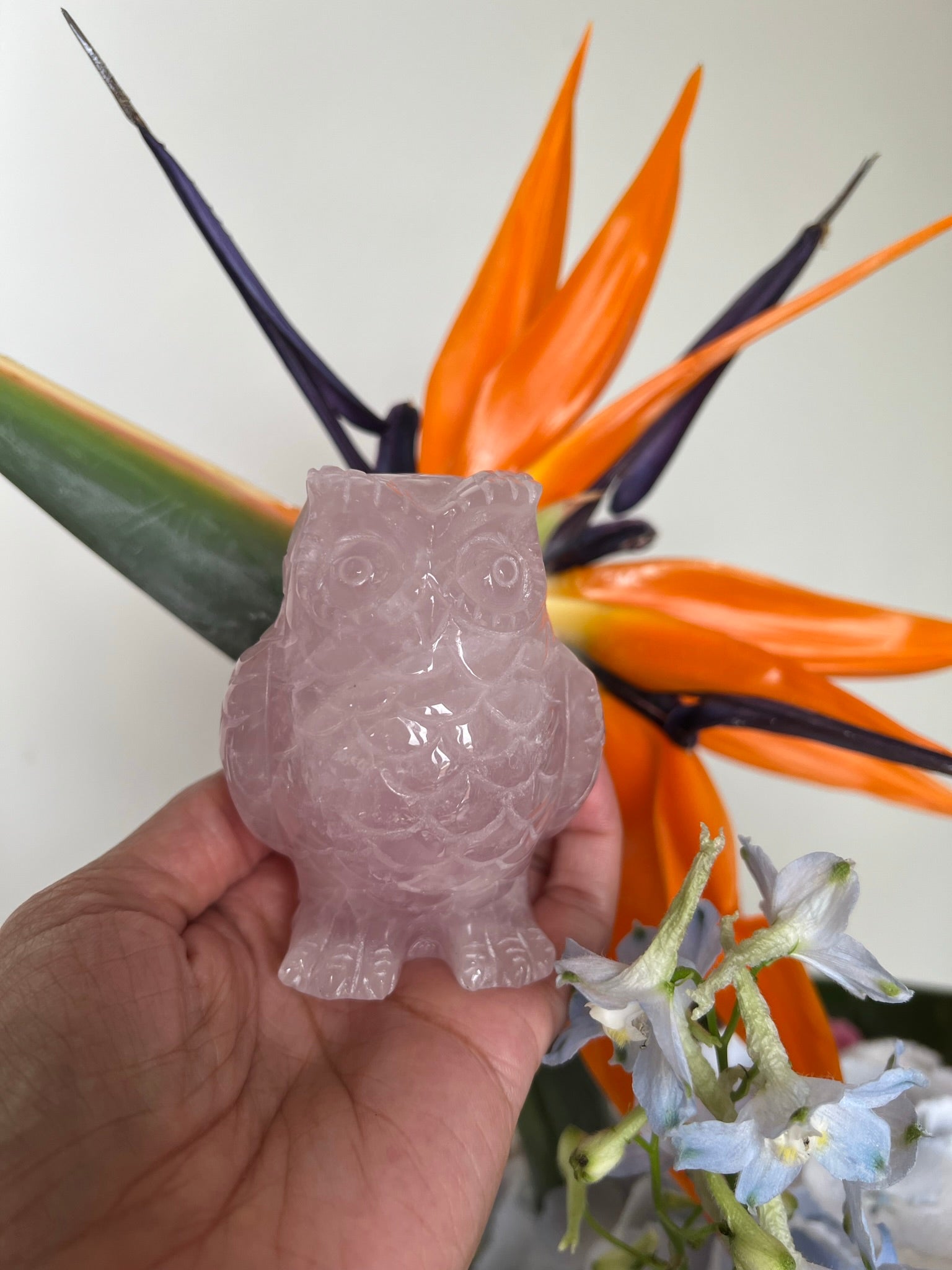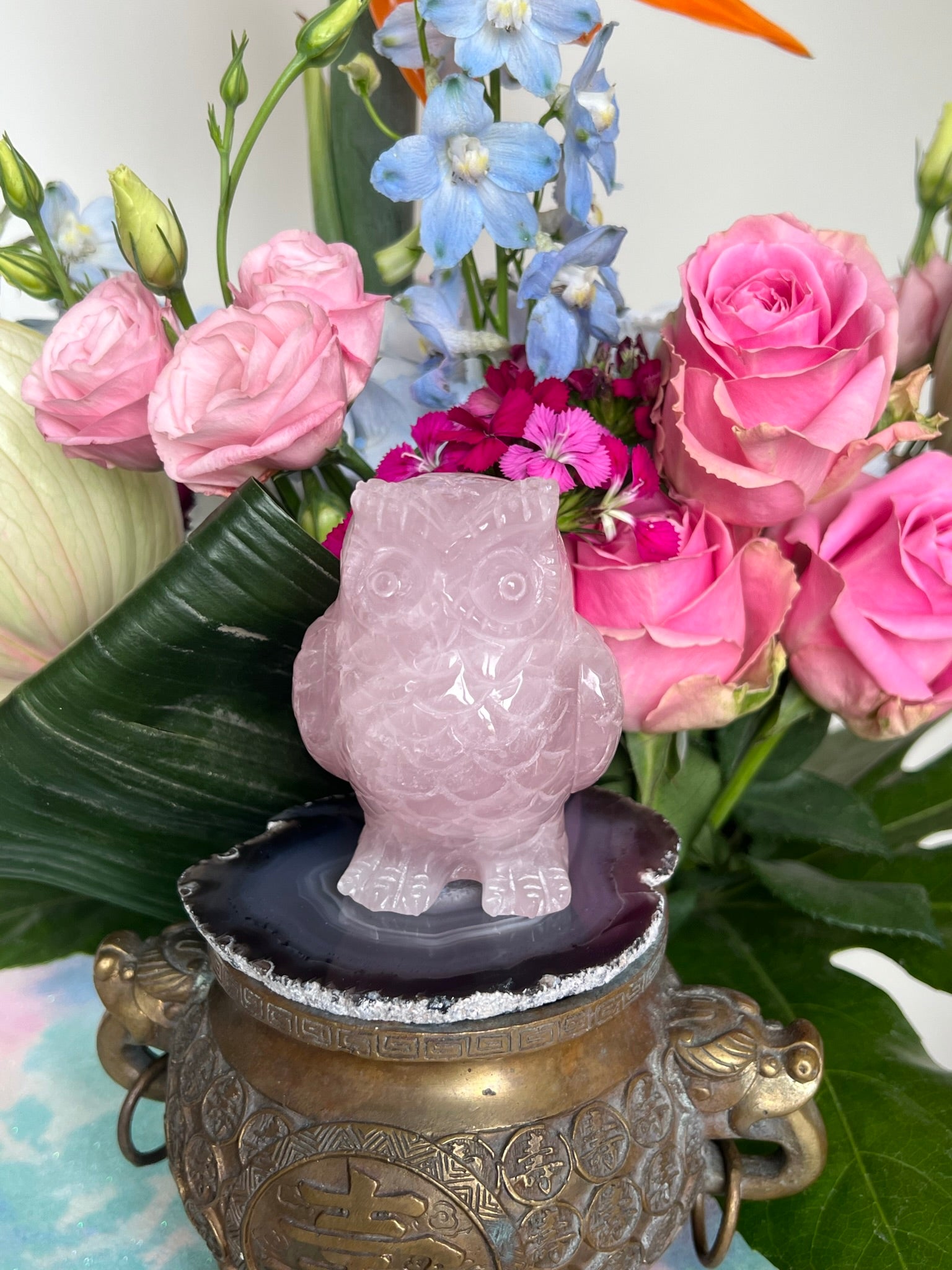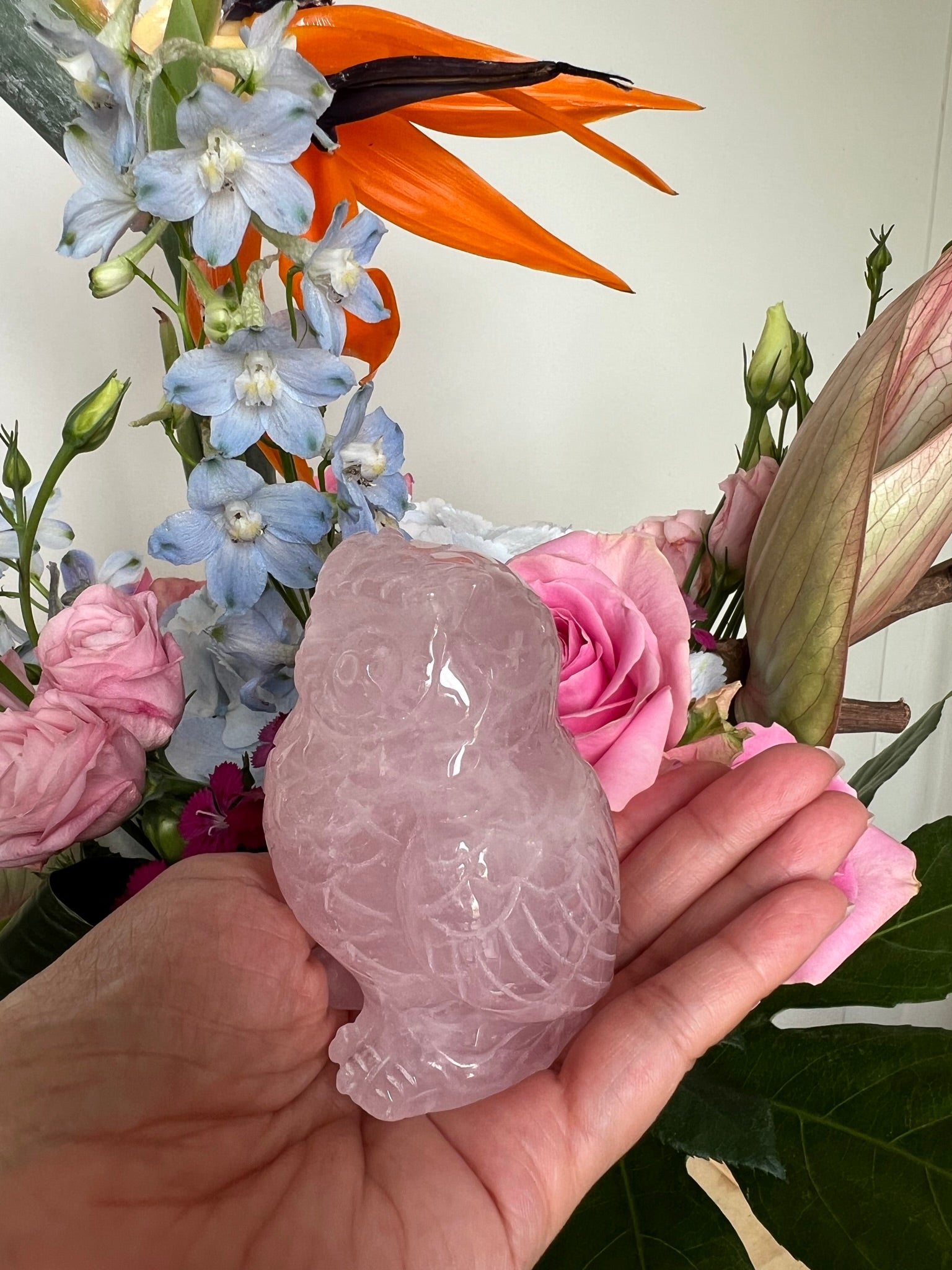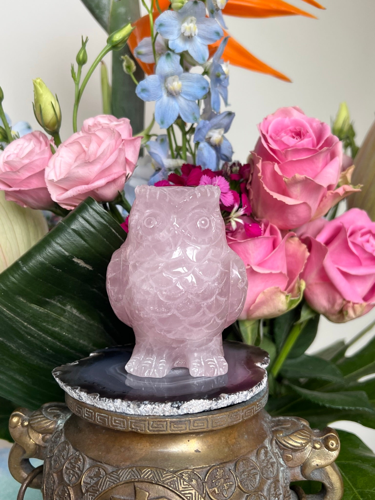 * Chakra: Deze Rozenkwarts Uil werkt voornamelijk op het hartchakra, dat verbonden is met liefde en emotionele balans.